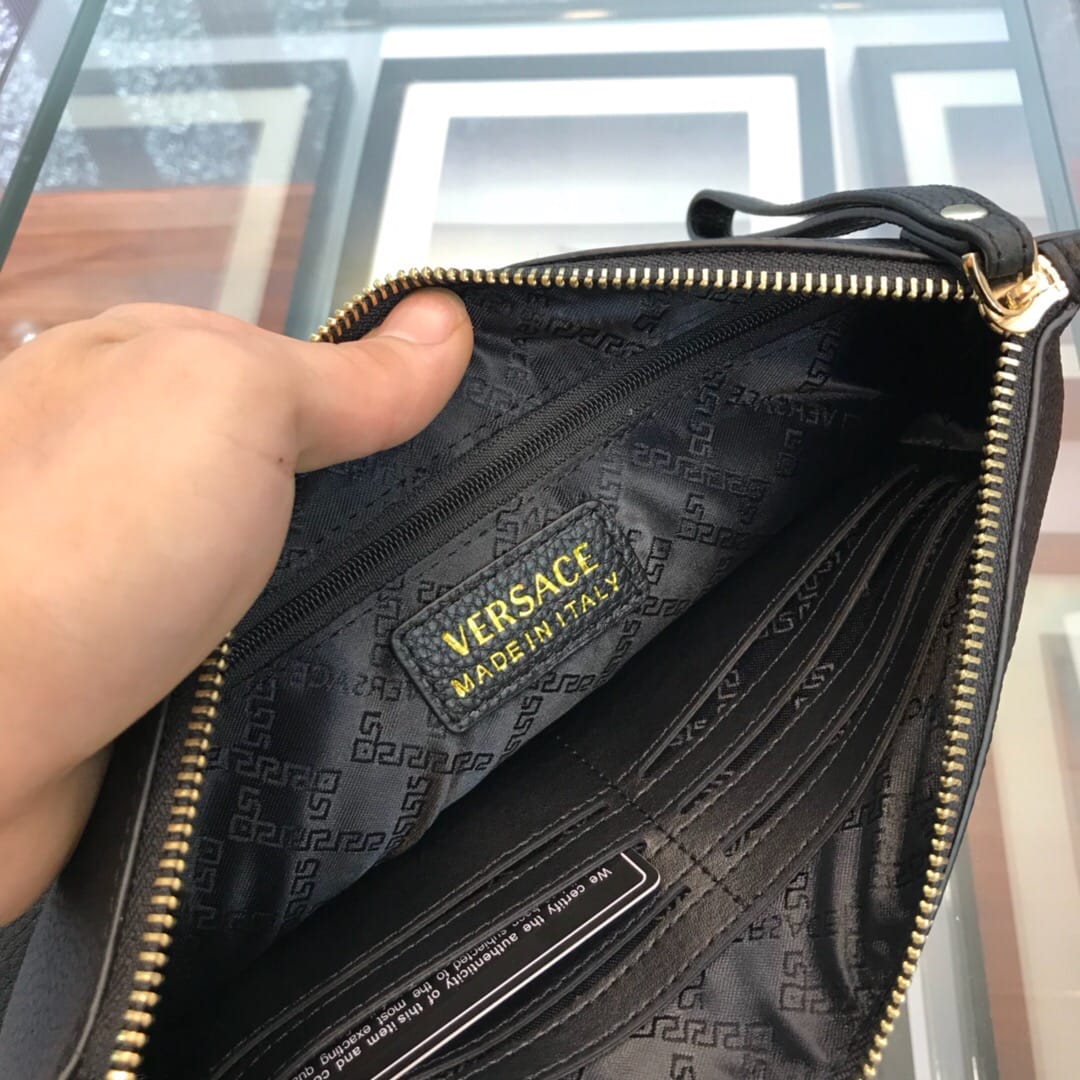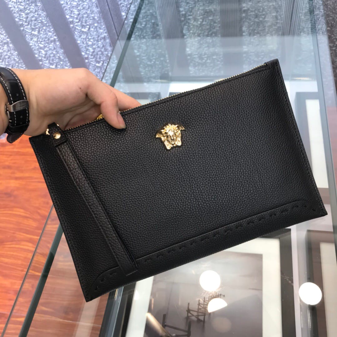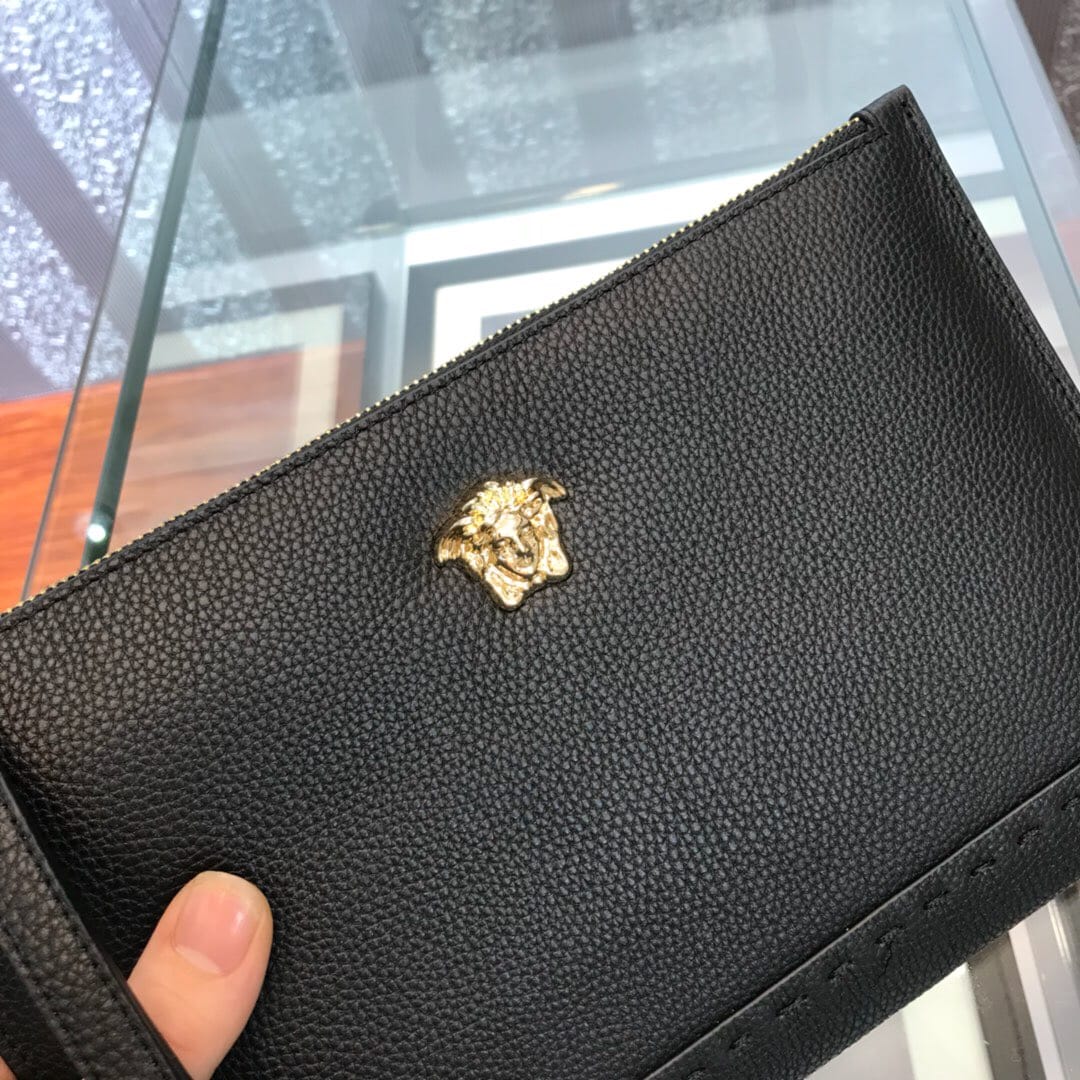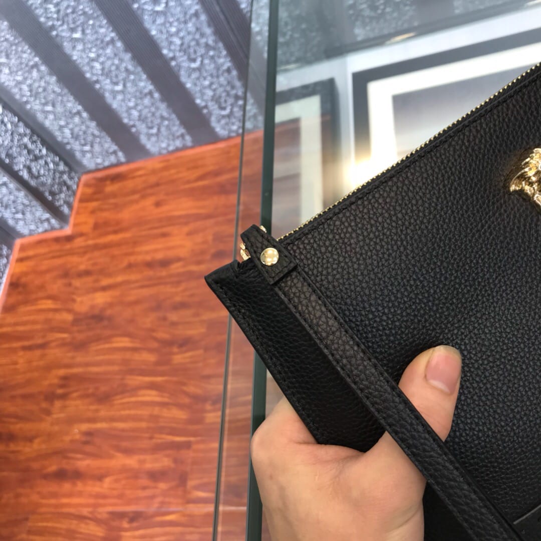 。 独家实拍?Versace 范思哲 专柜爆款2019春夏专柜必备手拿包。进口头层牛皮、搭配ykk拉链+顶级ip电度 百分百专柜款五金 不褪色 简单休闲 喜欢的朋友别犹豫 ?29-20-1 型号6187 克金