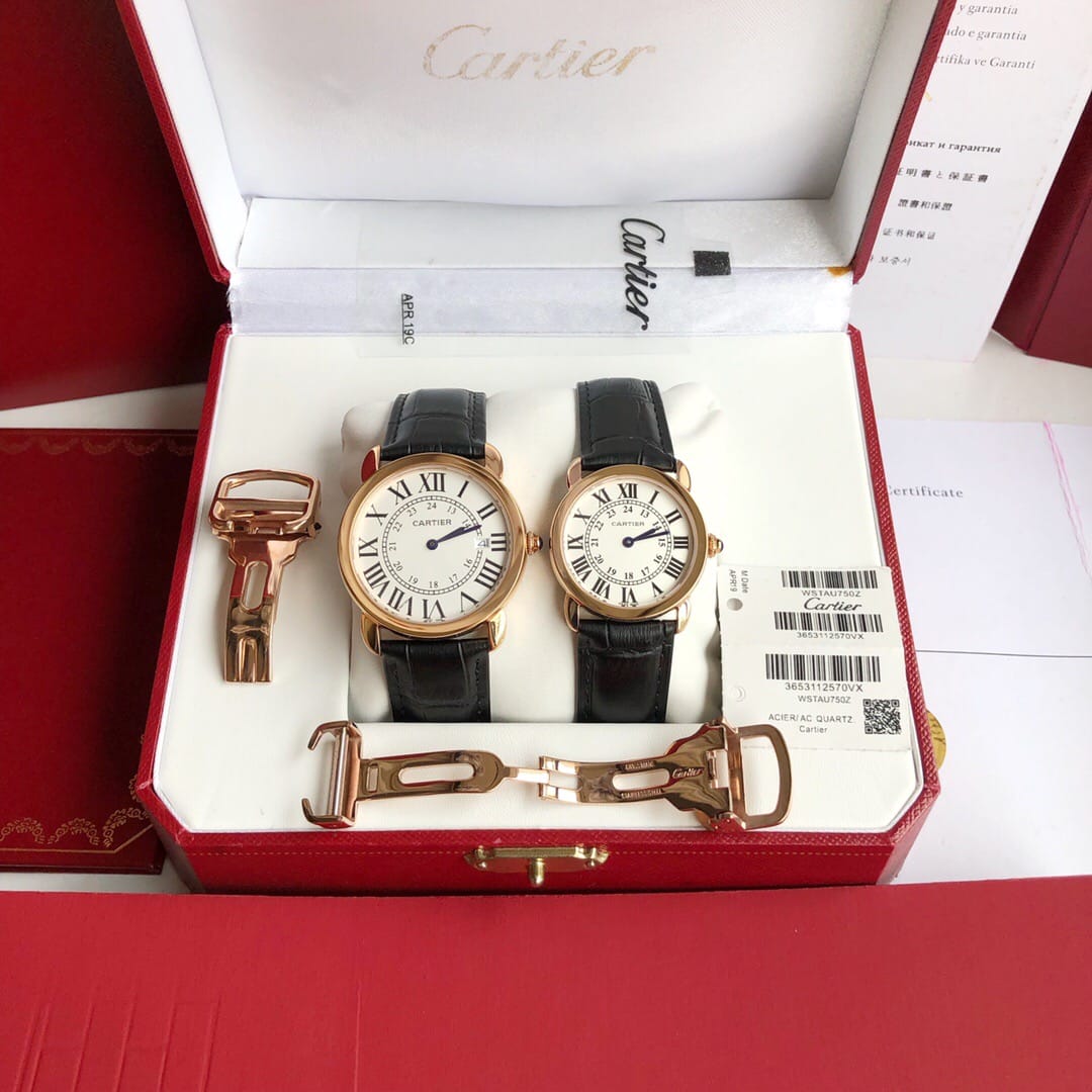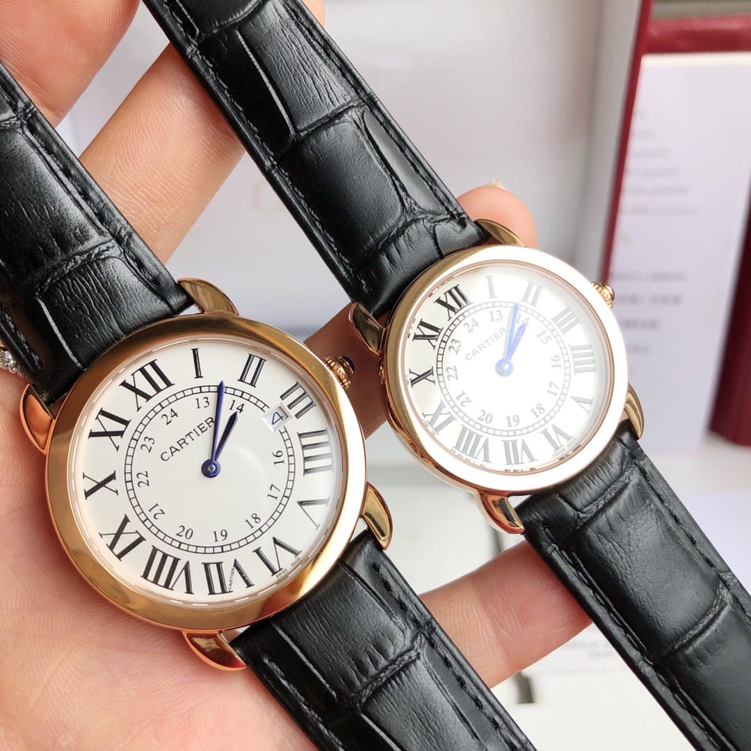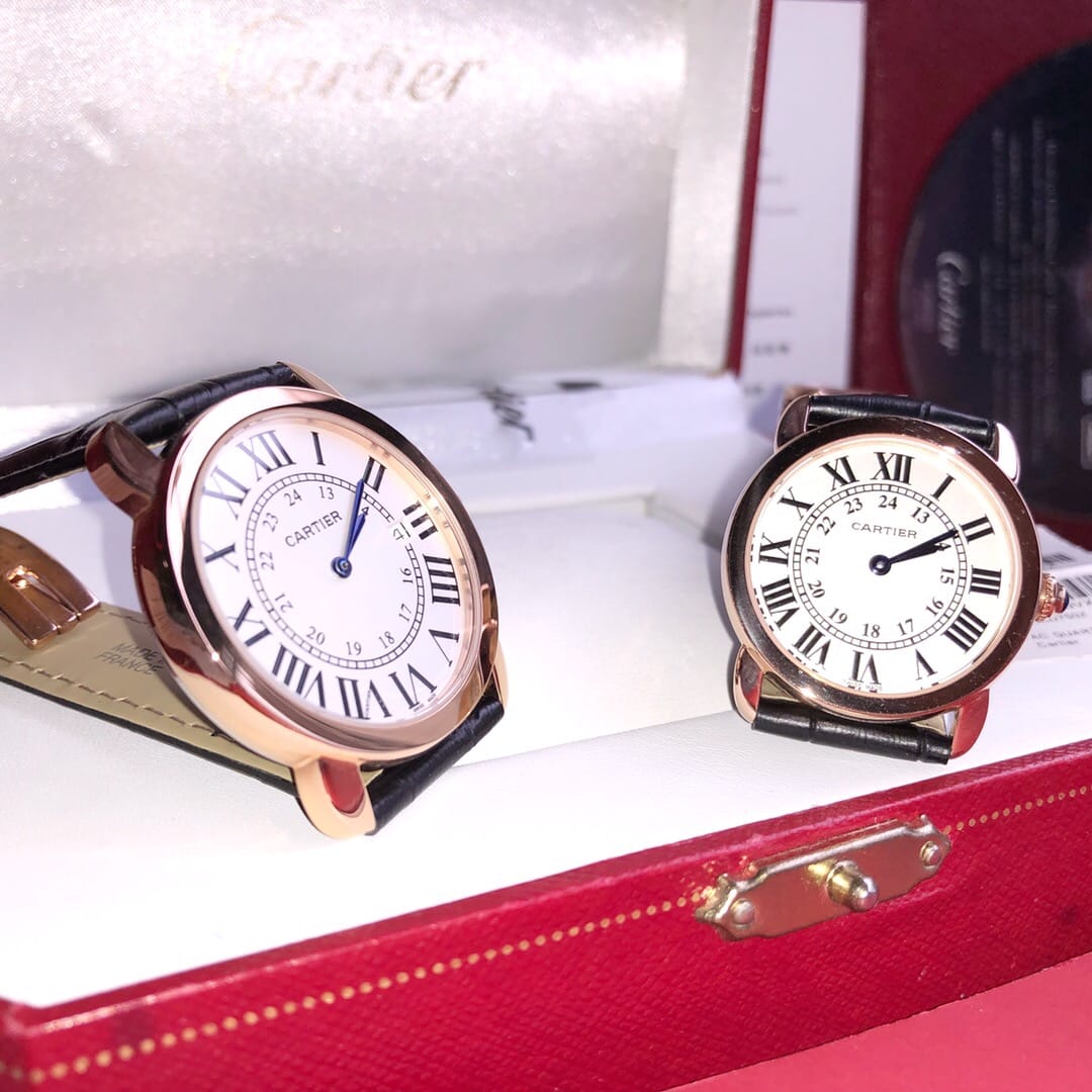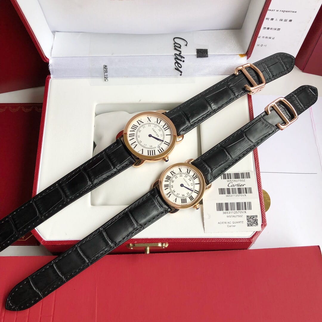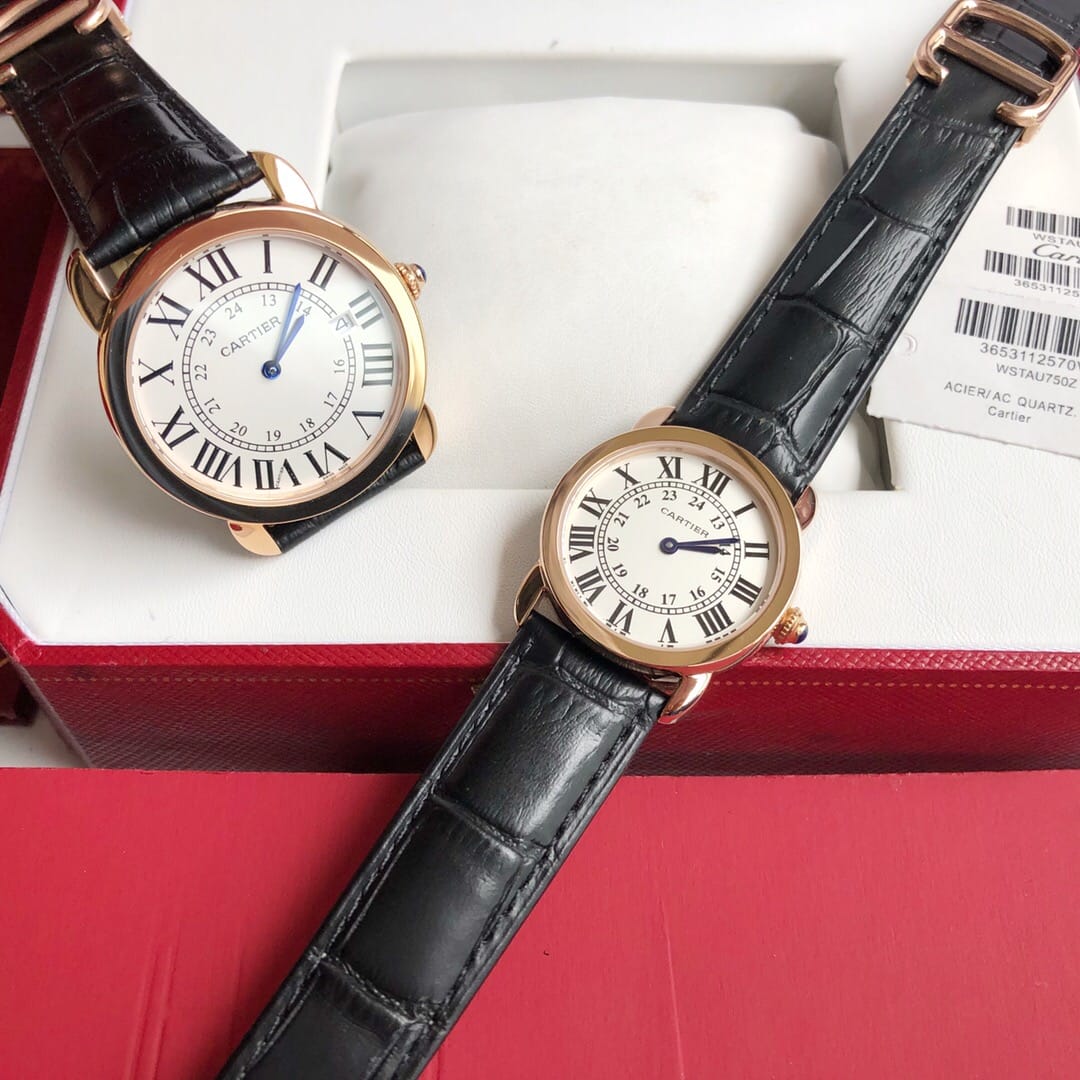 原版一比一复刻?? Ronde solo de Cartier ?? 卡地亚伦敦系列对表。官方型号:W6700155 。女款表径:29.5mm 中款表径:36mm 。进口瑞士石英机芯 ,走时精准。316L精钢表壳,蓝宝石玻璃镜面,进口小牛皮表带
