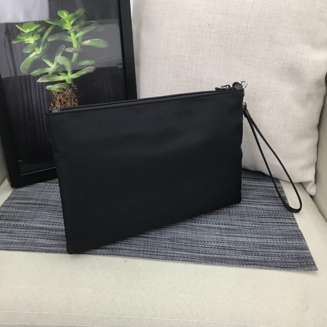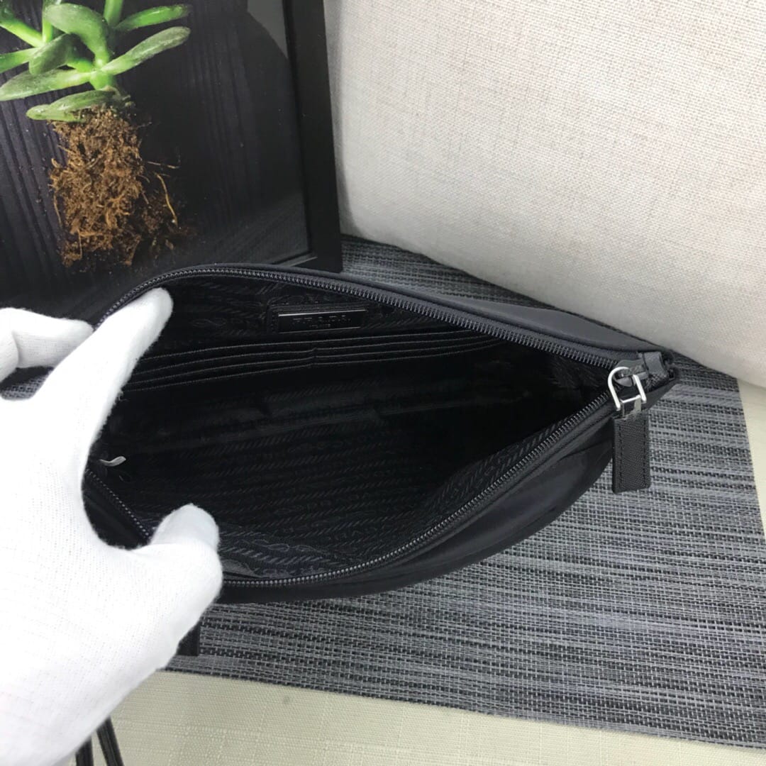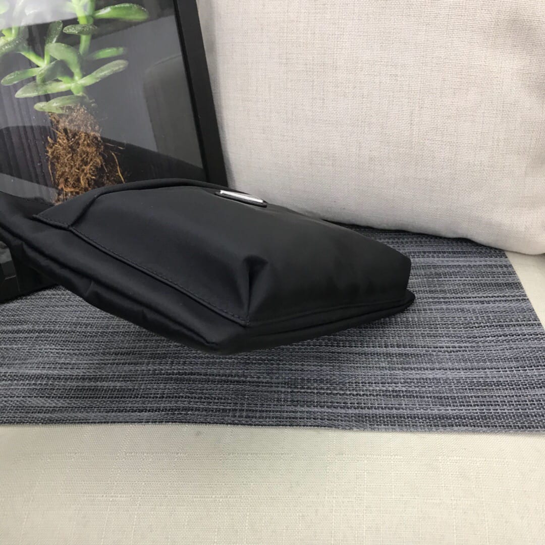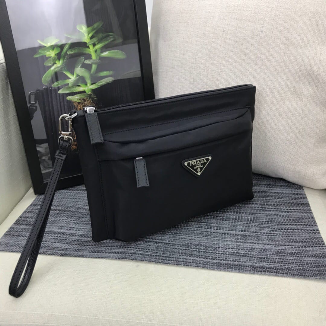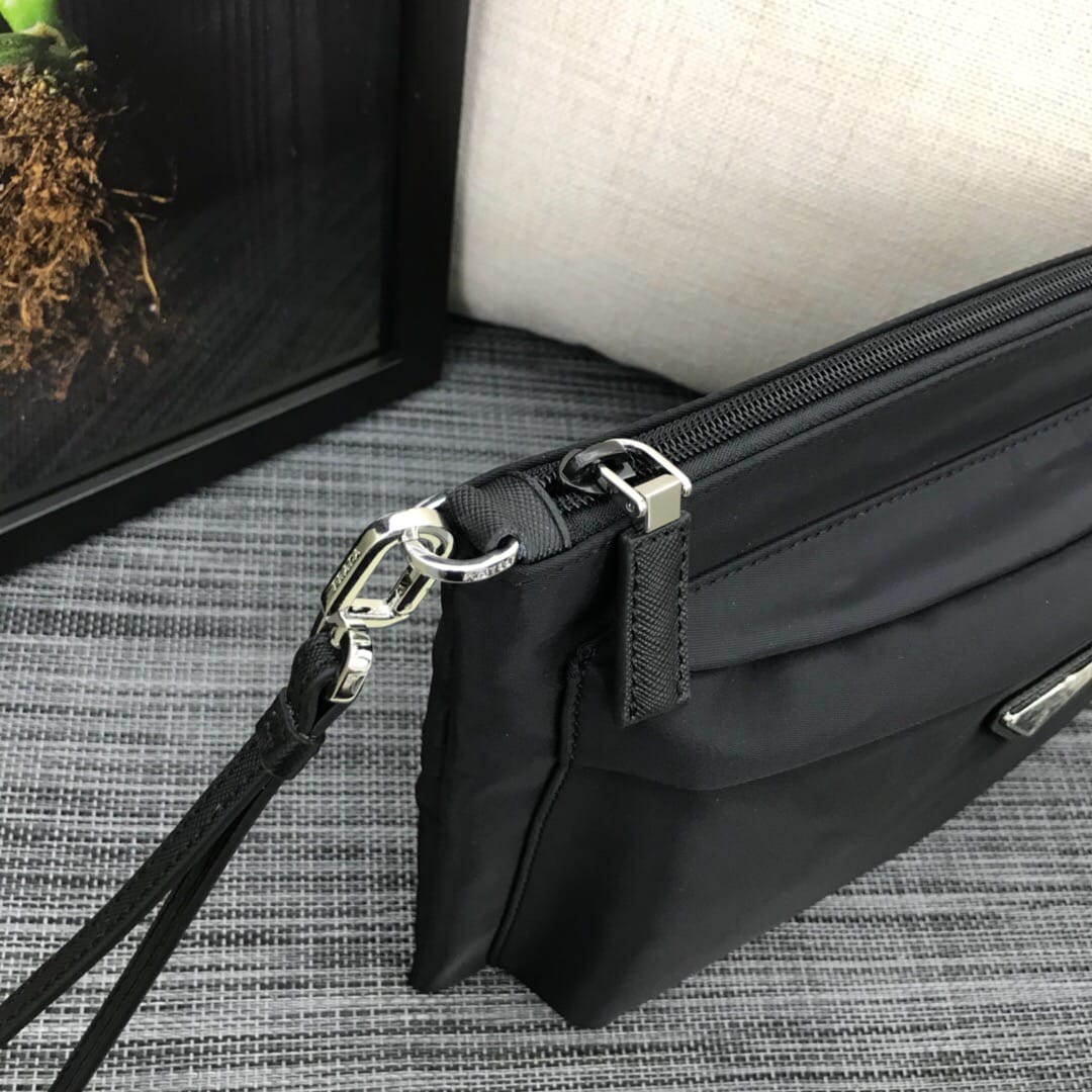 新款???2NH007、三角唛标.采用进口尼龙材质/牛皮,内口袋有六个卡位,尼龙衬里,可拆卸皮革手腕带,抛光钢质金属配件???175代工码,轻便又时尚???,长28x高18cm