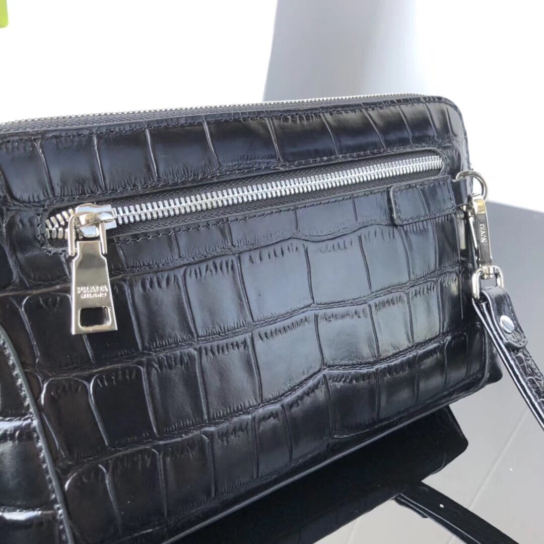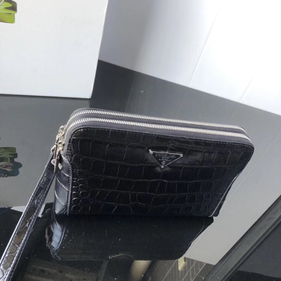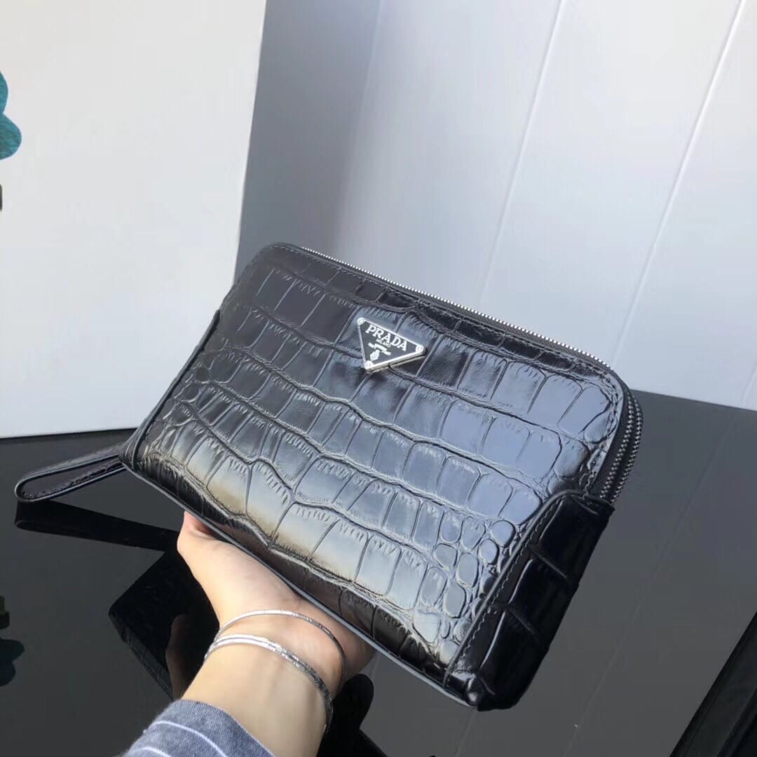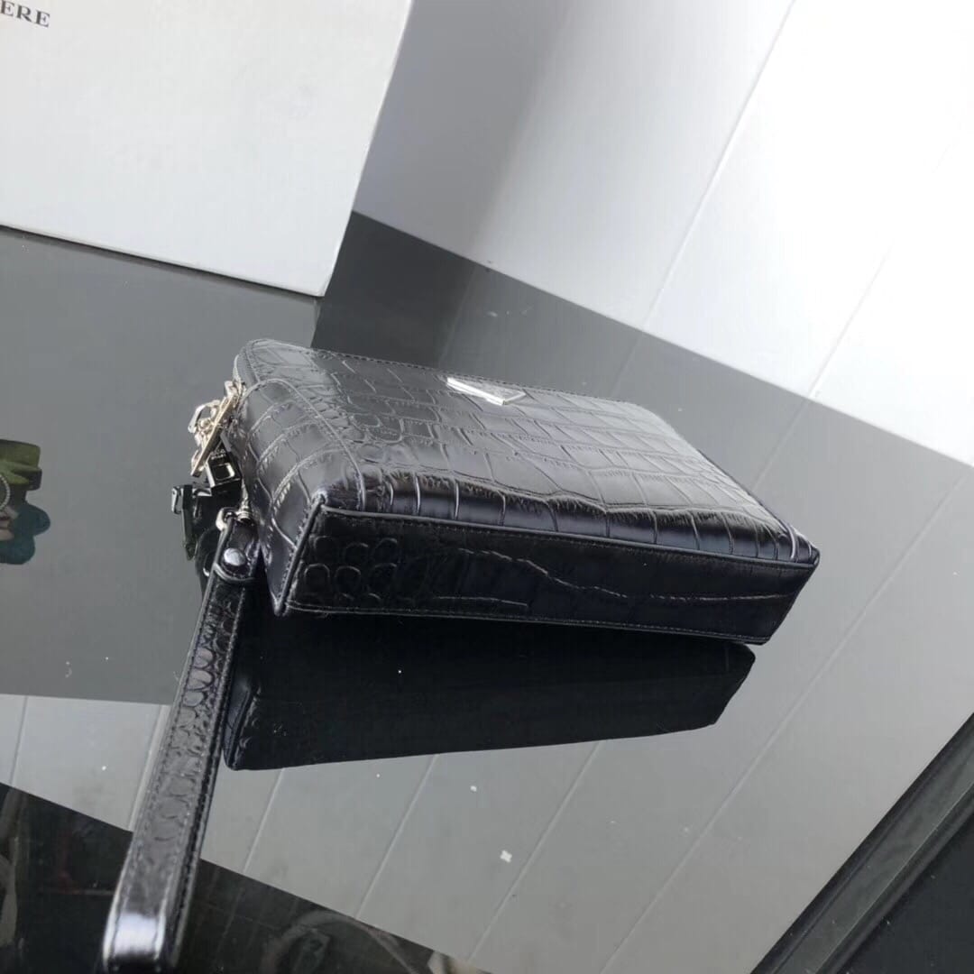 {普拉达}独家新款?原单品质型号:81189-5 最新款男士手包,采用意大利进口牛皮鳄鱼纹[闪电]原版钢制五金,克色双拉,背面拉链口袋加可拆卸鳄鱼皮手腕带[调皮]实物实拍、原版五金、顶级手工/PRADA/W23.5/H14.5/D4.5cm意大利产地标+175代码[爱心]高端大气上档次,实物更赞哦???[炸弹][炸弹][炸弹]