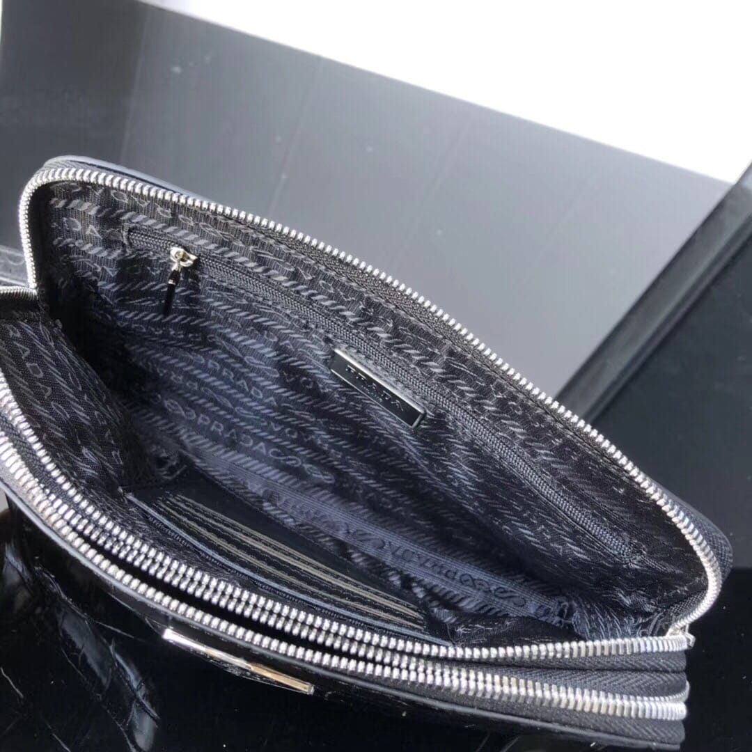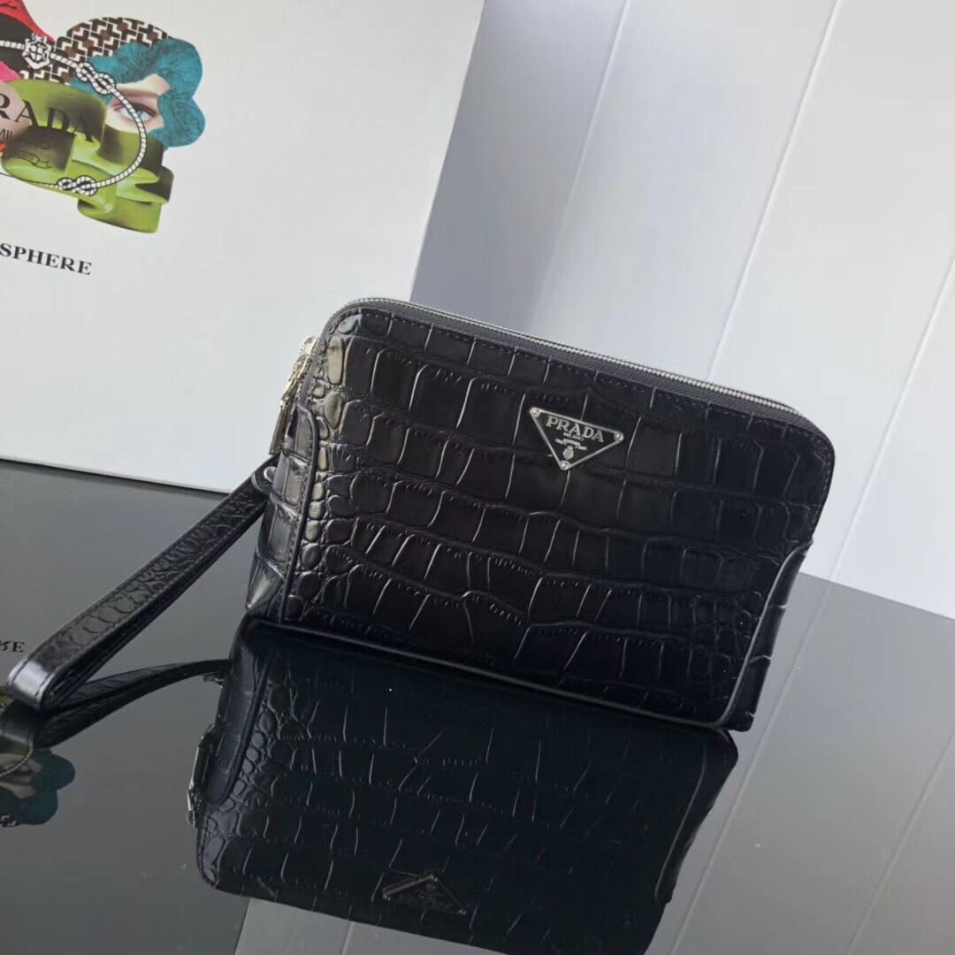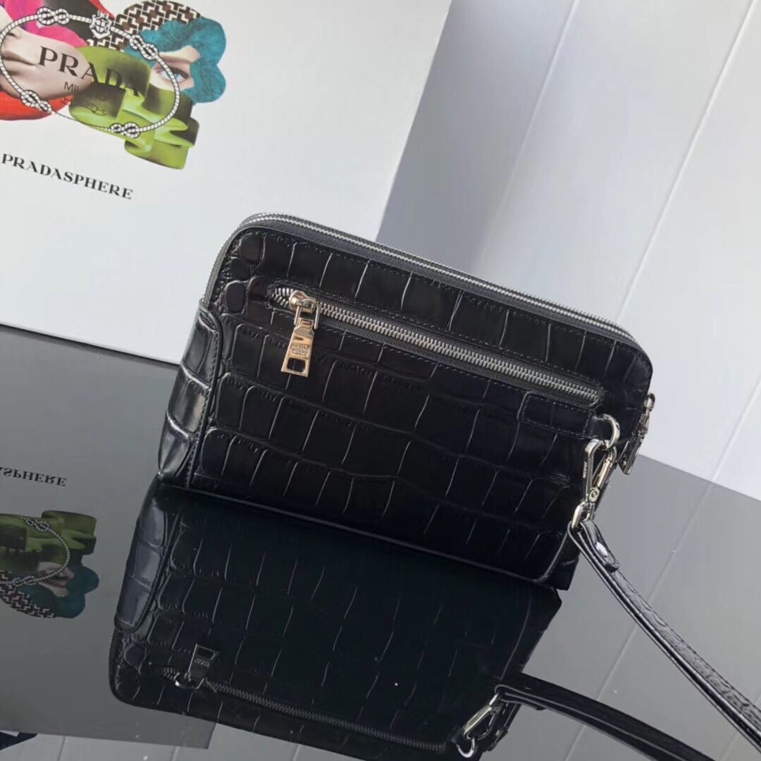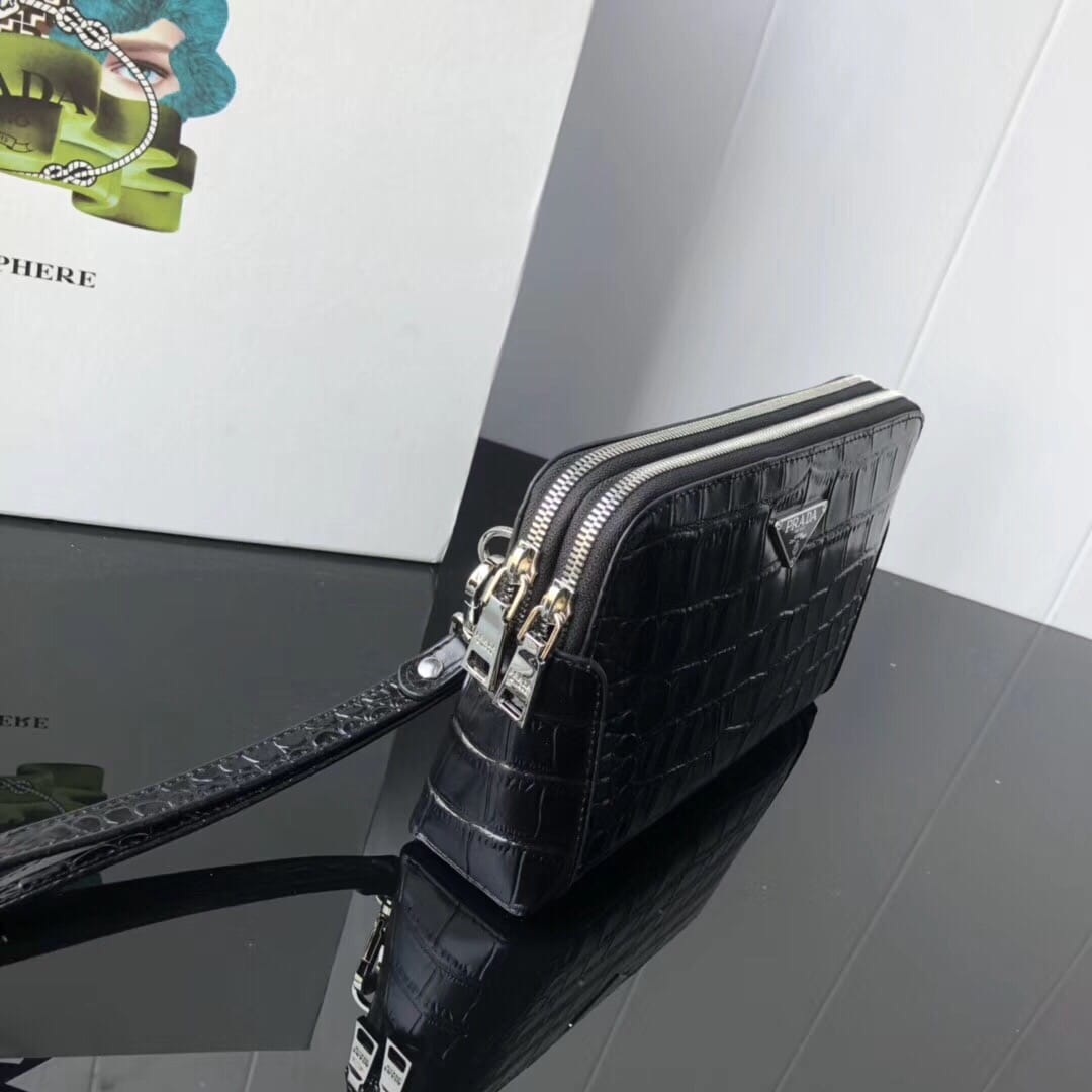 {普拉达}独家新款?原单品质型号:81189-5 最新款男士手包,采用意大利进口牛皮鳄鱼纹[闪电]原版钢制五金,克色双拉,背面拉链口袋加可拆卸鳄鱼皮手腕带[调皮]实物实拍、原版五金、顶级手工/PRADA/W23.5/H14.5/D4.5cm意大利产地标+175代码[爱心]高端大气上档次,实物更赞哦???[炸弹][炸弹][炸弹]