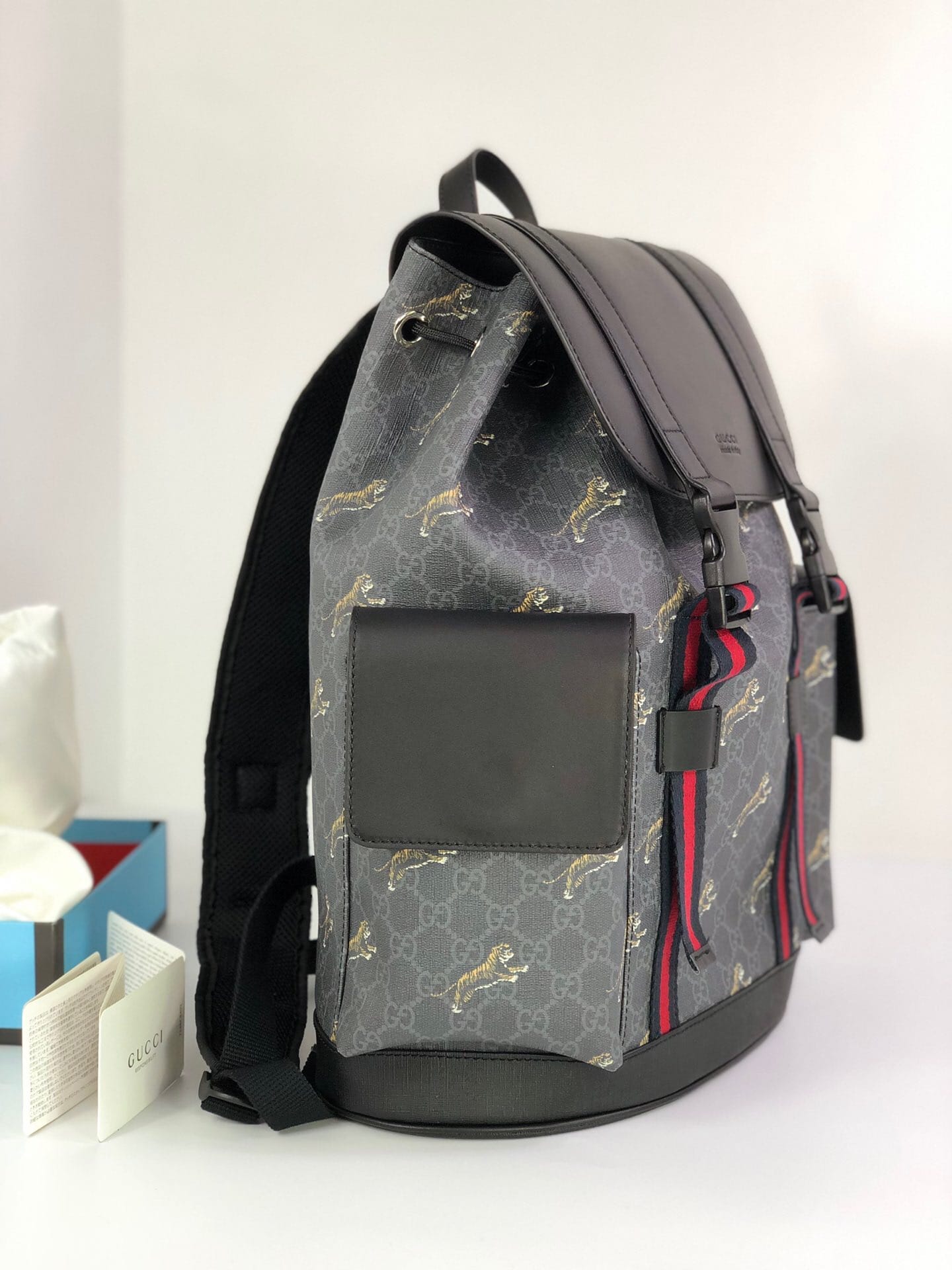 最新款背包,正品开模 GG图案采用醒目的黑/灰色组合印花老虎