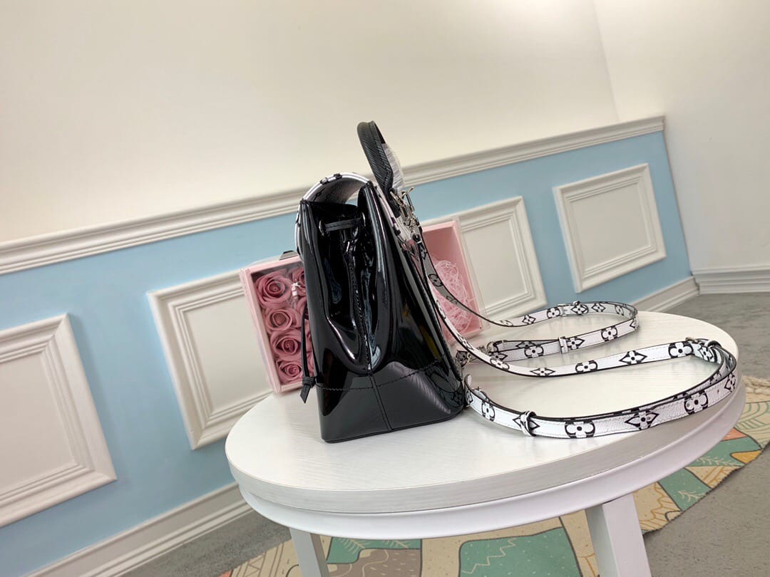 M53637黑色,由漆光皮革与Monogram帆布裁制而成,
