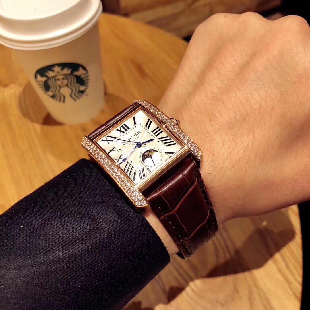2019新款!卡地亚坦克升级版火爆上市,影帝刘德华代言!搭配原装瑞机2824-5自动机械机芯,在原有基础增加24时,真日月功能,高品质,高性能,零返修,买得开心,用得放心,。尺寸,43/34,真情回馈,亲民价,感谢转图,欢迎下单[月亮][太阳]