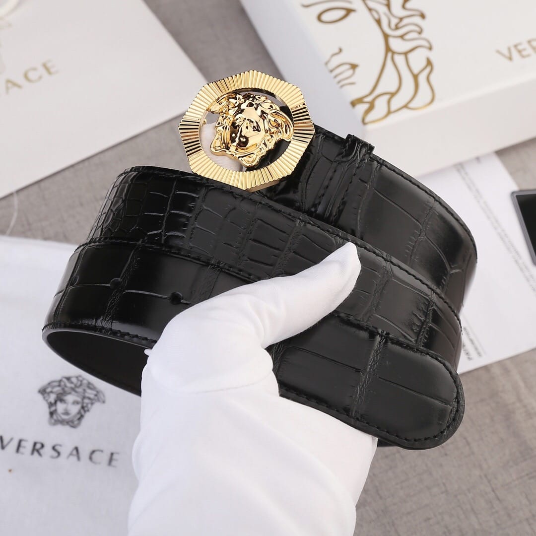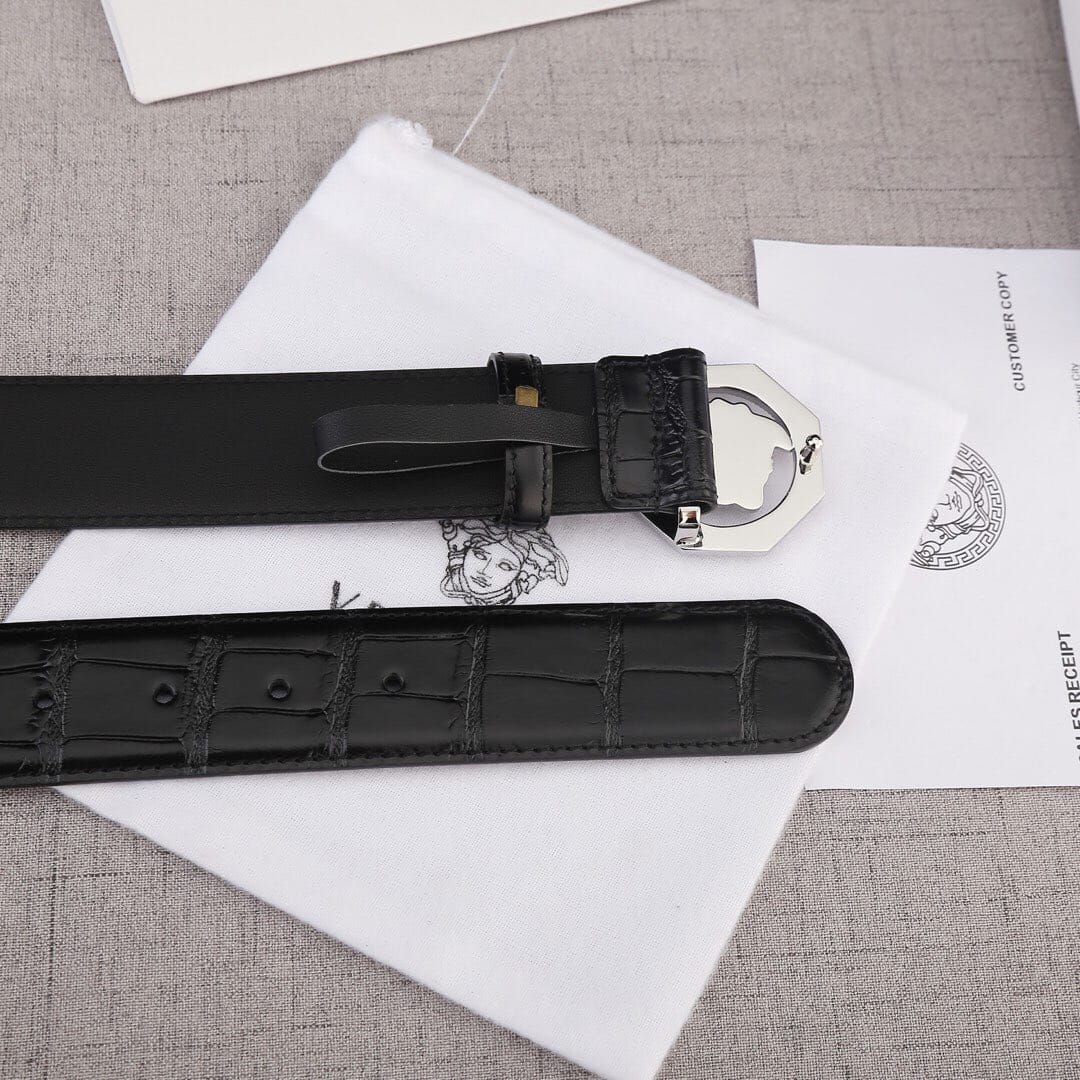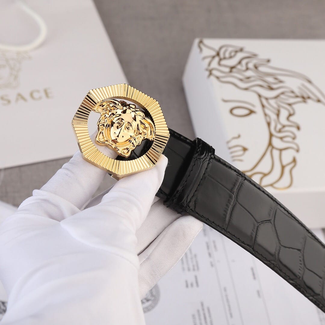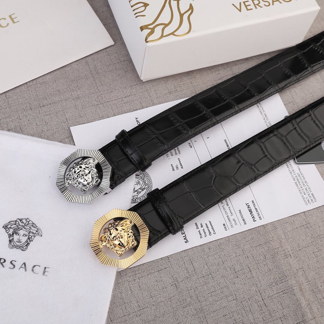 VERSACE(范思哲)新款八边菱形扣与石头纹砂底/双面头层