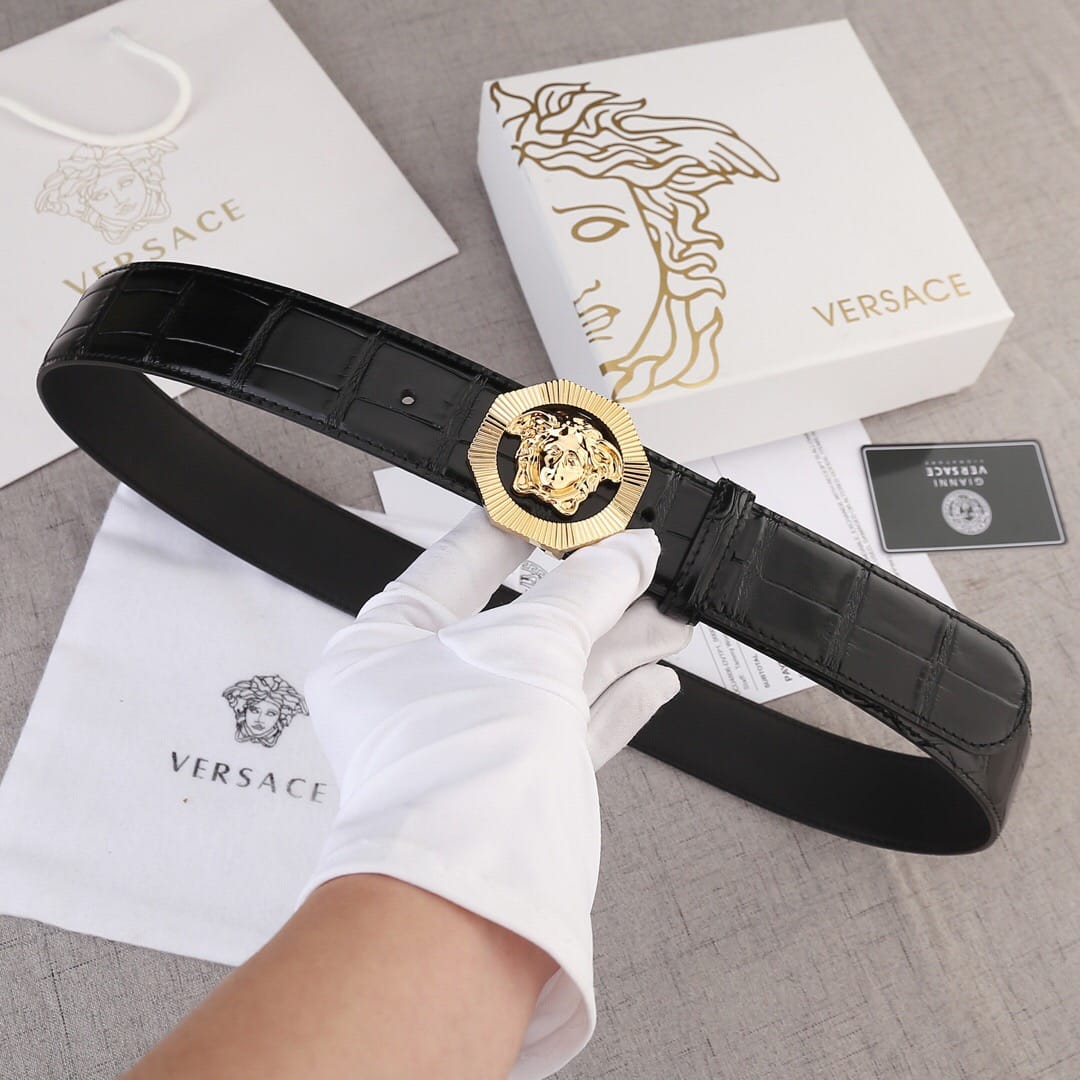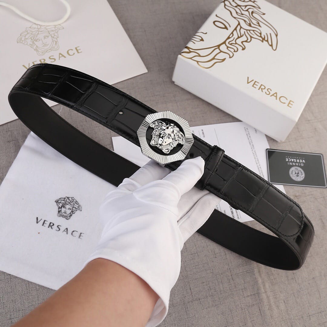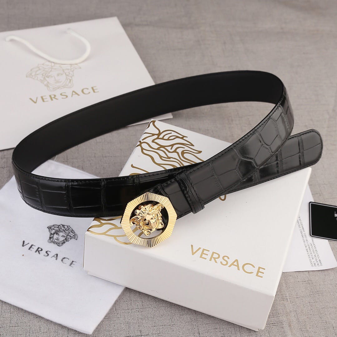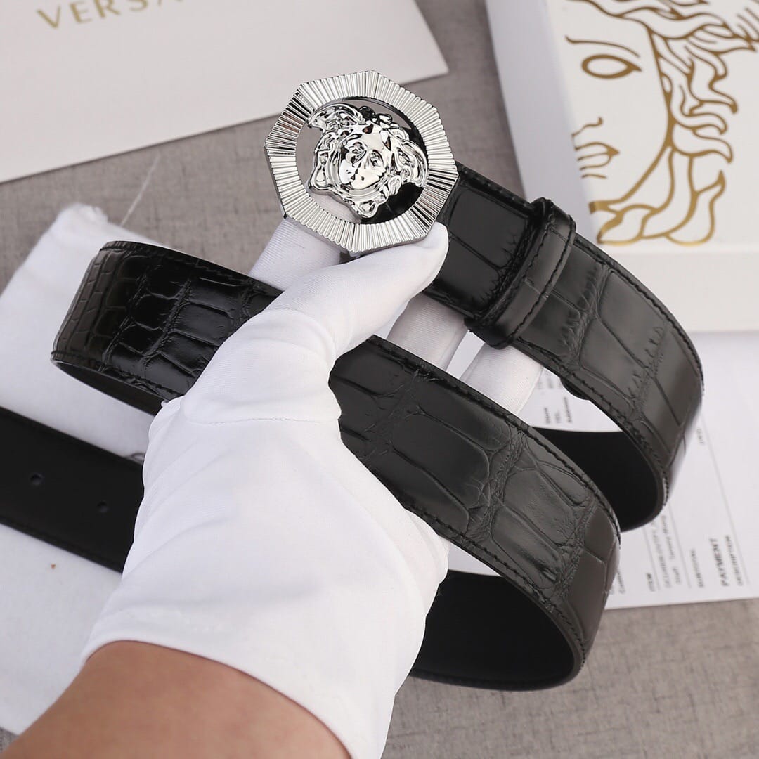 VERSACE(范思哲)新款八边菱形扣与石头纹砂底/双面头层