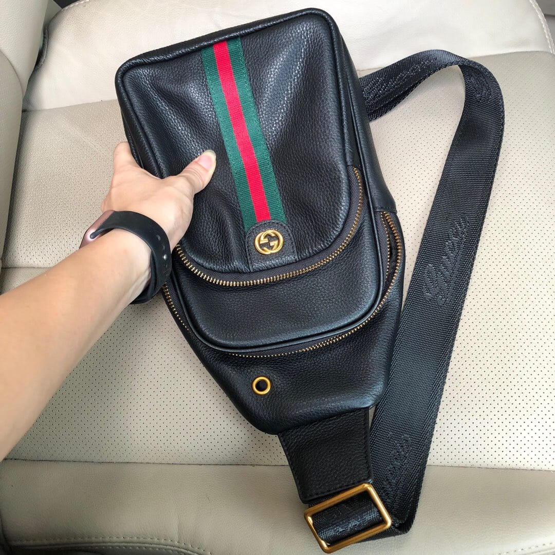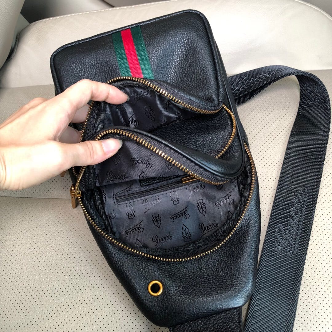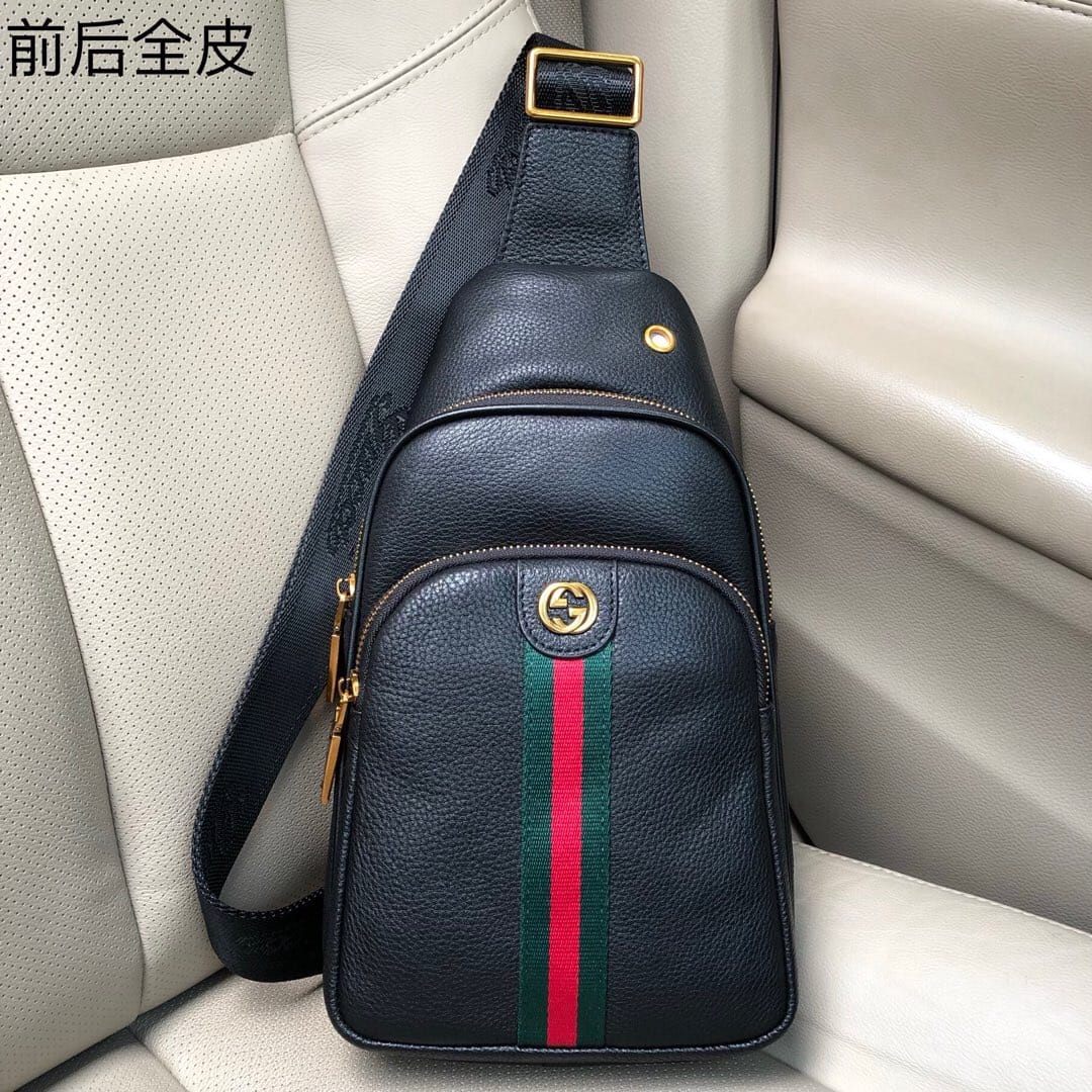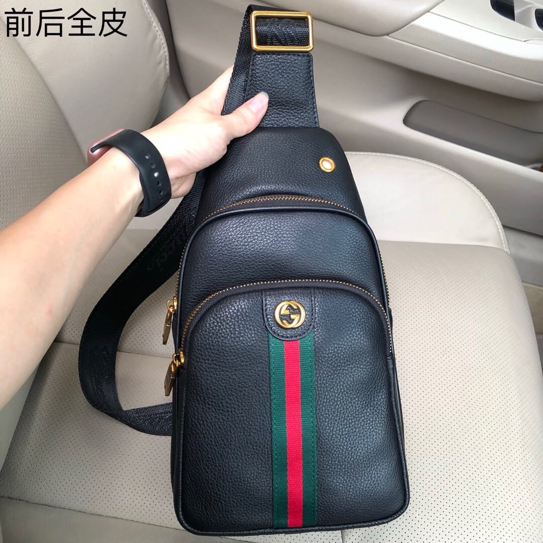 {古驰}..简洁大方..男士胸包上市 原单制作?头层原版牛皮