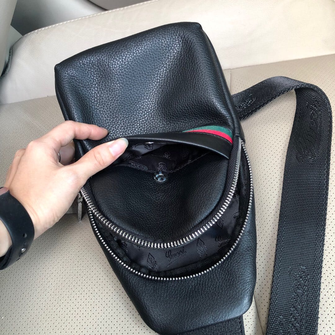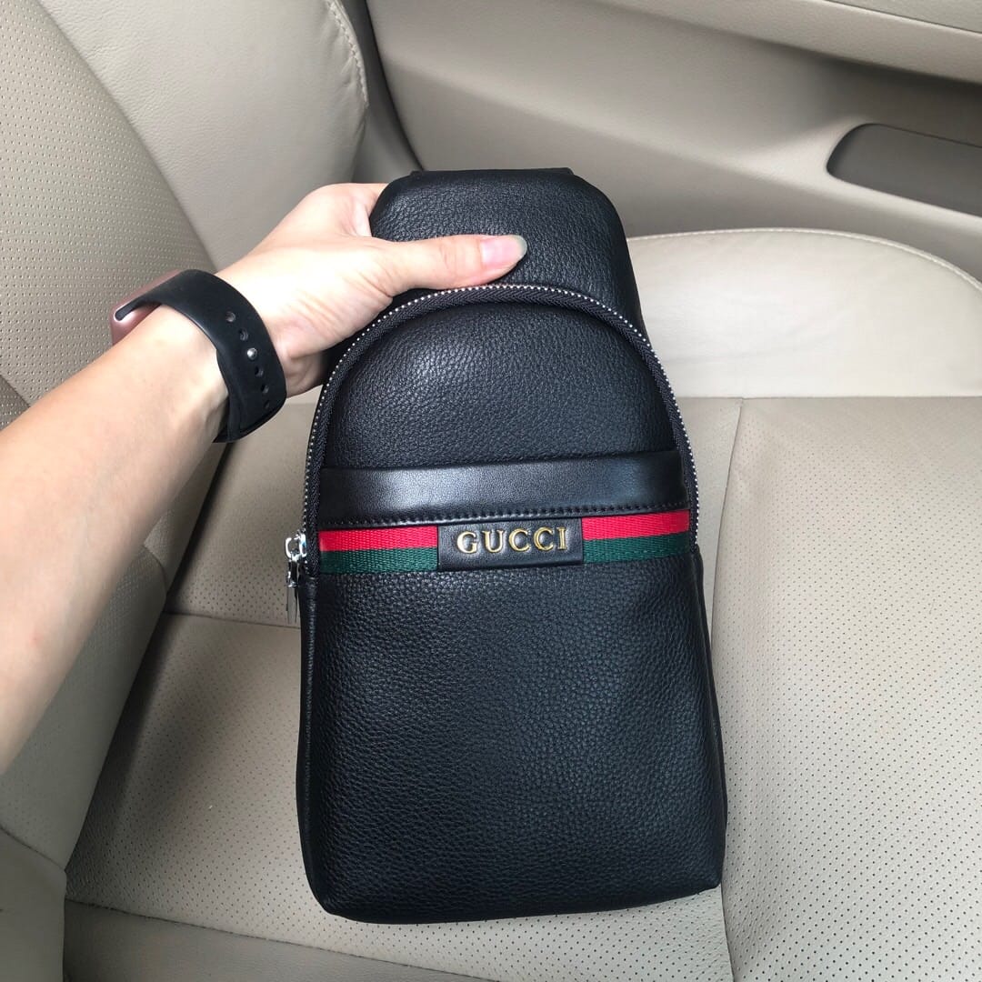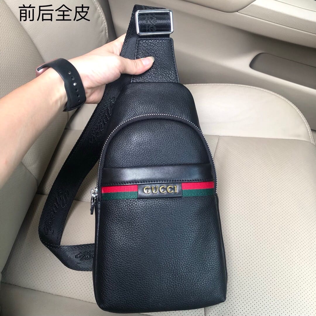 {古驰}..简洁大方..男士胸包上市 原单制作?头层原版牛皮