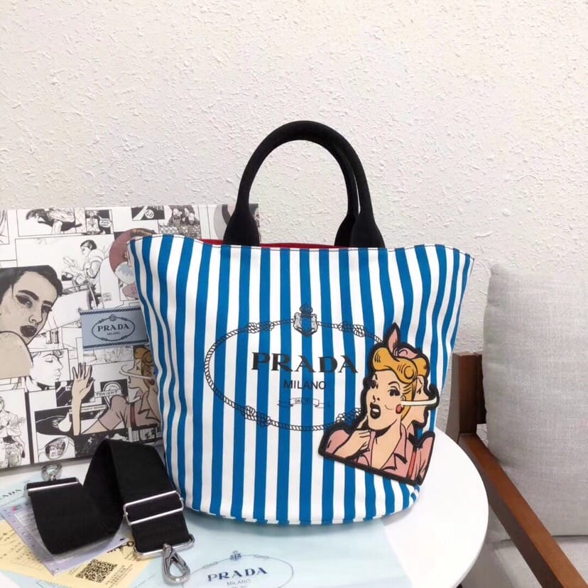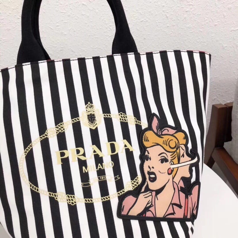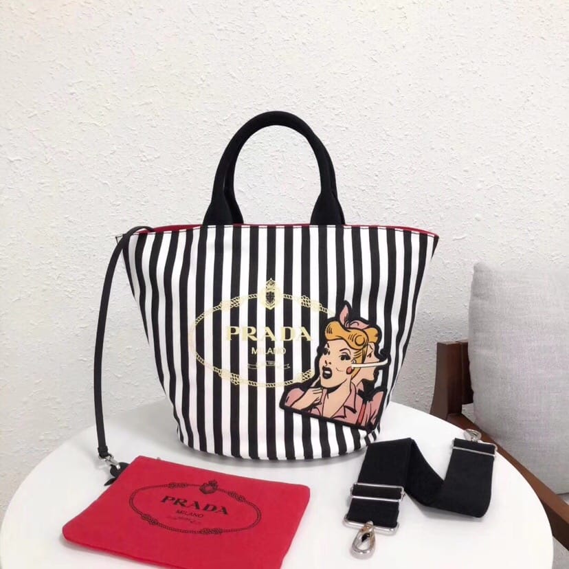 Prada帆布托特包,定制原版帆布?时尚条纹,白钢五金,款号
