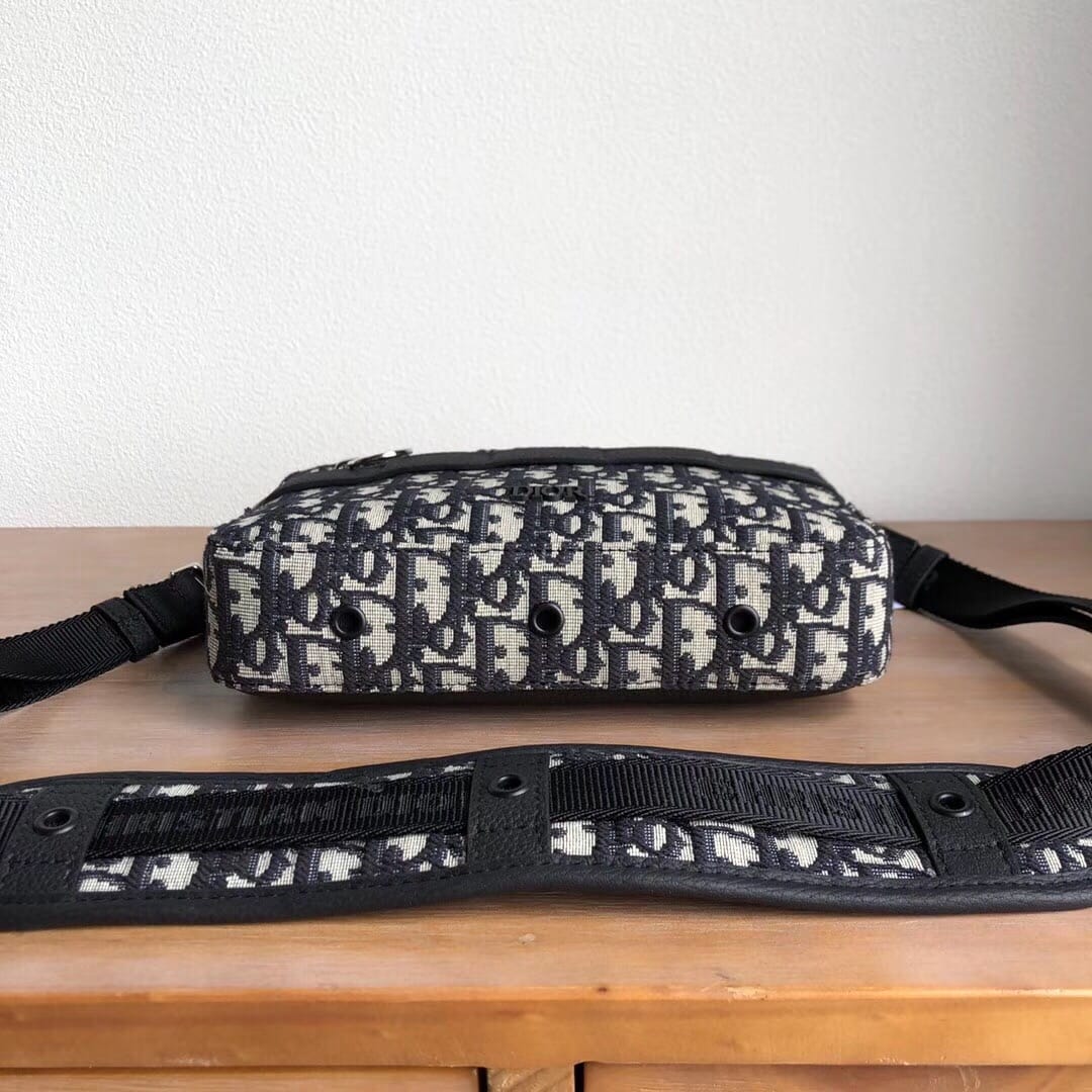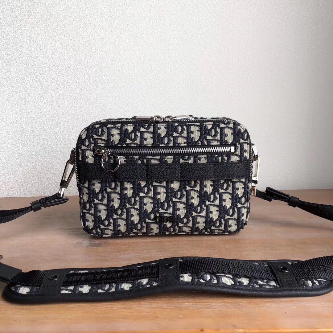 D1or Oblique提花和黑色粒面触感小牛皮斜挎包? C