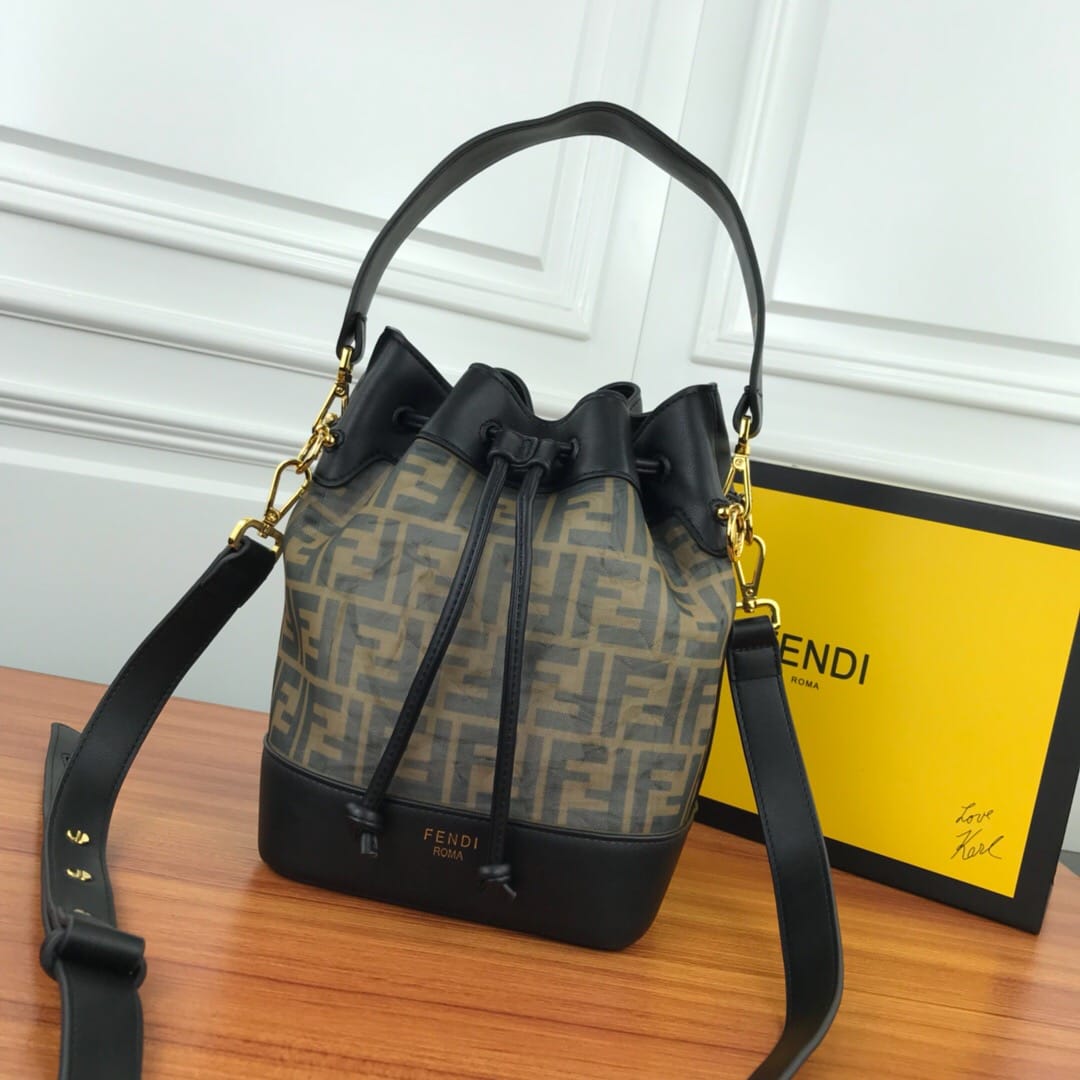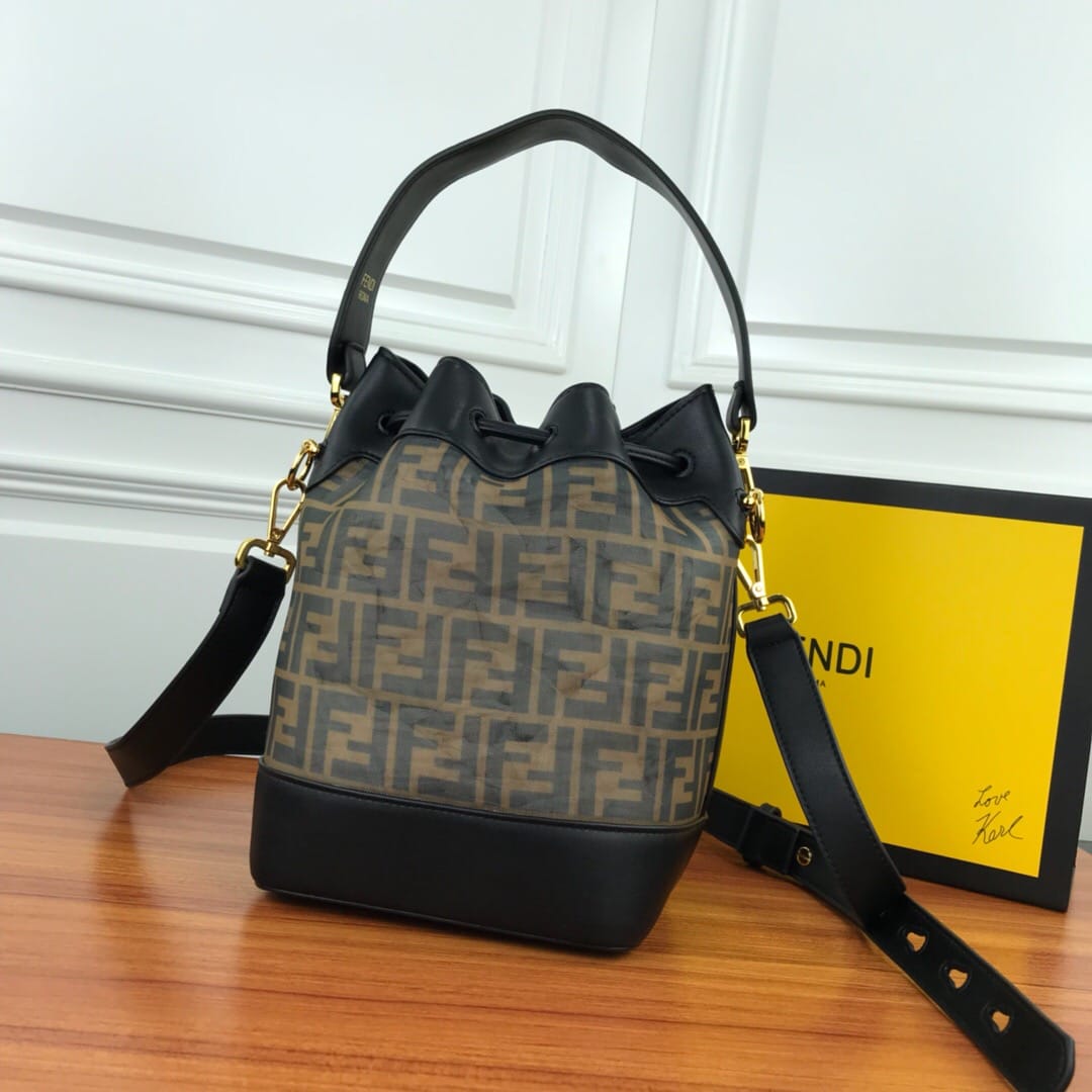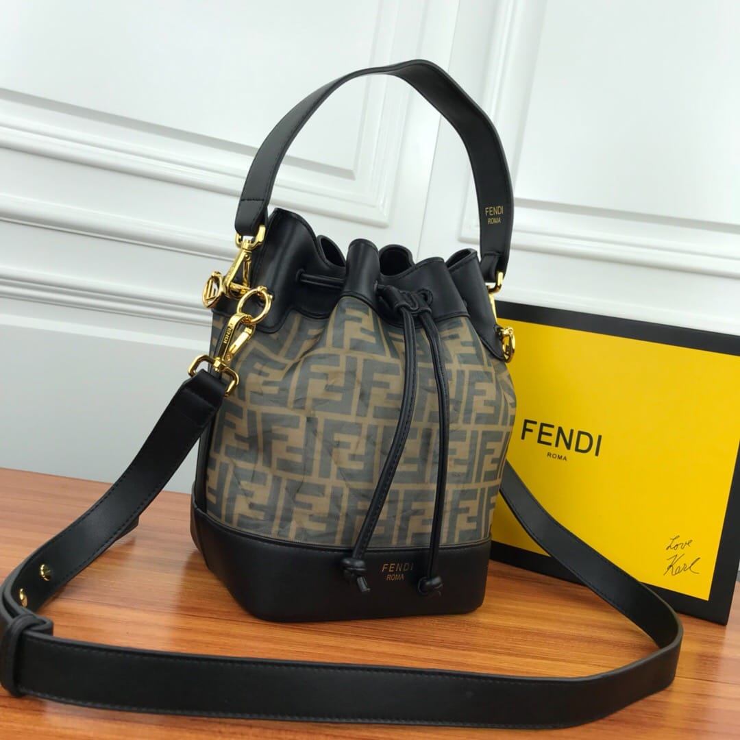 MON TR?SOR水桶包,?抽绳开合,缀以FE@DI标志造