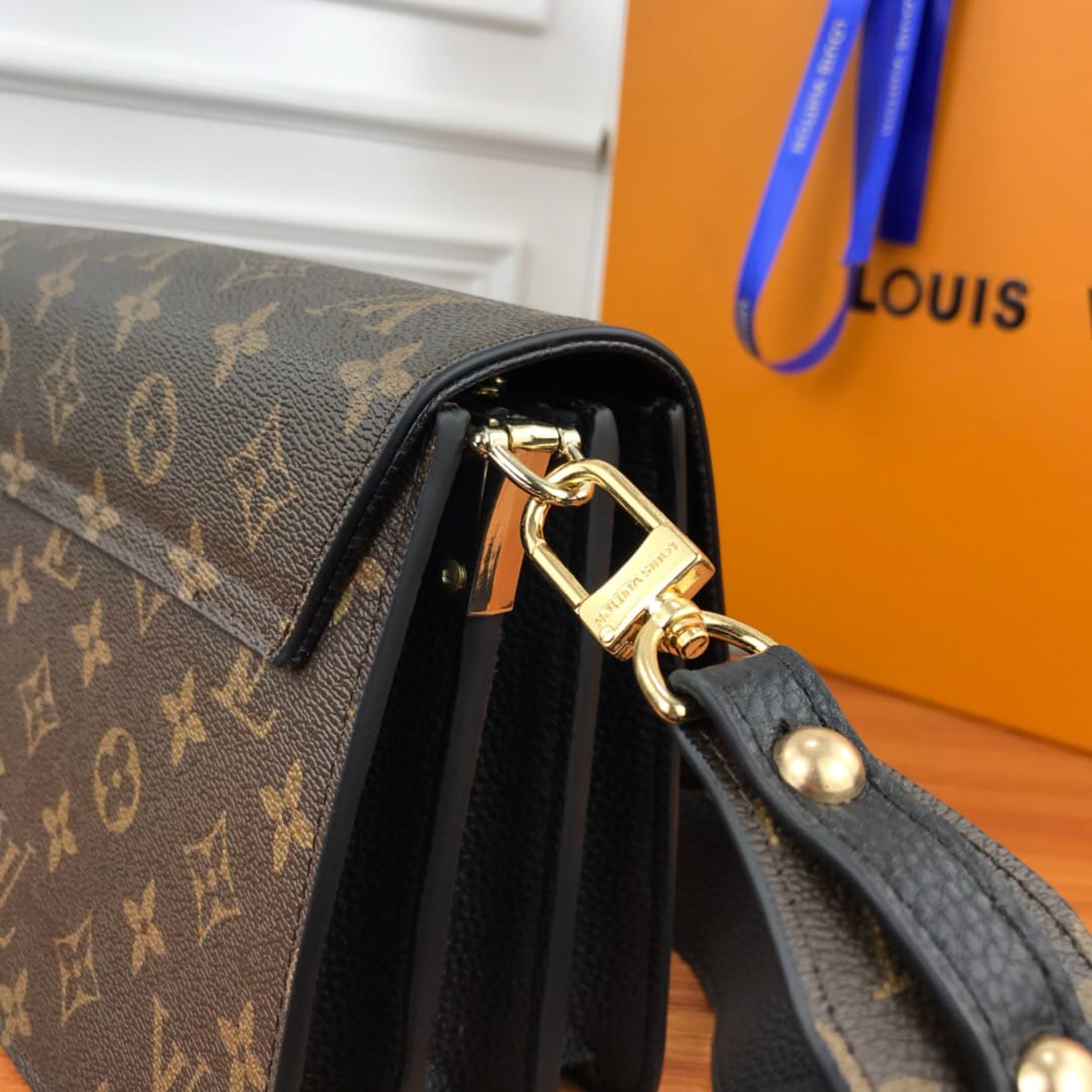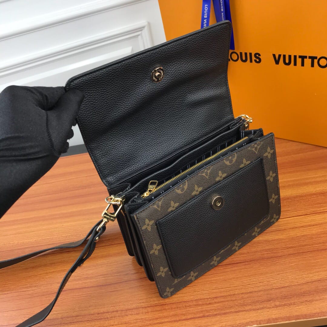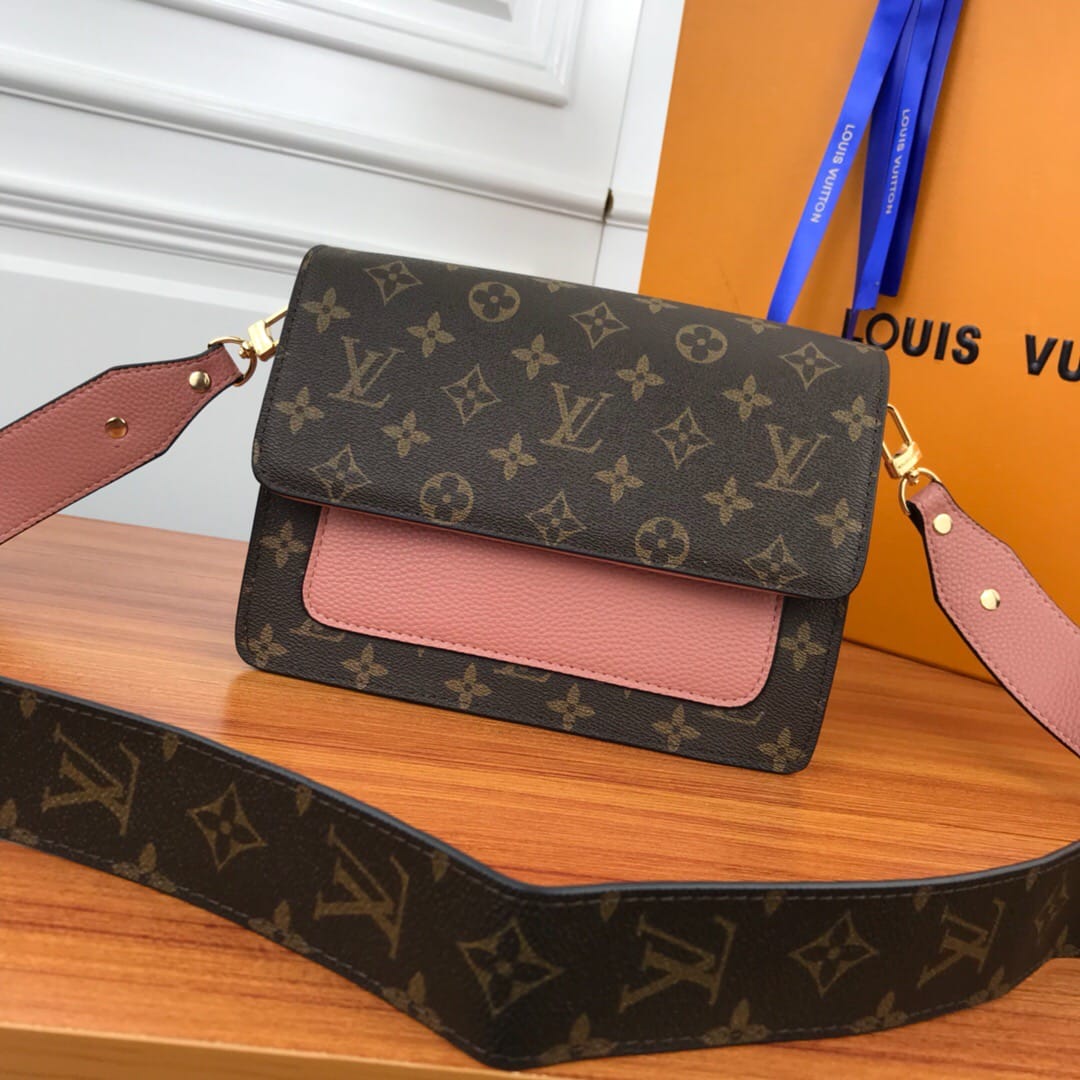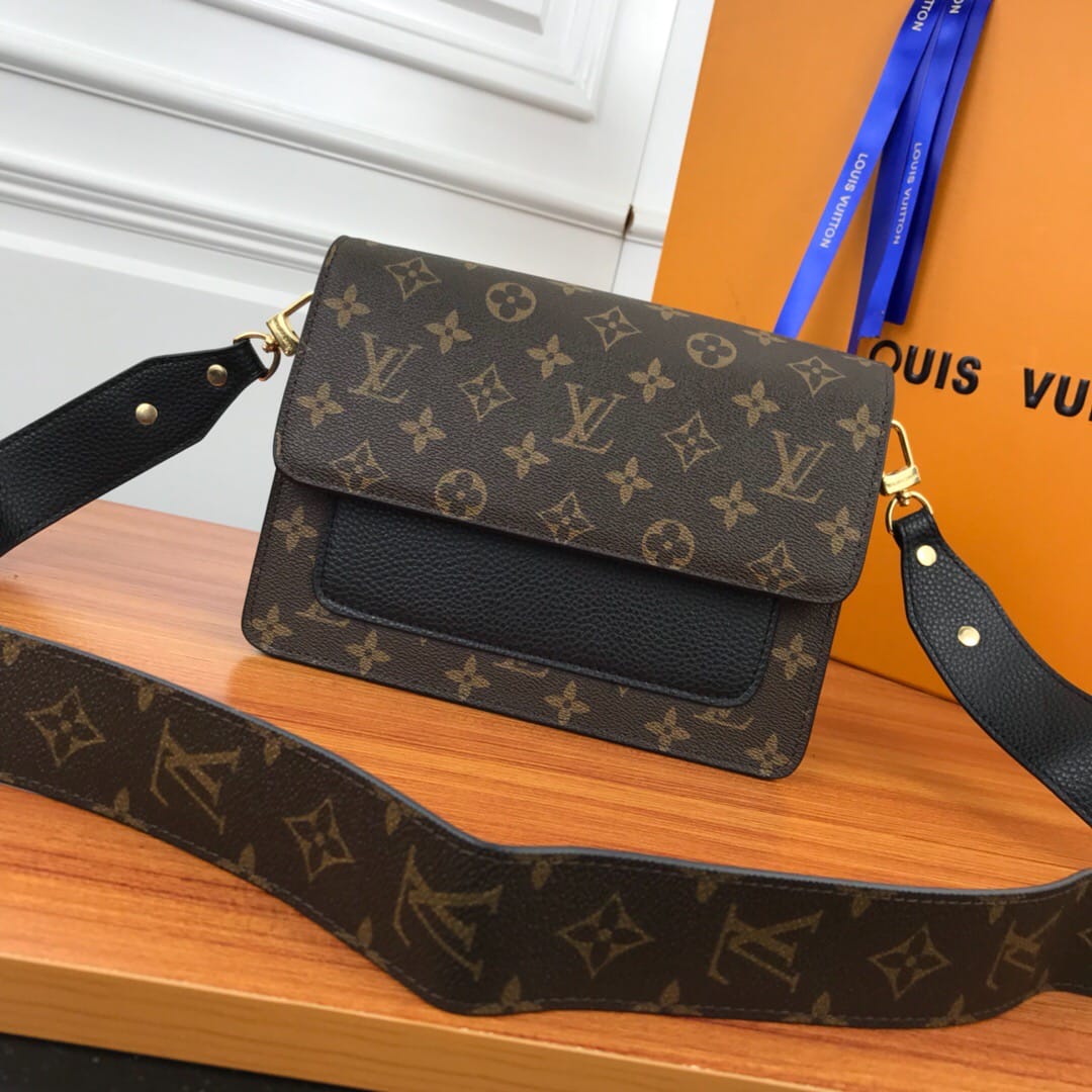 LV老花配皮 翻盖单肩斜挎包,型号66825 ,配宽肩带,