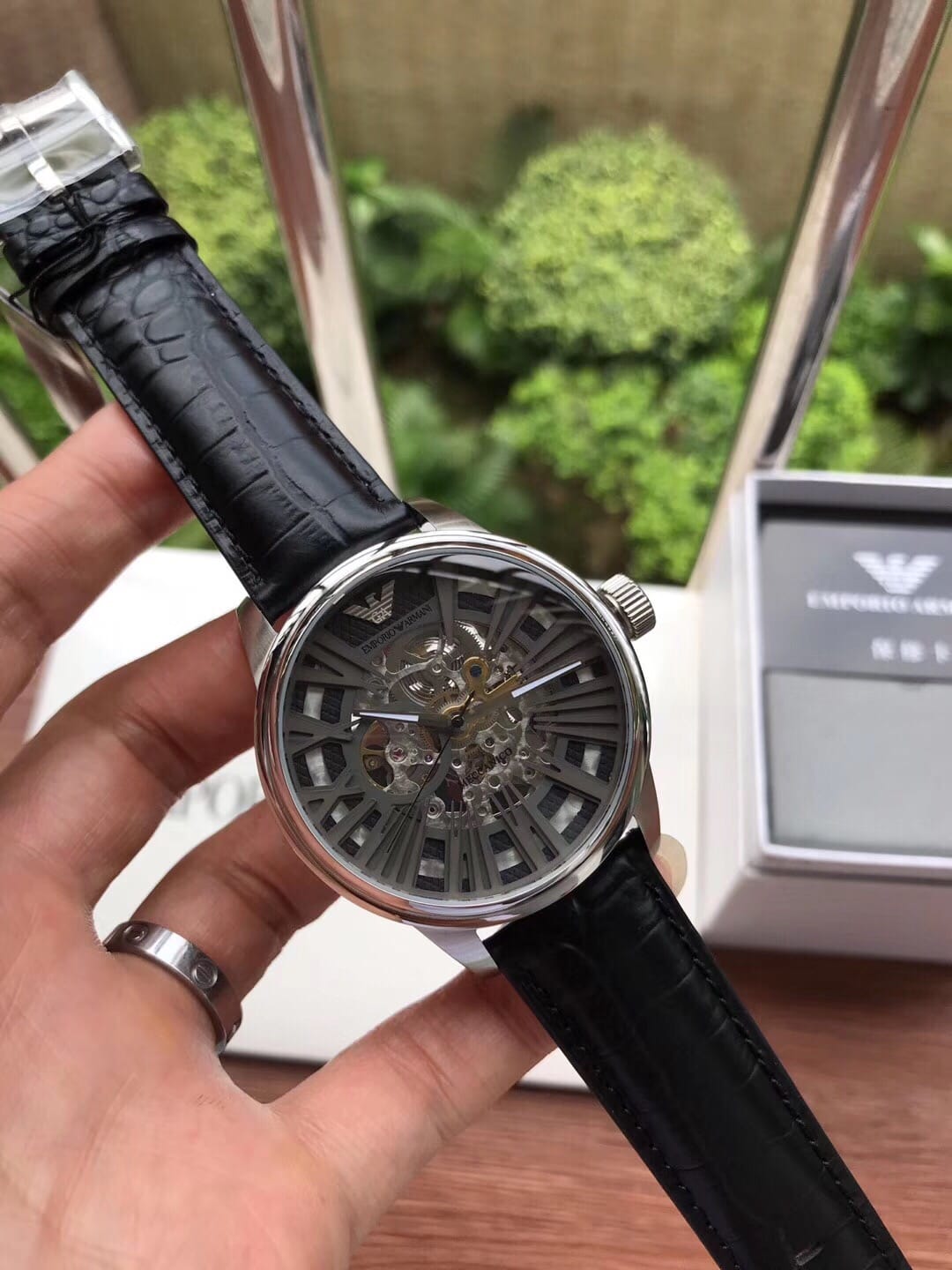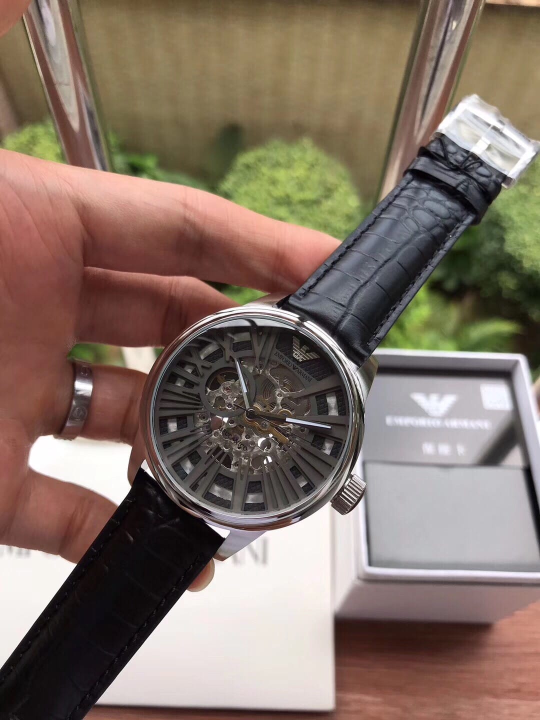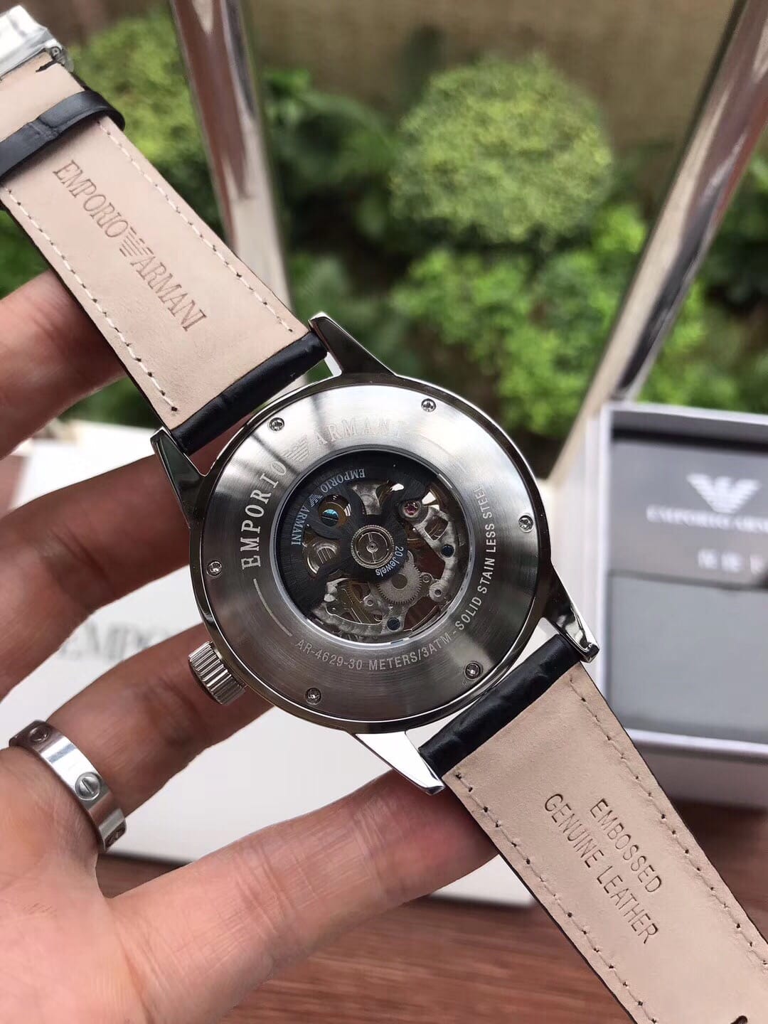 阿玛尼 全自动机械男表商务休闲镂空皮带手表型号AR4629