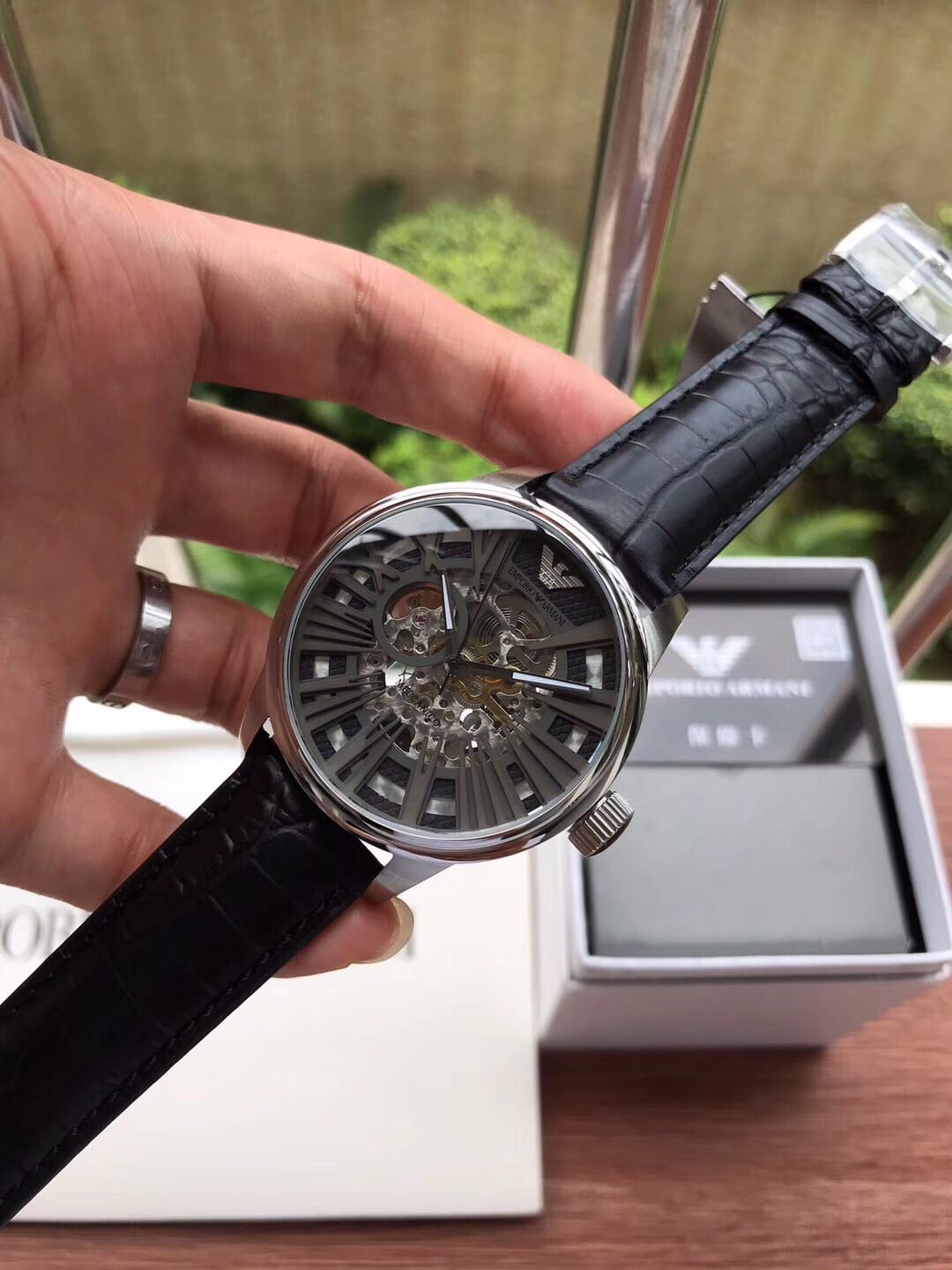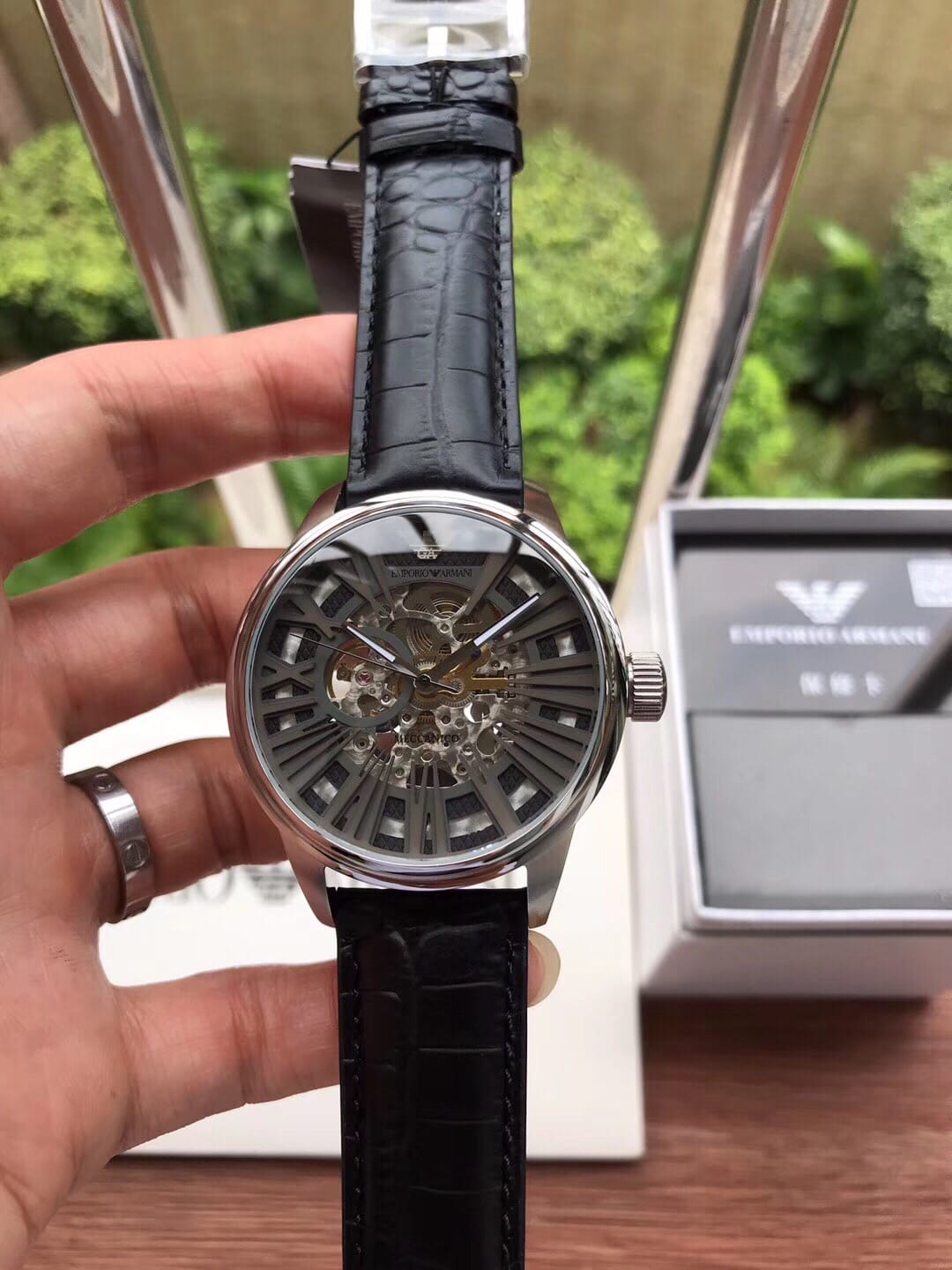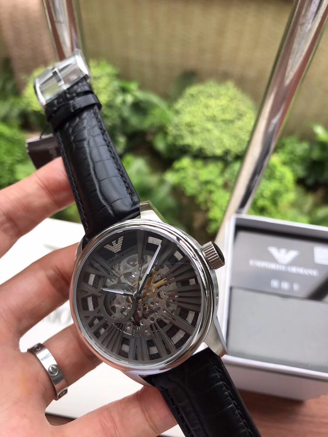 阿玛尼 全自动机械男表商务休闲镂空皮带手表型号AR4629