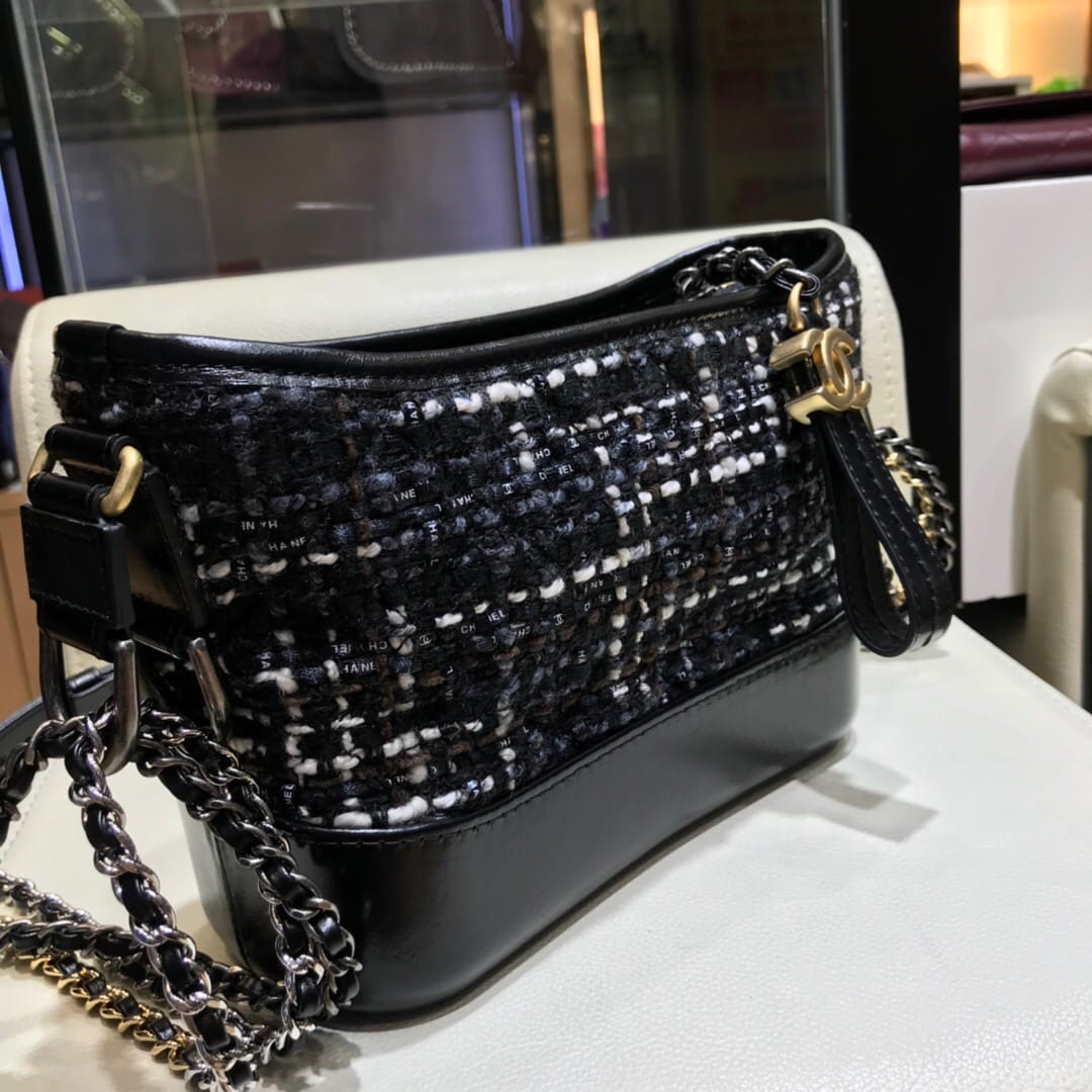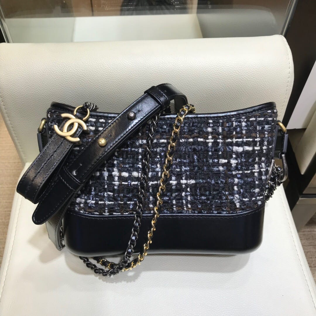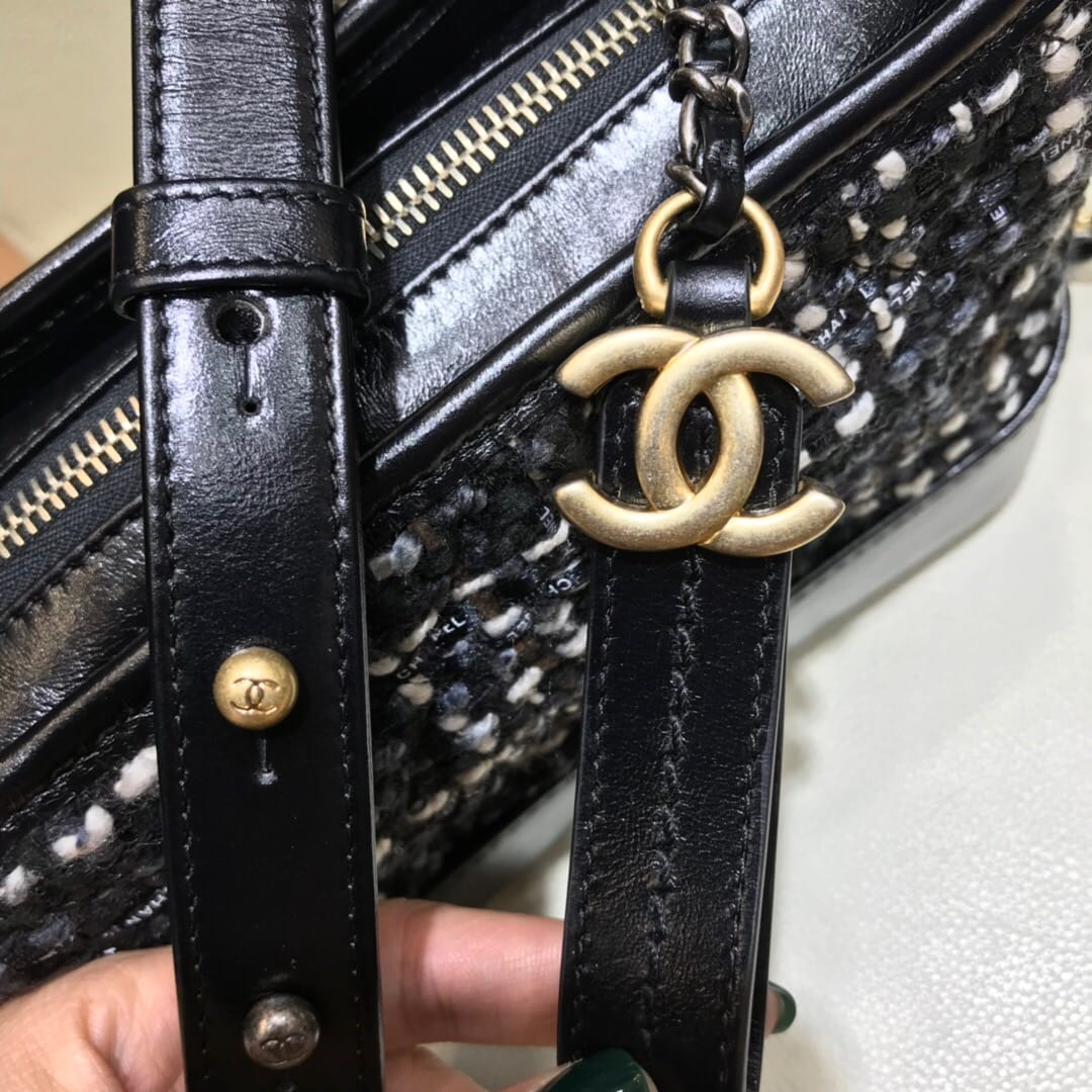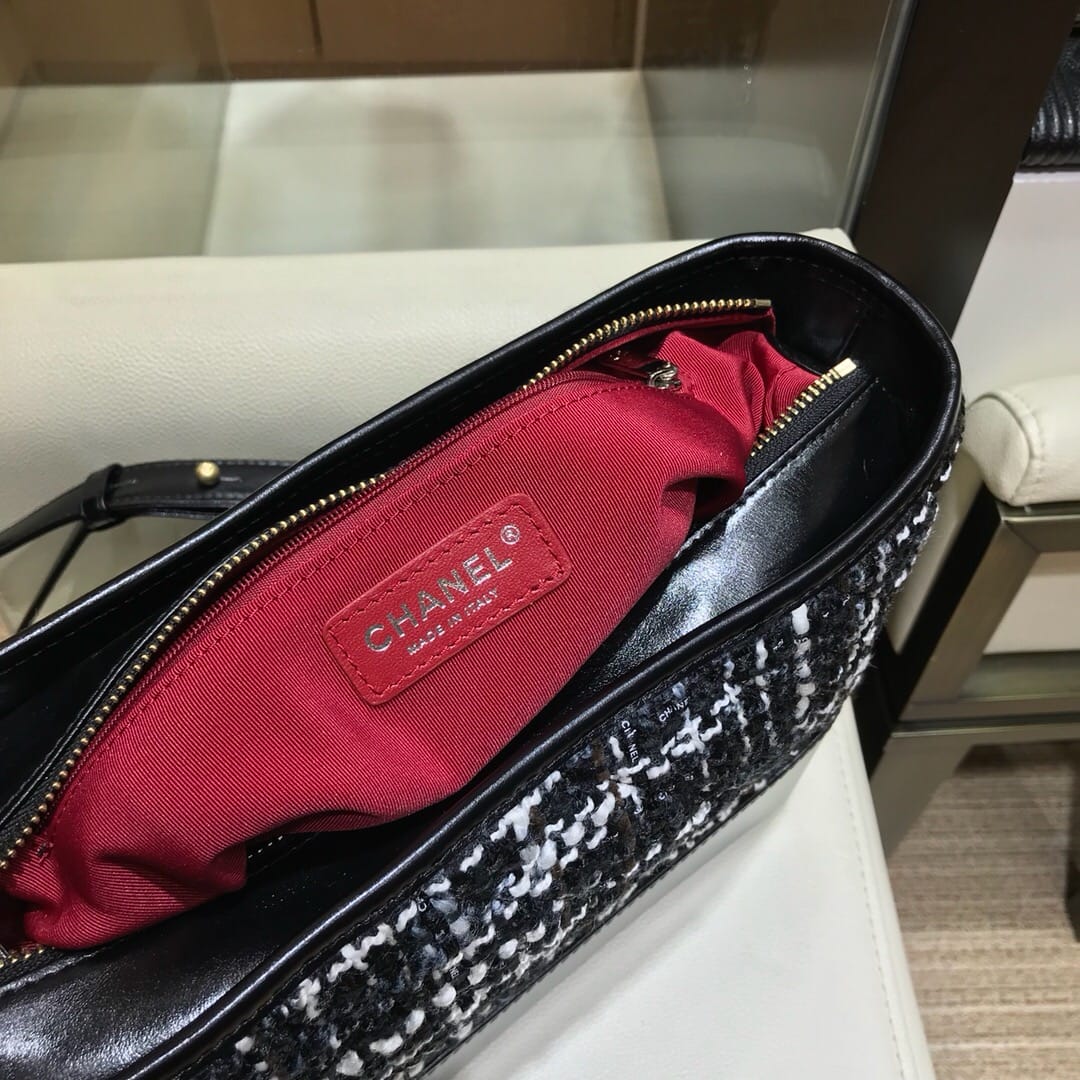 流浪包小号 8022呢子布料黑白配现货?小香18年最?爆新款 背带是用牛皮和金属环编织成的双链?可有多种不同背法??可以斜挎.单肩背.两肩背,超多背法??适合各种场合? 20cm