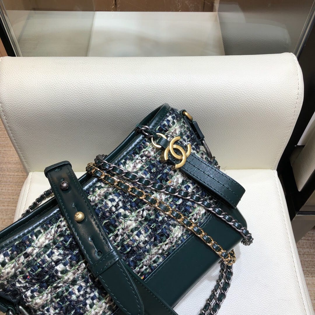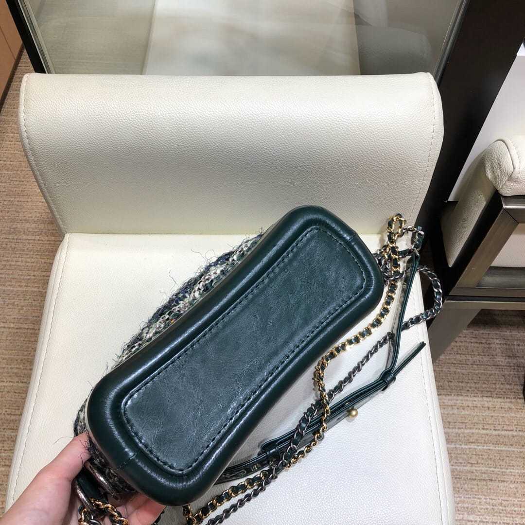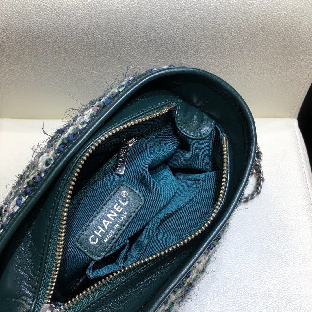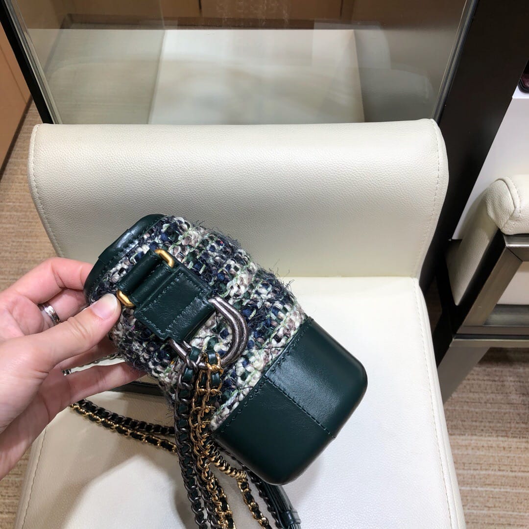 流浪包中号8022呢子布料新颜色?现货?小香18年最?爆新款 背带是用牛皮和金属环编织成的双链?可有多种不同背法??可以斜挎.单肩背.两肩背,超多背法??适合各种场合? 20cm