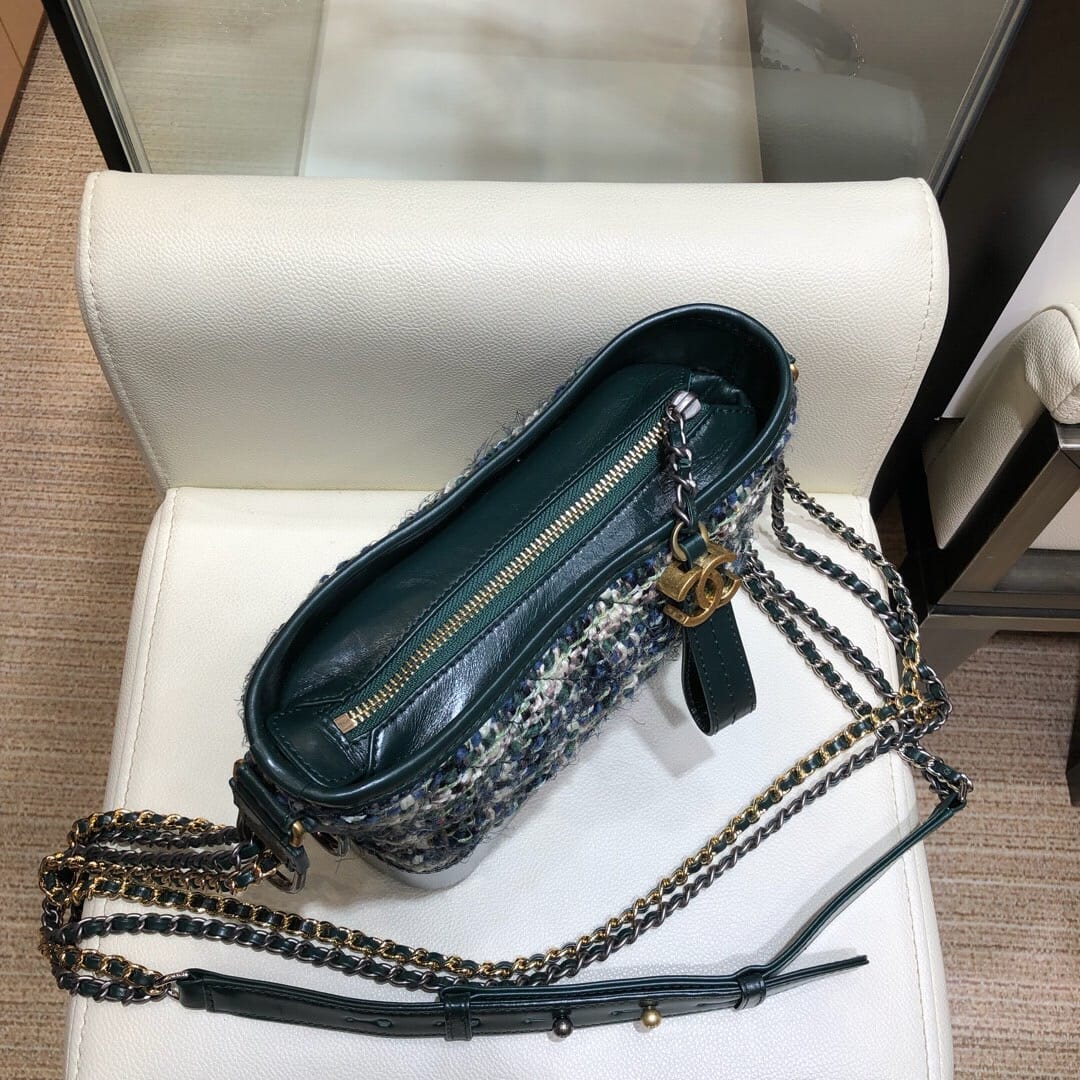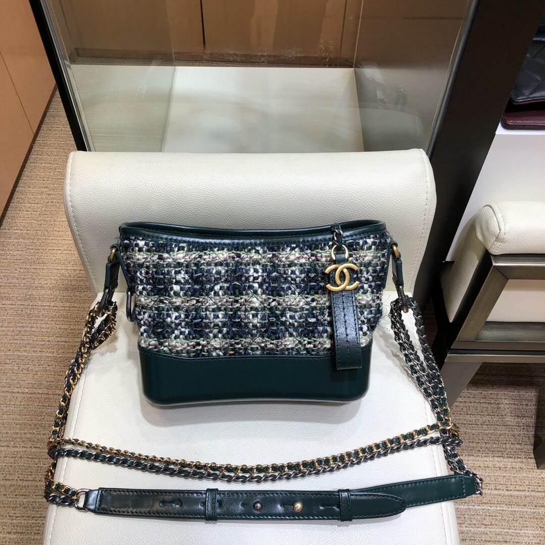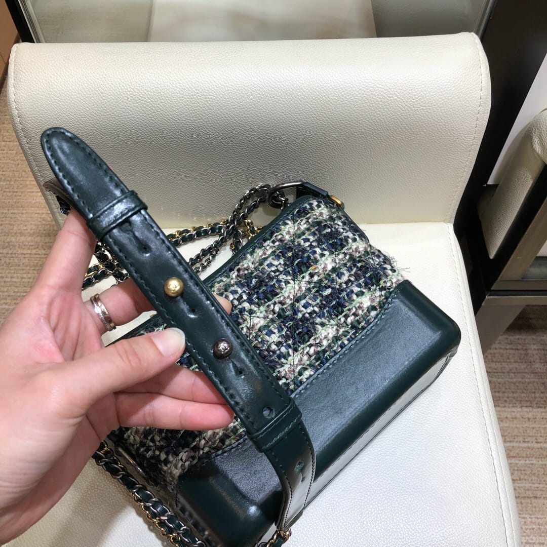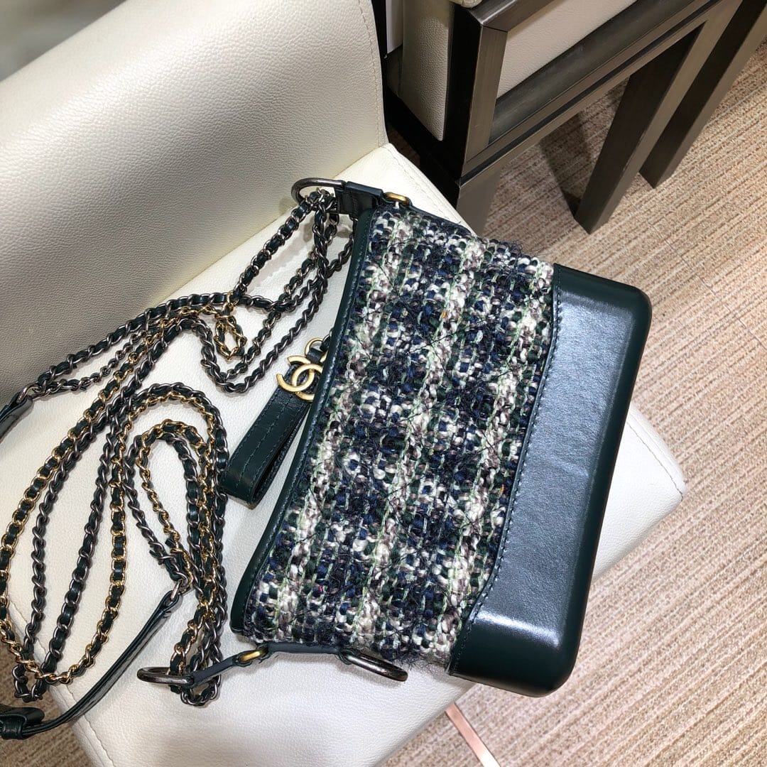 流浪包中号8022呢子布料新颜色?现货?小香18年最?爆新款 背带是用牛皮和金属环编织成的双链?可有多种不同背法??可以斜挎.单肩背.两肩背,超多背法??适合各种场合? 20cm