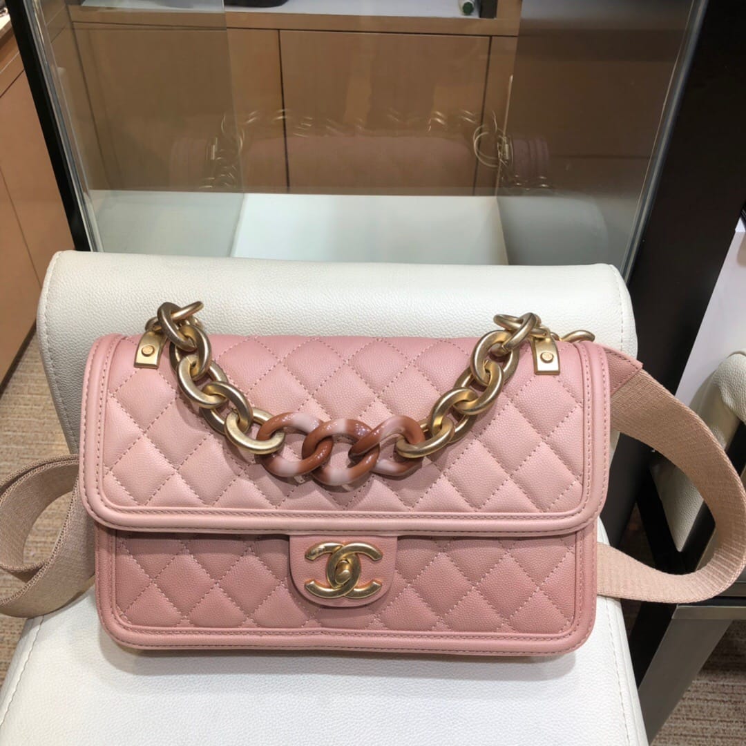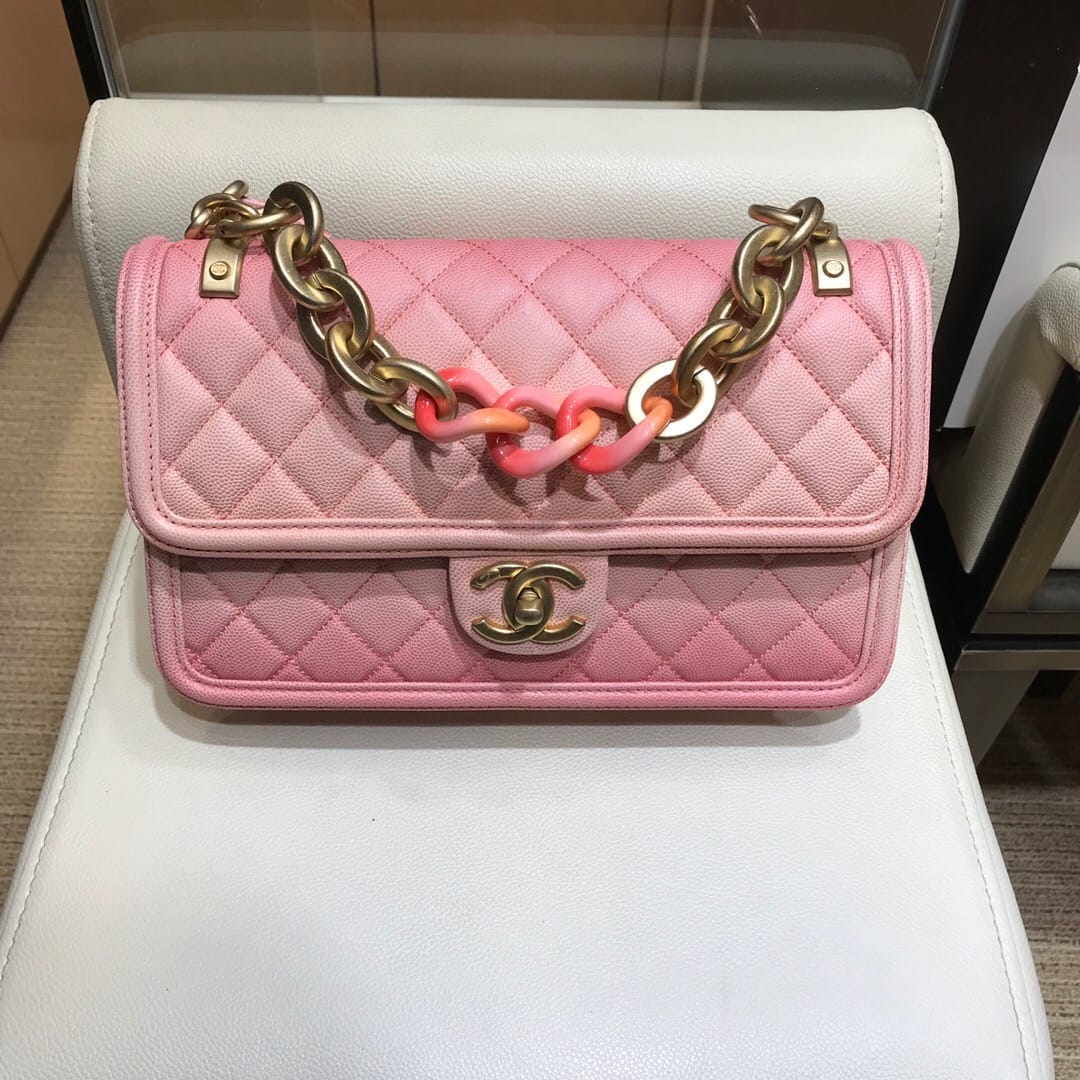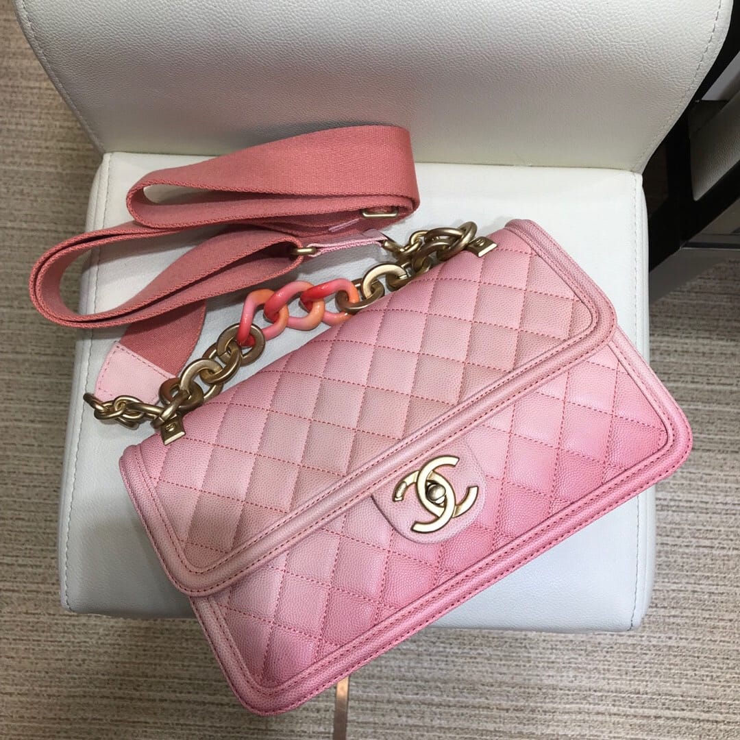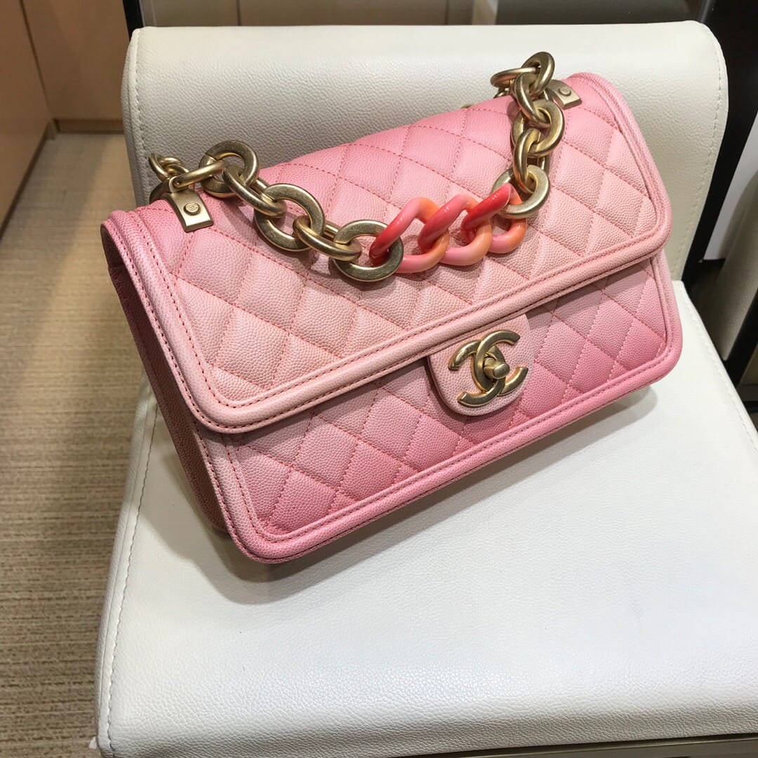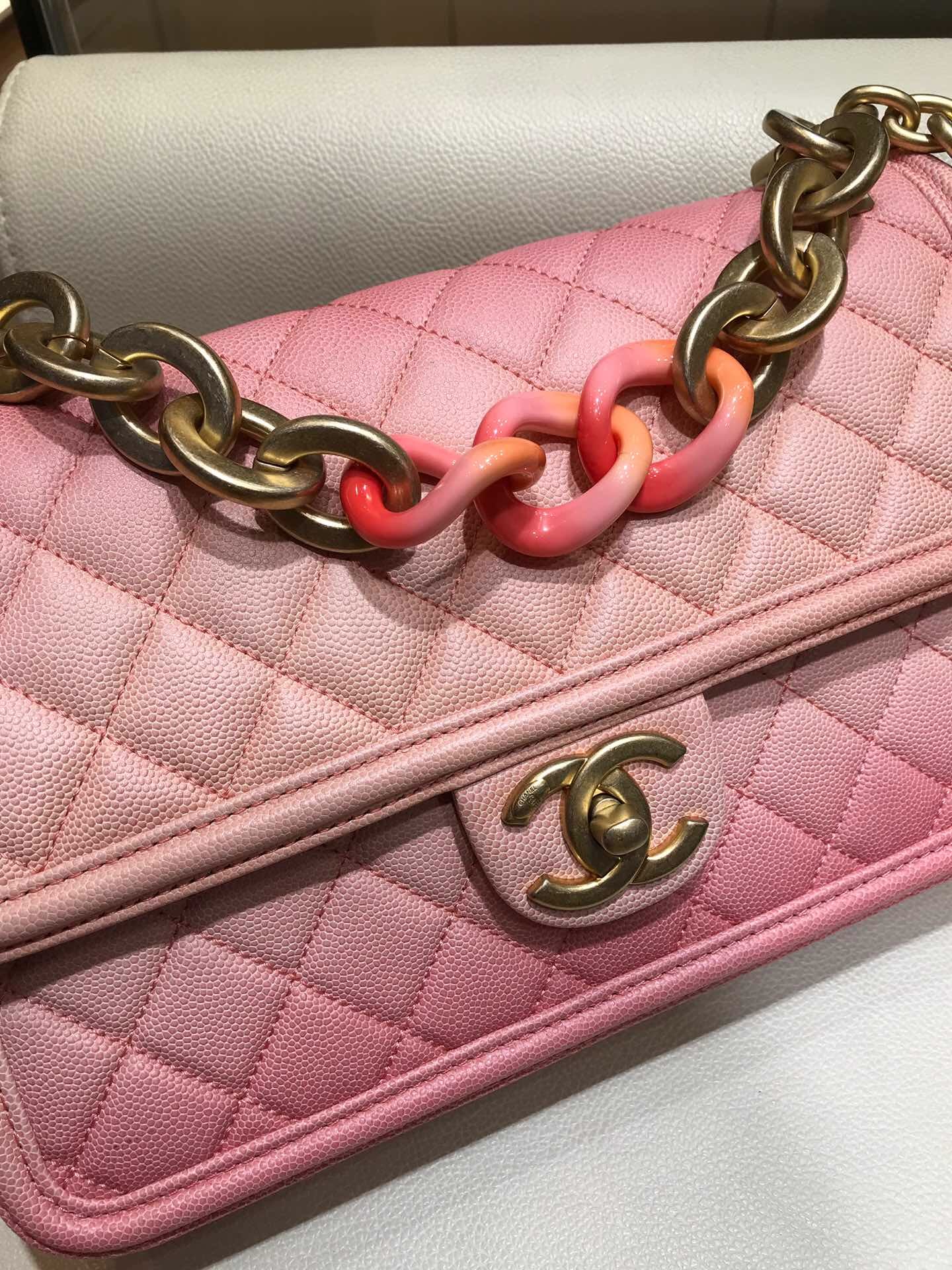 A0s0061大号 渐变浅粉 进口原单细颗粒鱼子酱 编织肩带?做旧五金打高密度亚克力 手拎斜挎单口盖时尚 Size:26cm