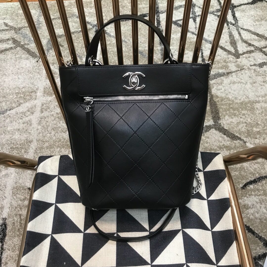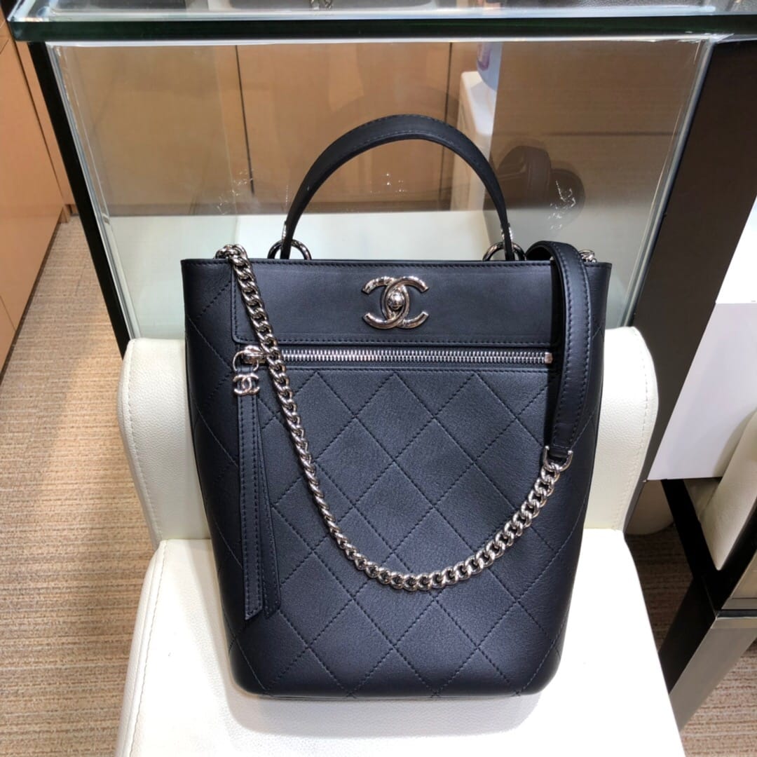 全新Chane*2019春夏系列 菱格手提水桶包 带有中古的