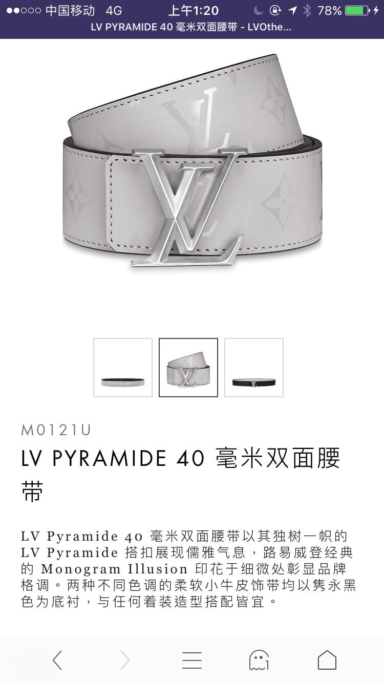 原单水货 LV Pyramide 40 毫米双面腰带以其独树