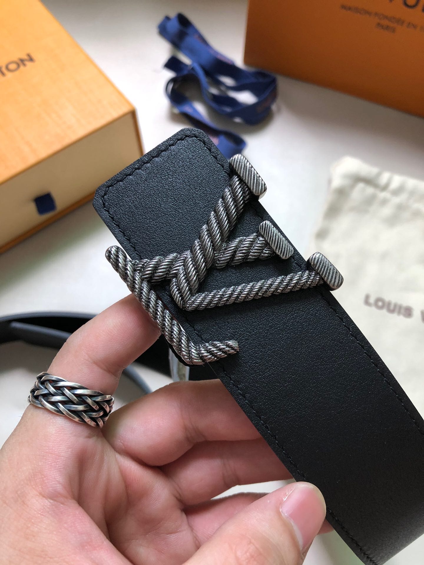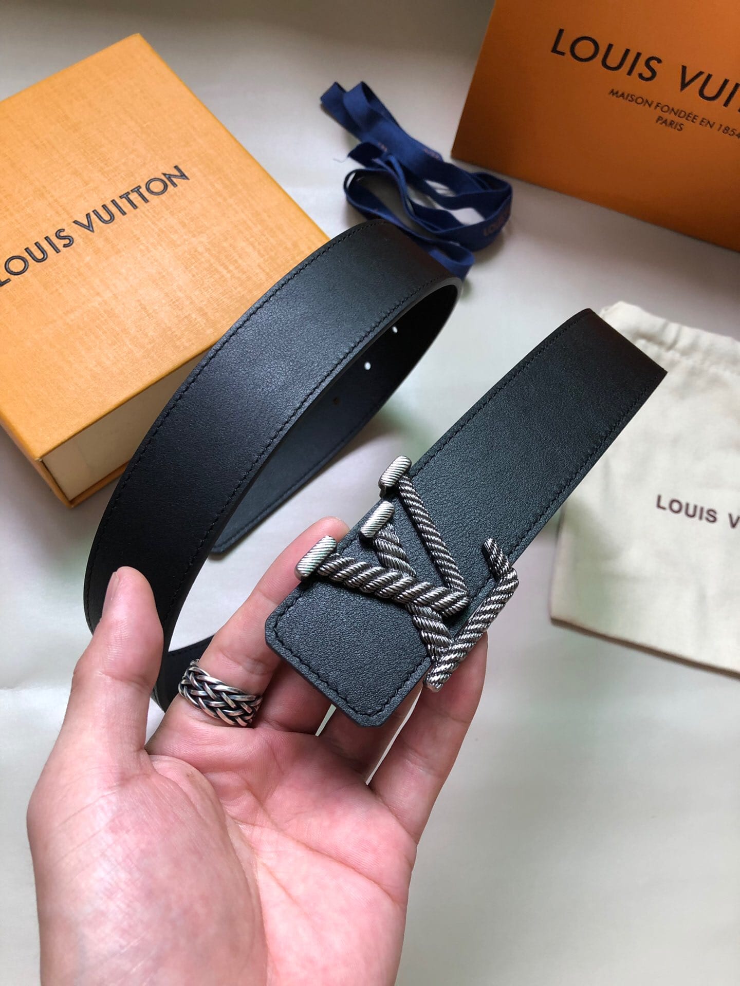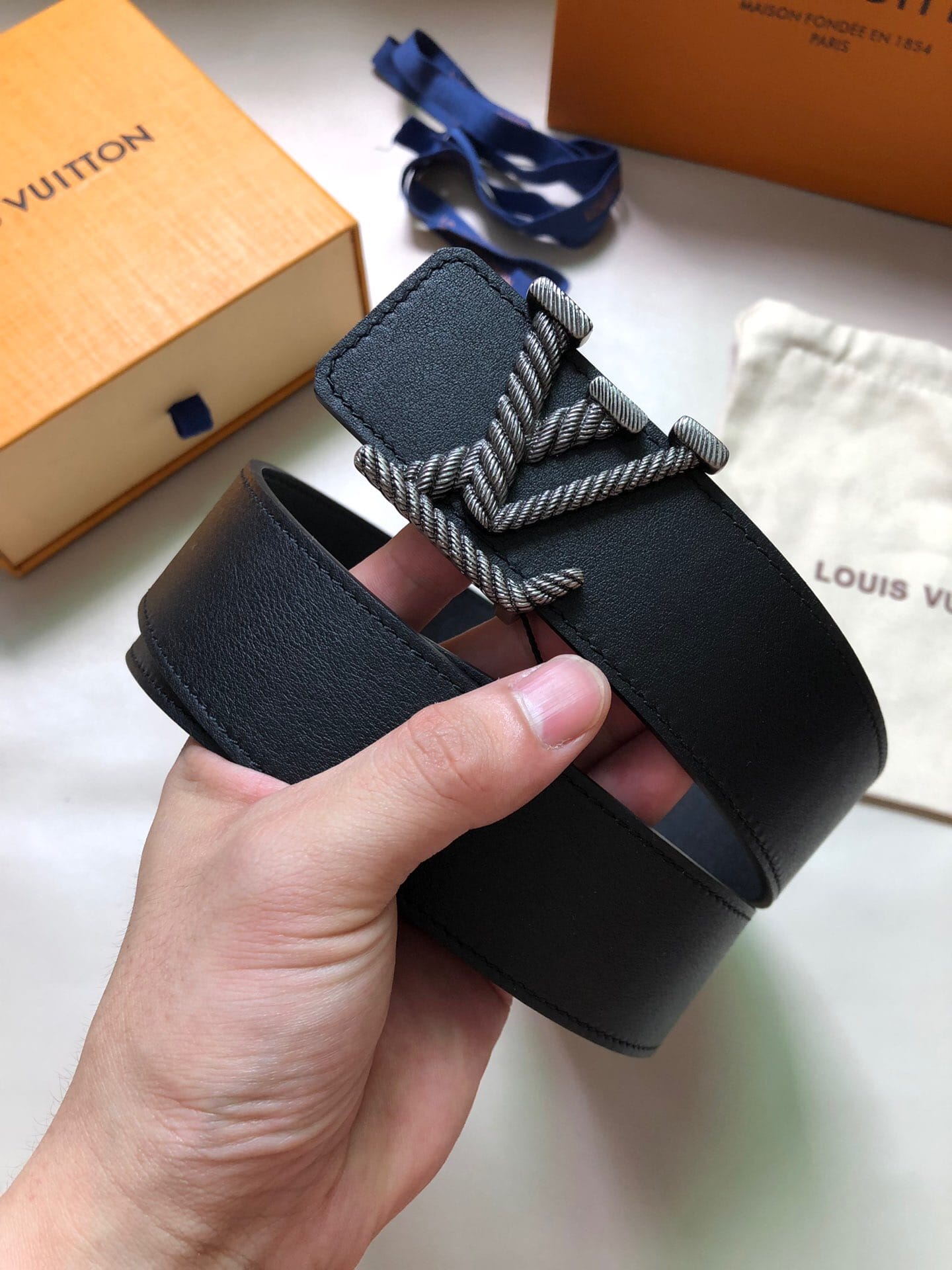 LV Rope 40 毫米腰带采用纽绳造型 LV 搭扣,其