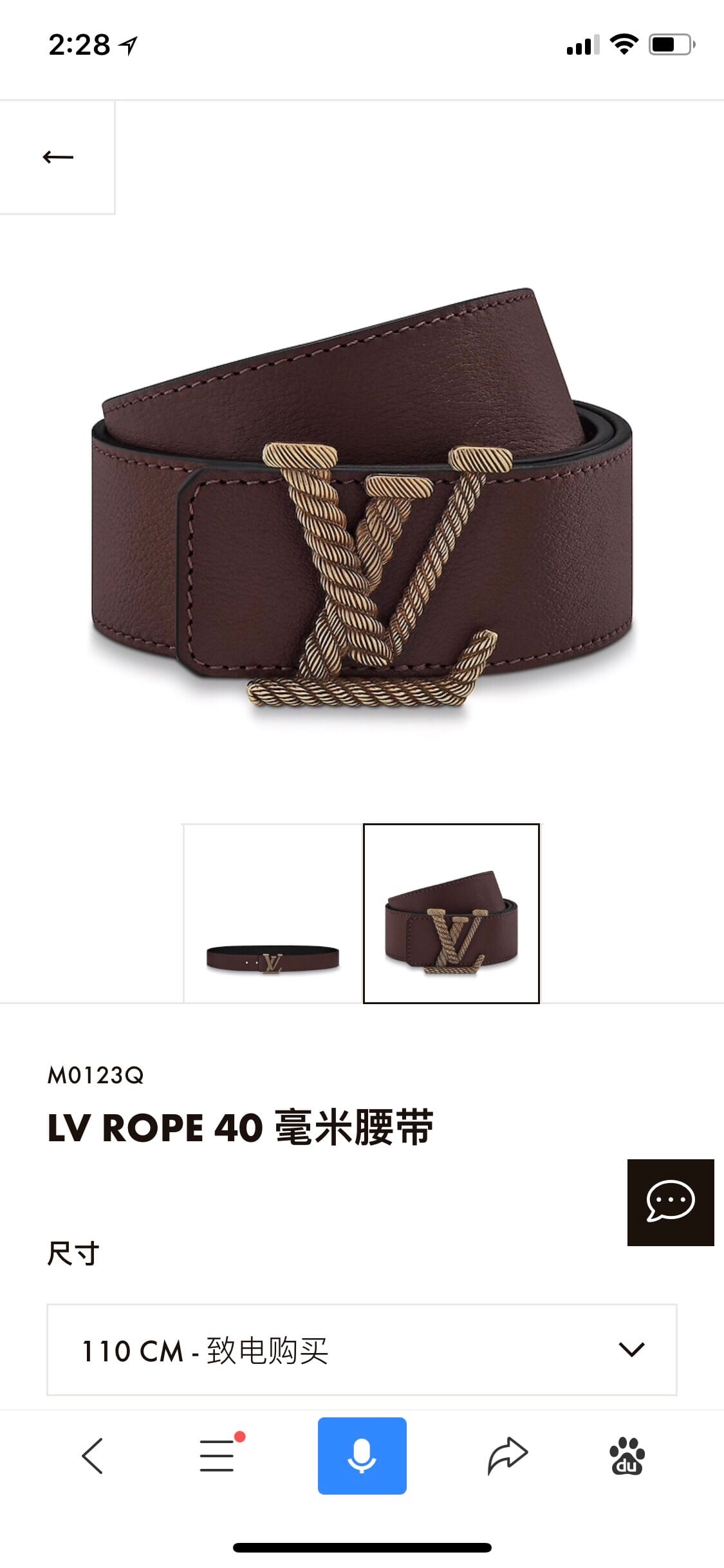 LV Rope 40 毫米腰带采用纽绳造型 LV 搭扣,其做
