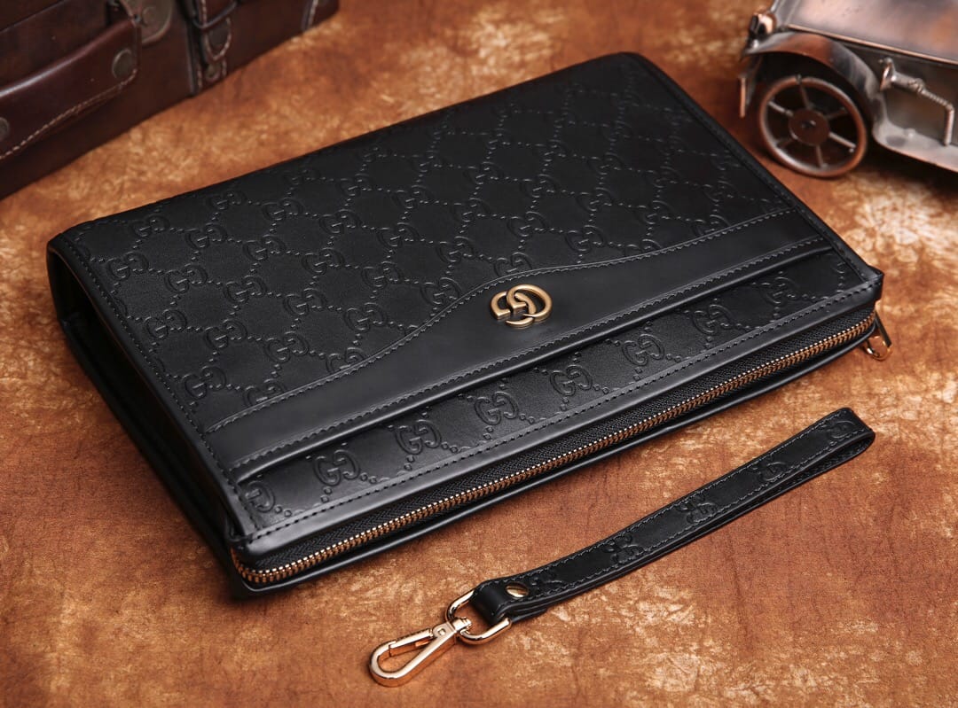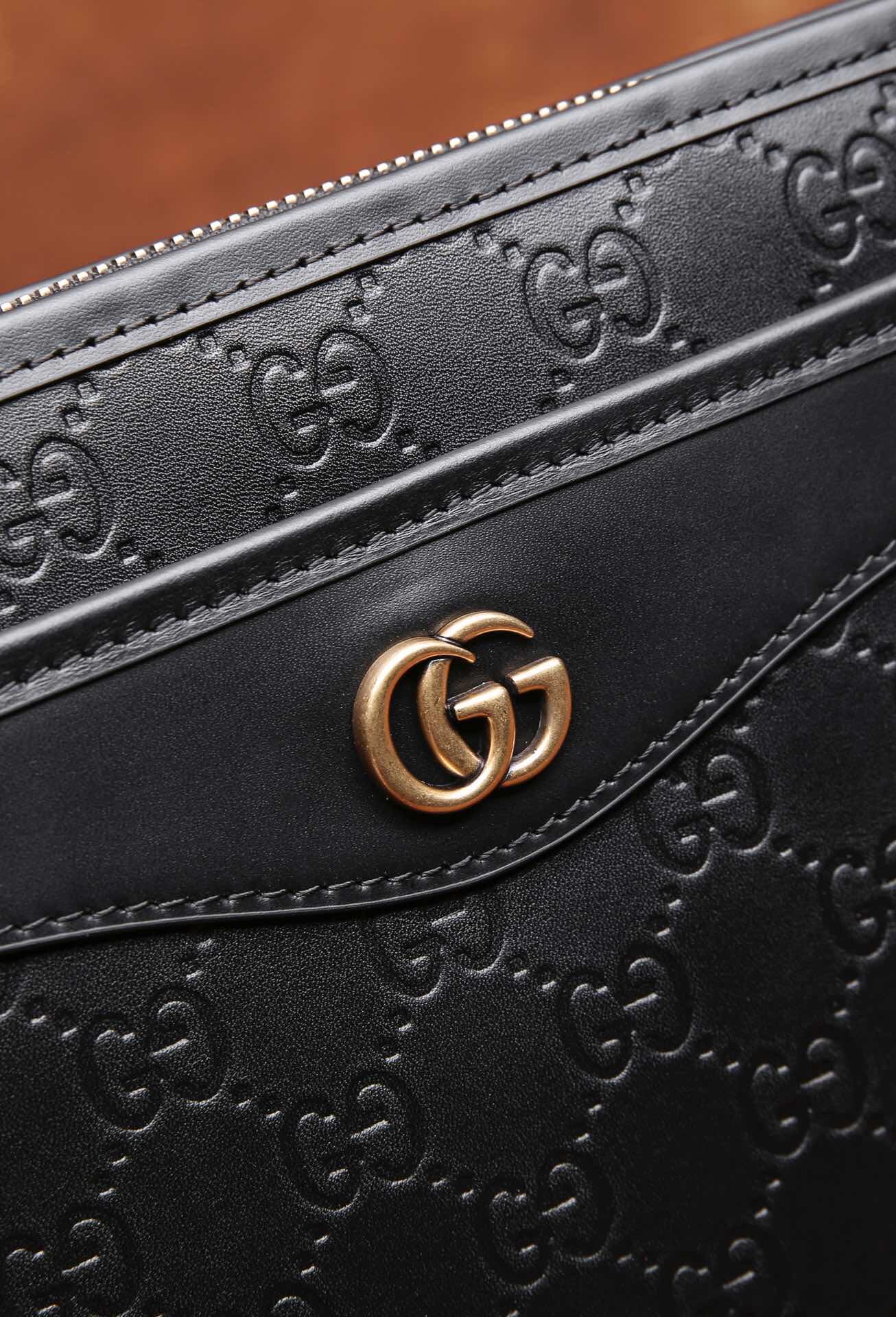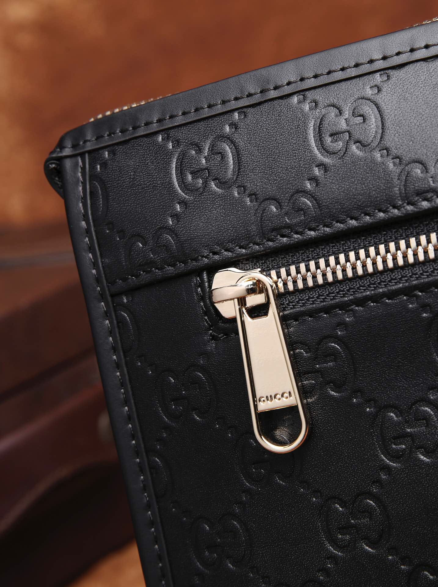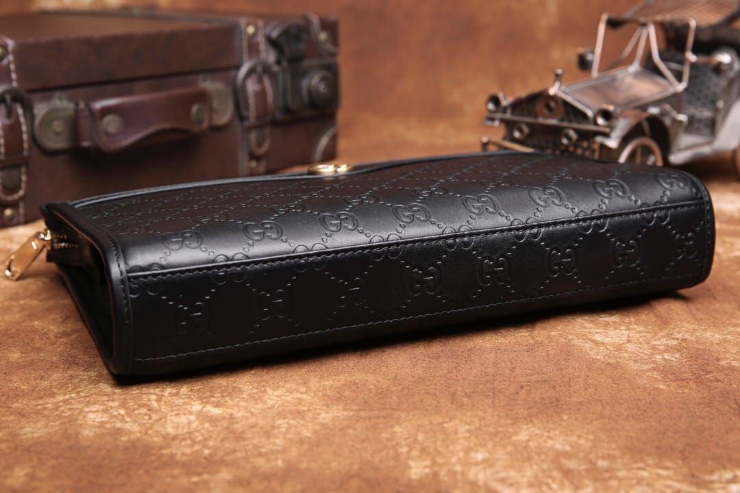 Gucci ,最新爱琴皮料系列之 厚手拿包,气质有型!前,后都设有带风琴拉链袋,轻松放置。光泽饱满,手感厚实,配套精致五金,高端绒里,细节到位。HZ9808 28\19\6