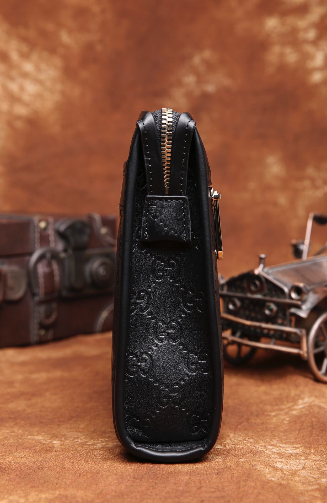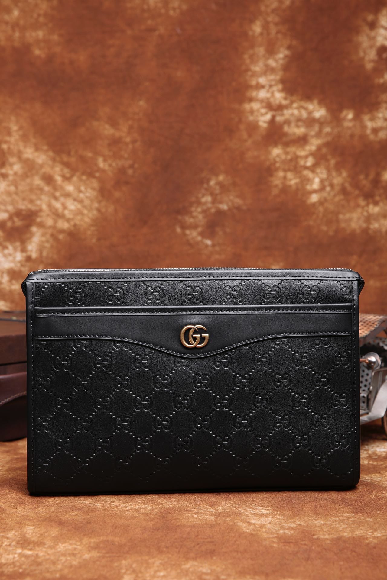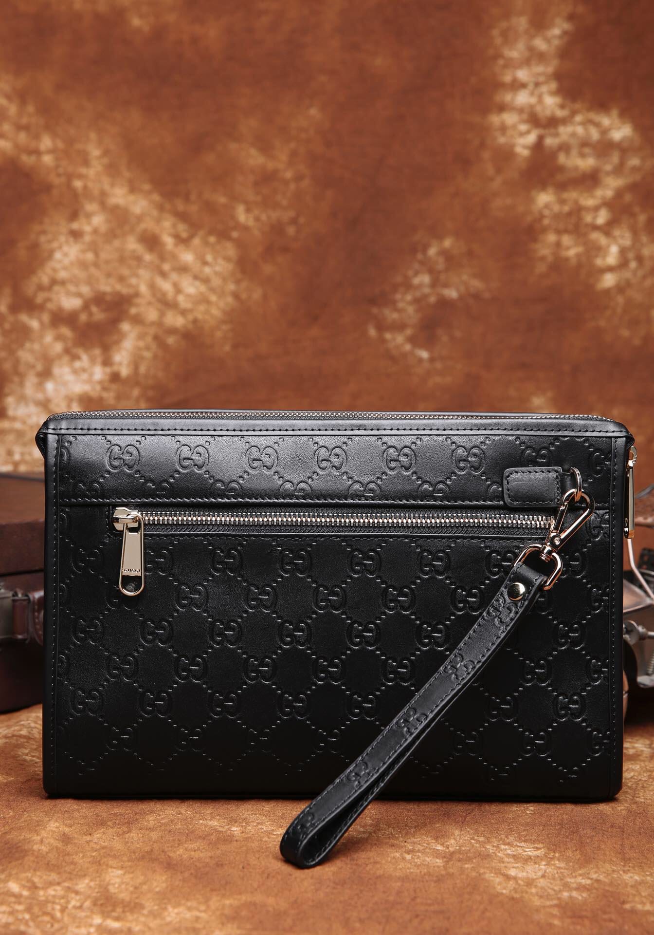 Gucci ,最新爱琴皮料系列之 厚手拿包,气质有型!前,后都设有带风琴拉链袋,轻松放置。光泽饱满,手感厚实,配套精致五金,高端绒里,细节到位。HZ9808 28\19\6
