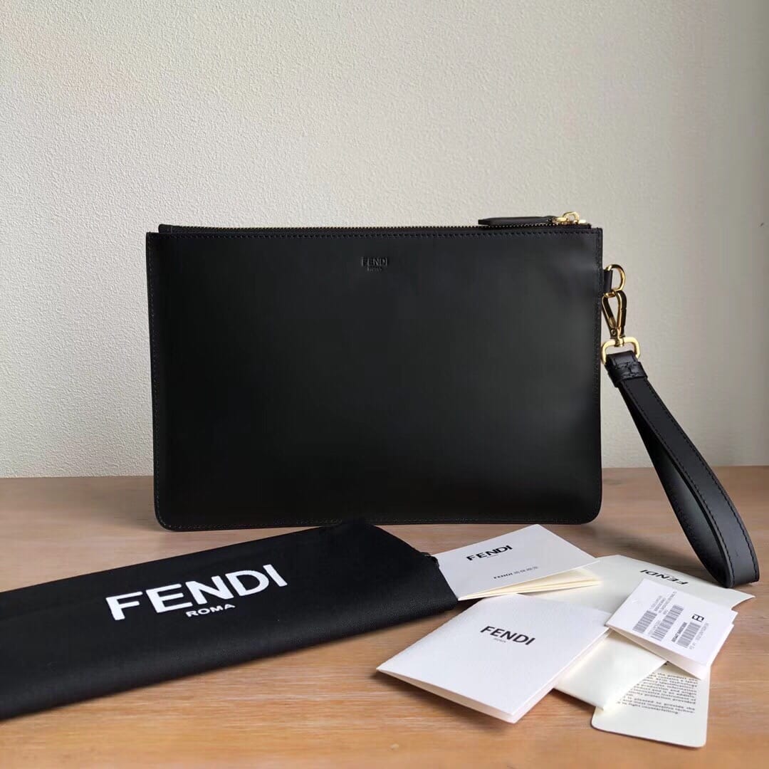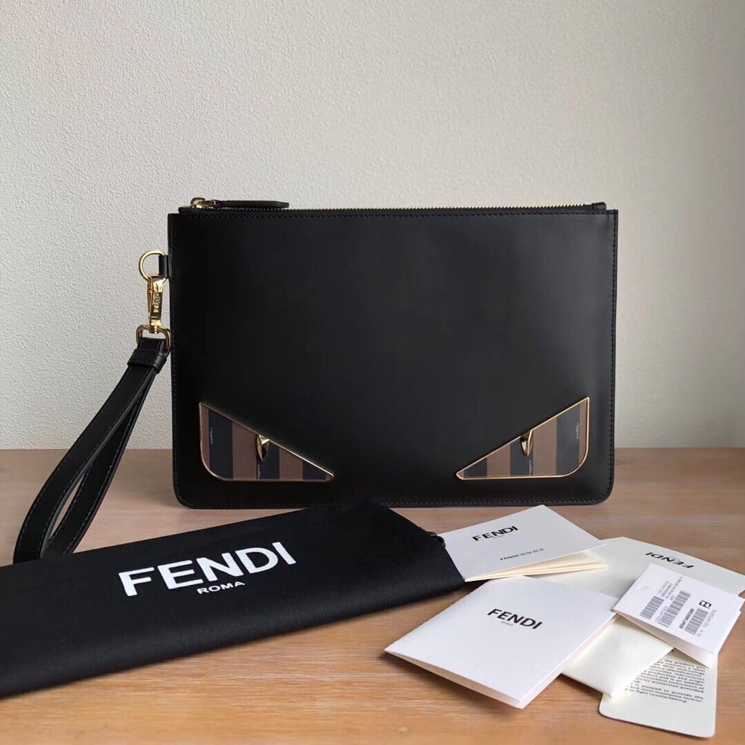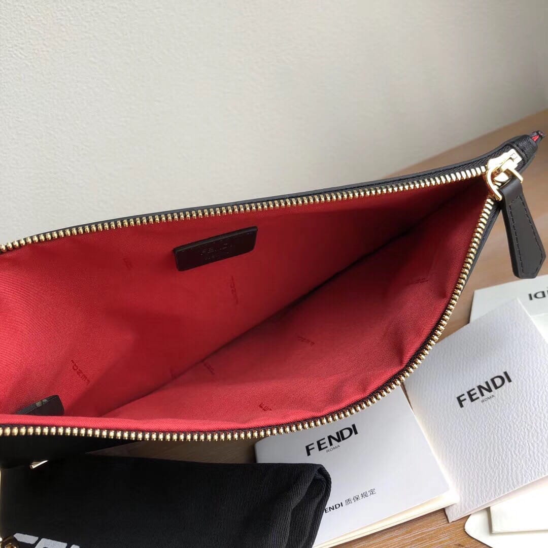 Fendi? Bag Bug手拿包。修长拉链小口袋??黑色