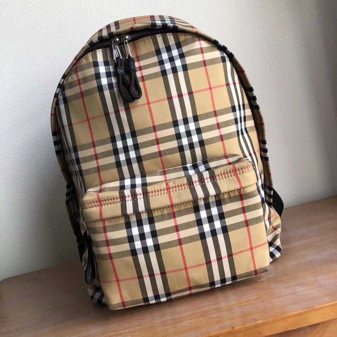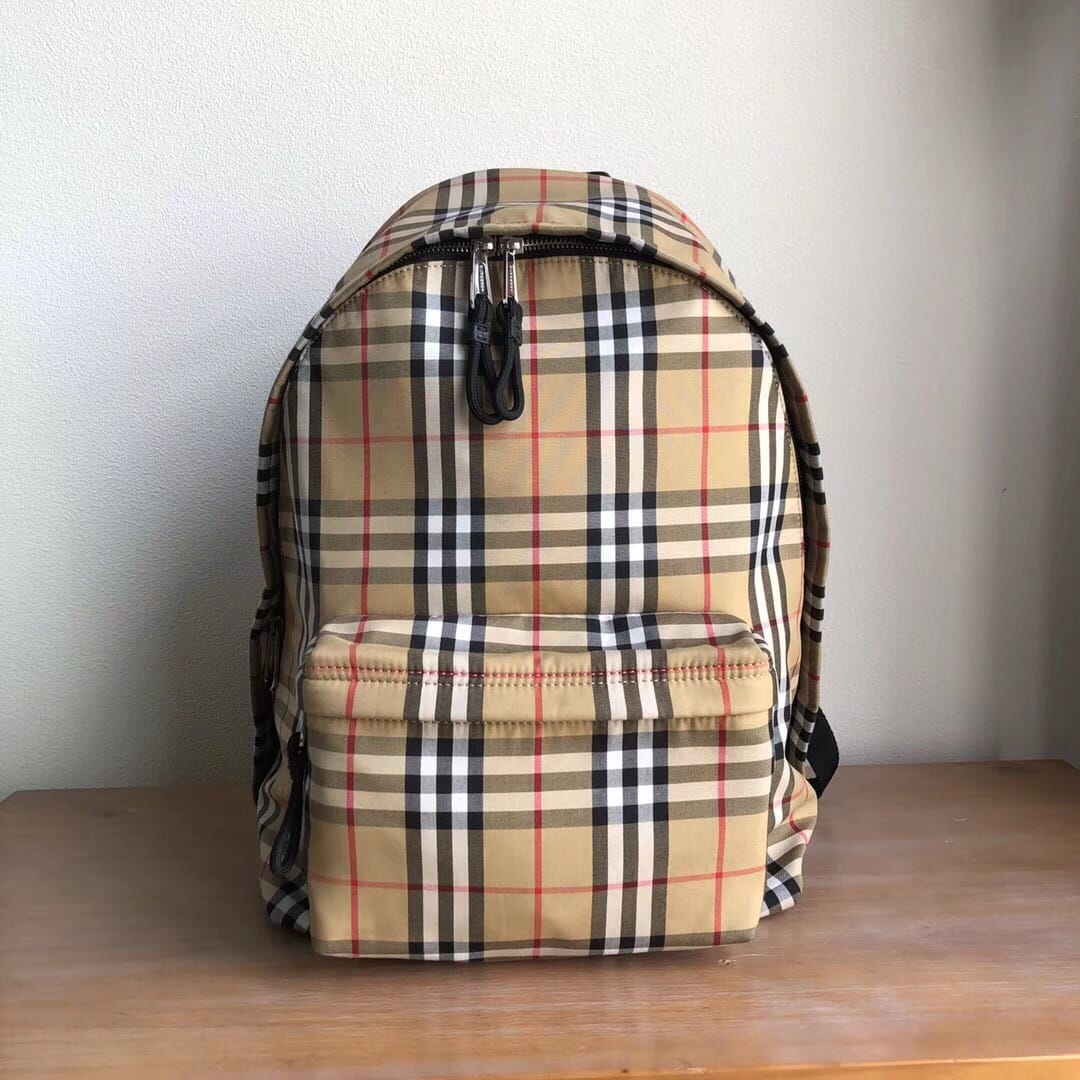 B家 尼龙双肩包,装饰 Vintage 复古格纹,搭配平滑皮