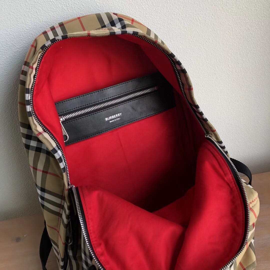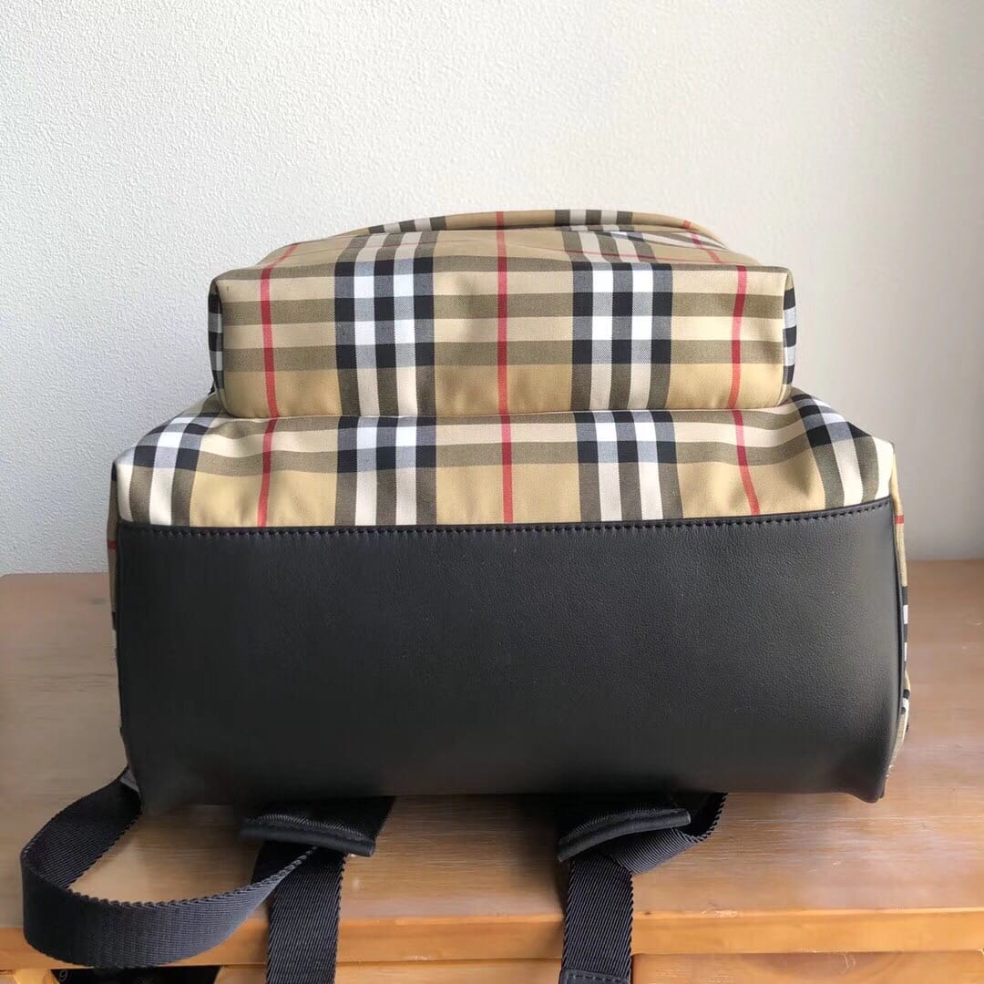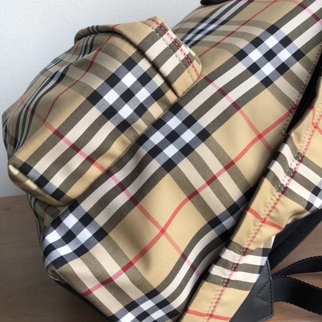 B家 尼龙双肩包,装饰 Vintage 复古格纹,搭配平滑皮革边饰,肩背带饰有 Burber*y字母提花精纺徽标。尺寸:30.5×14.5×42.5cm