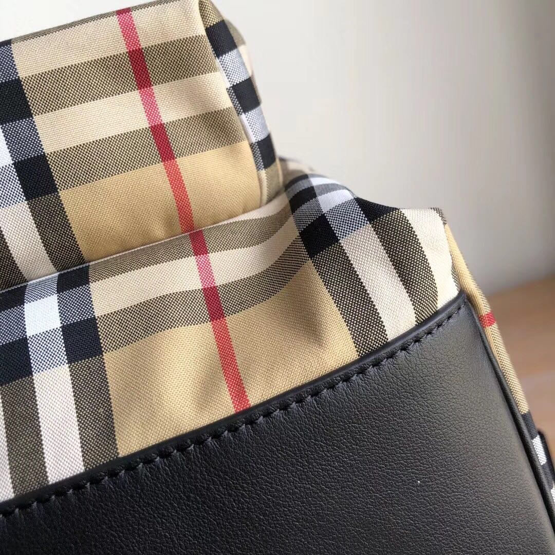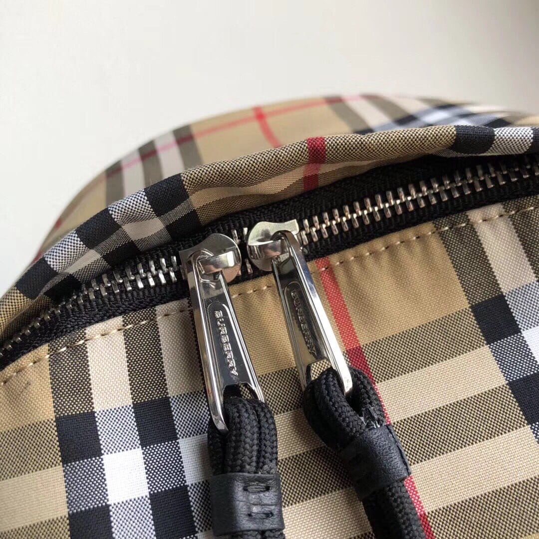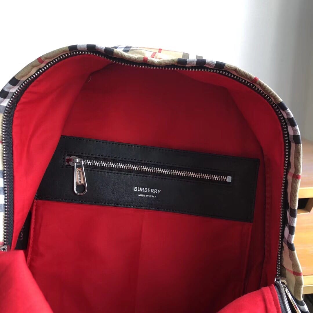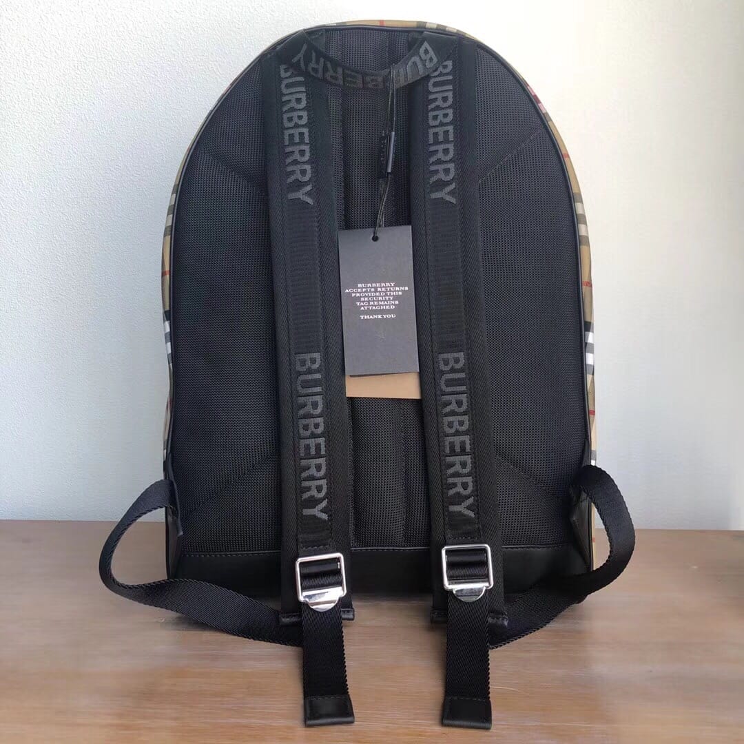 B家 尼龙双肩包,装饰 Vintage 复古格纹,搭配平滑皮革边饰,肩背带饰有 Burber*y字母提花精纺徽标。尺寸:30.5×14.5×42.5cm