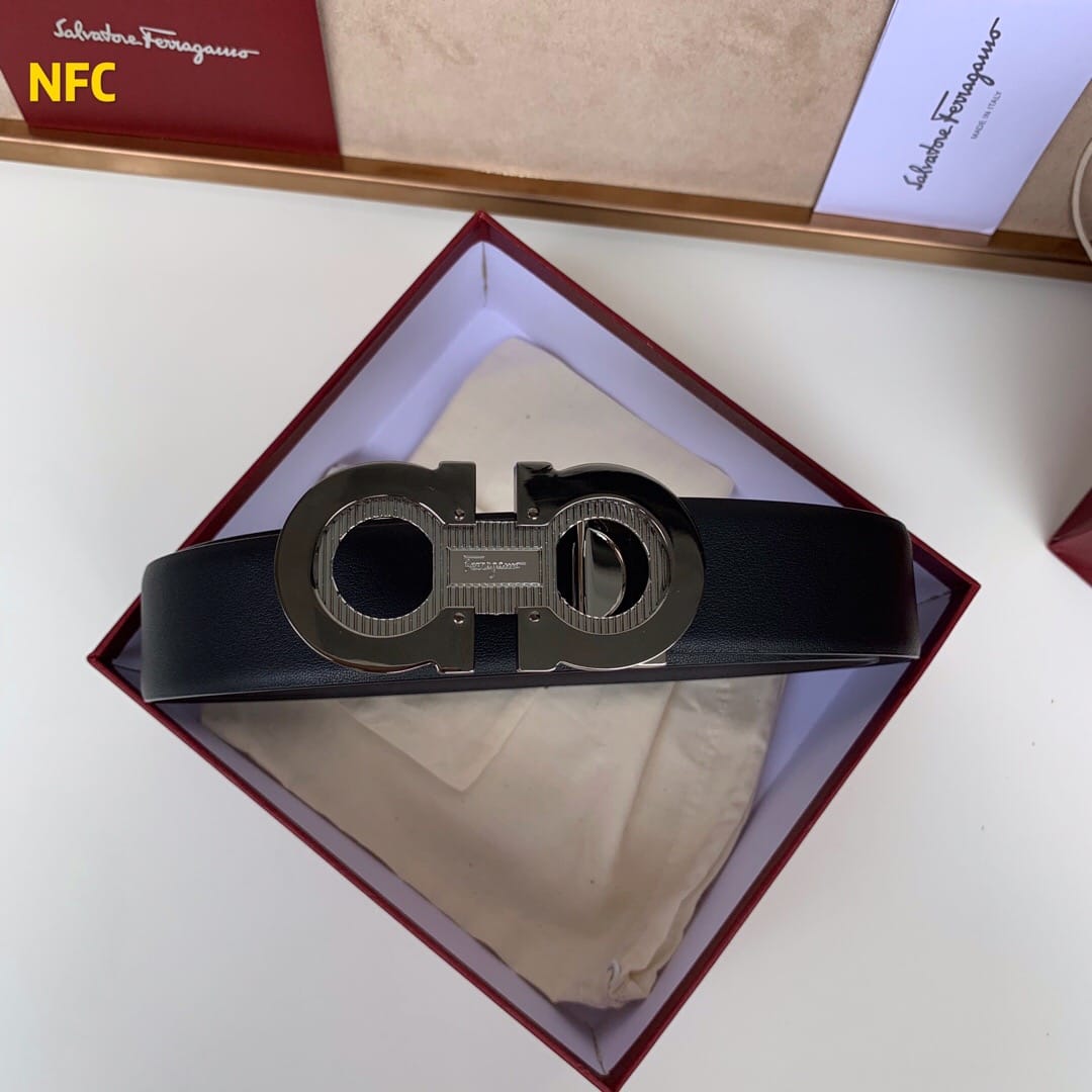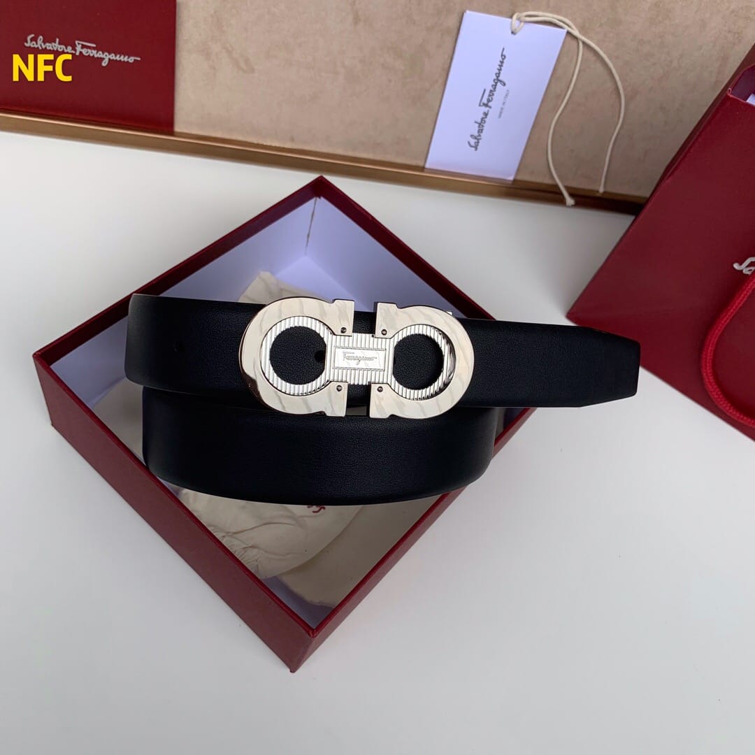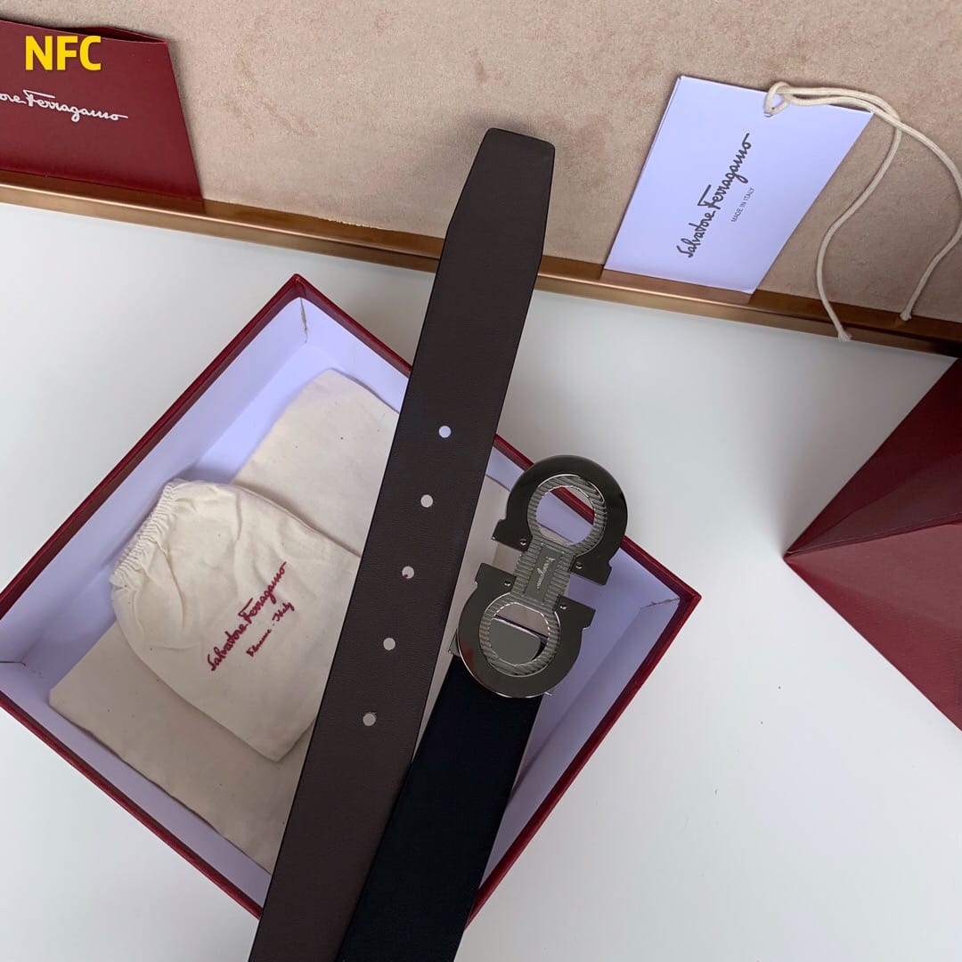 支持NFC芯片认证 代购级别 (非市场货)菲拉.格慕?新款男士原单腰带,头层牛皮,搭配新款尾夹扣!?带宽3.5Cm,可裁剪长度???全套包装