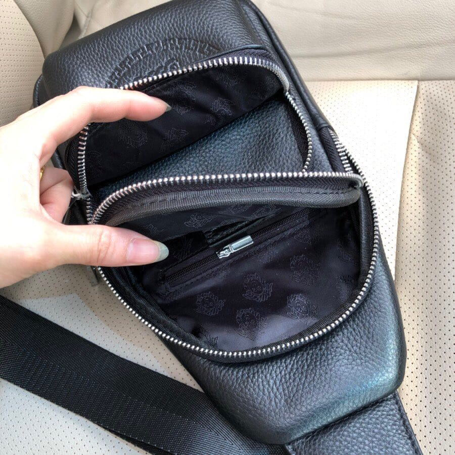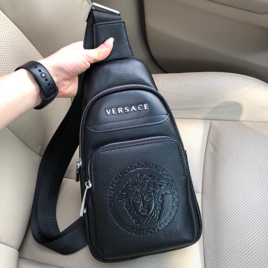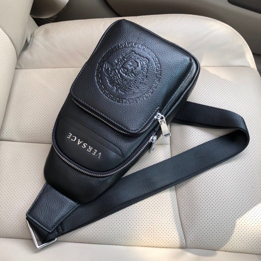 {范思哲}男士胸包,原版牛皮荔枝纹。搭配原版五金。霸气十足,