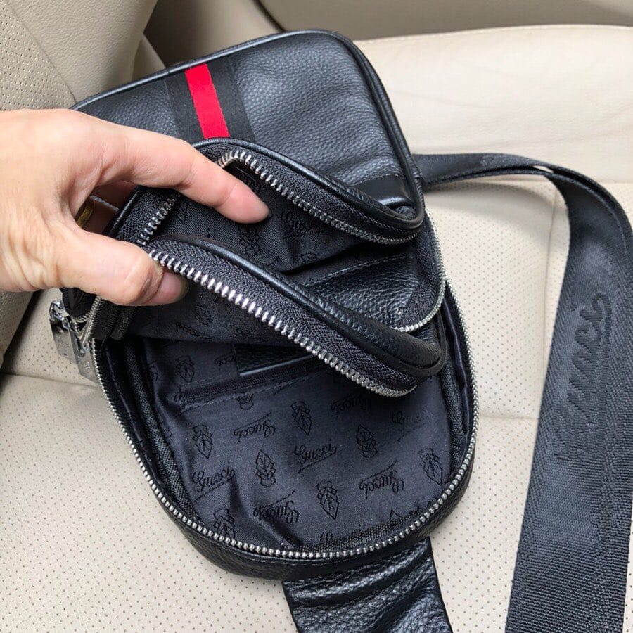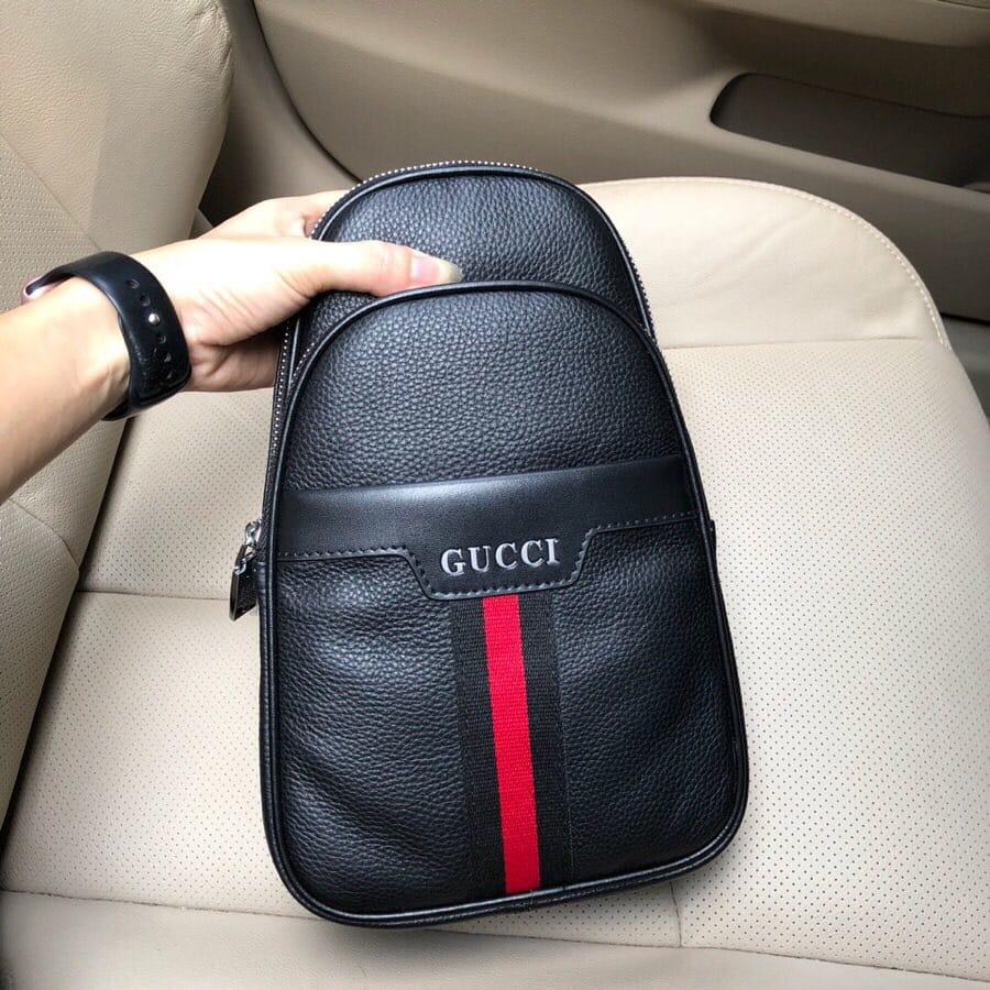 古驰} 男士胸包,精選皮料中的鉑金-高檔进口牛皮?均勻的走線