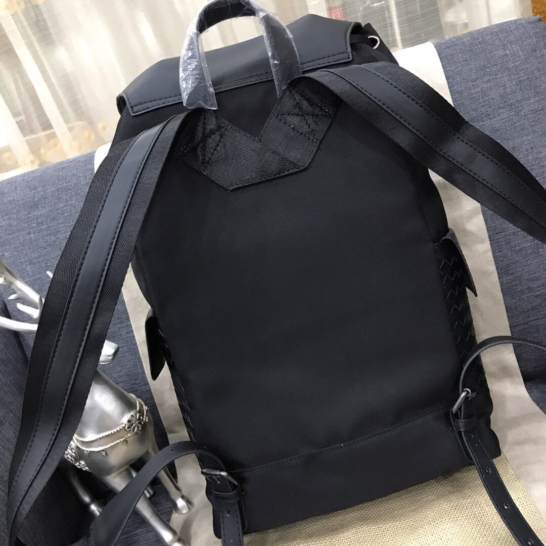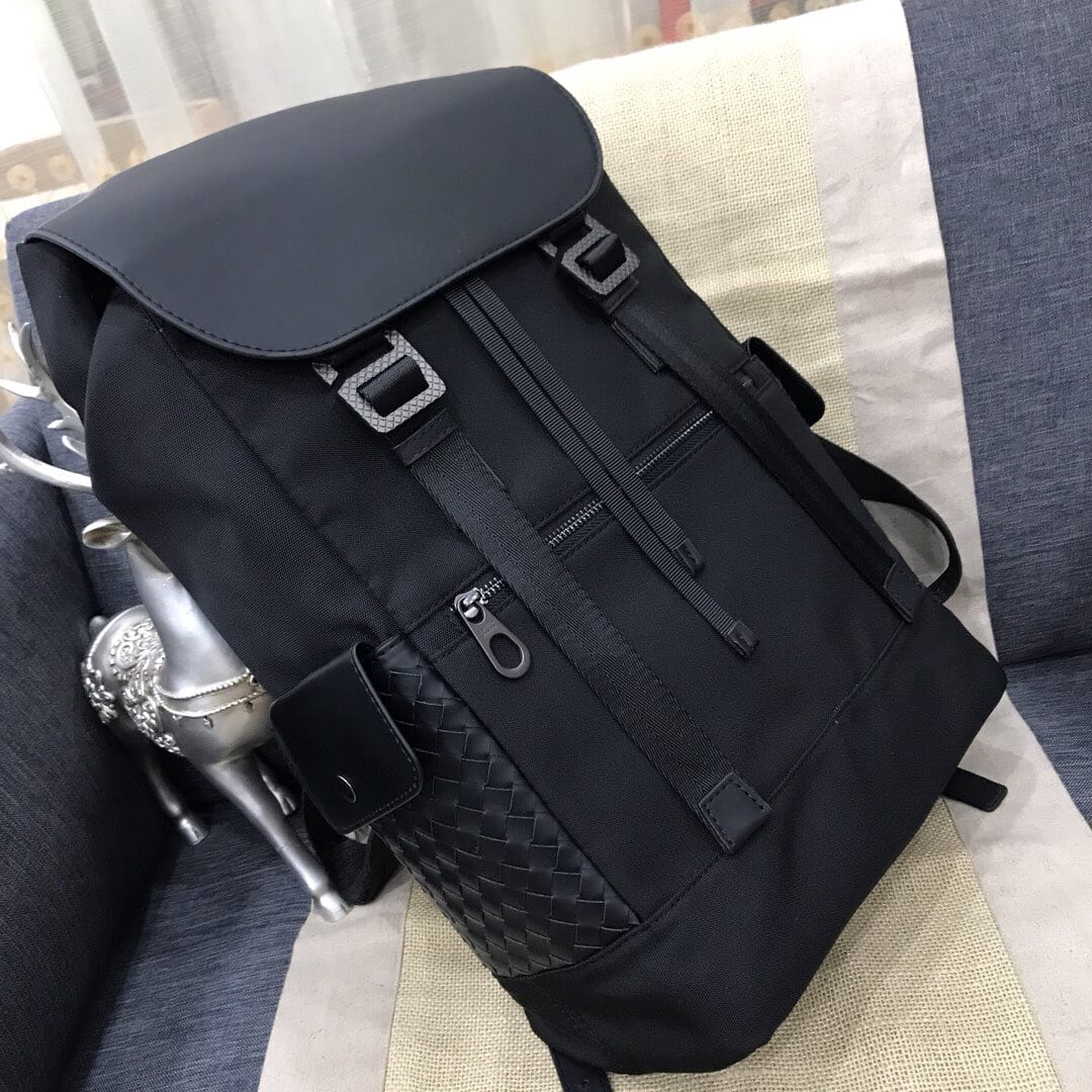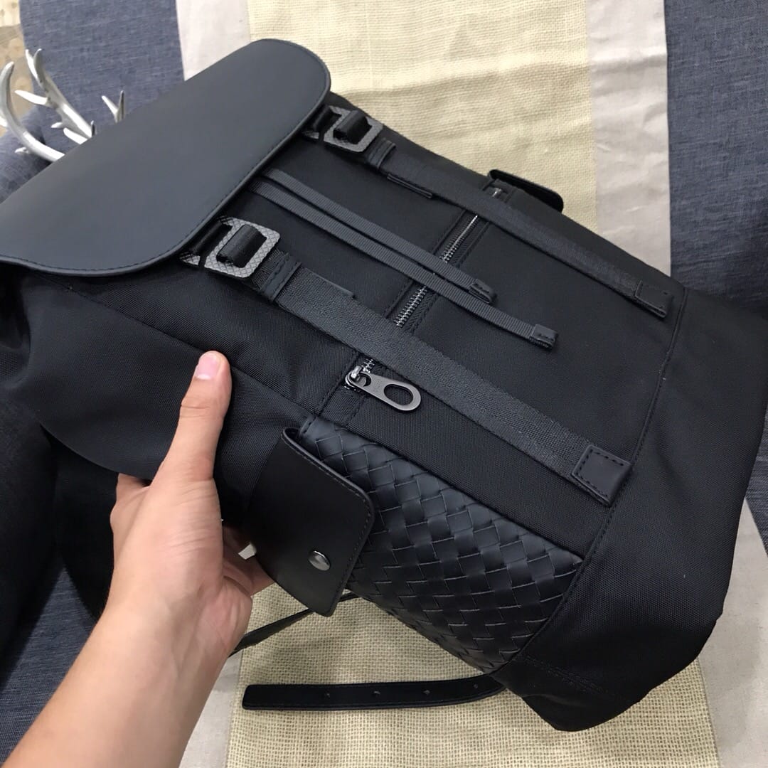 {BV}黑色帆布双肩包,官网新款,配打蜡皮手工编织,型号52