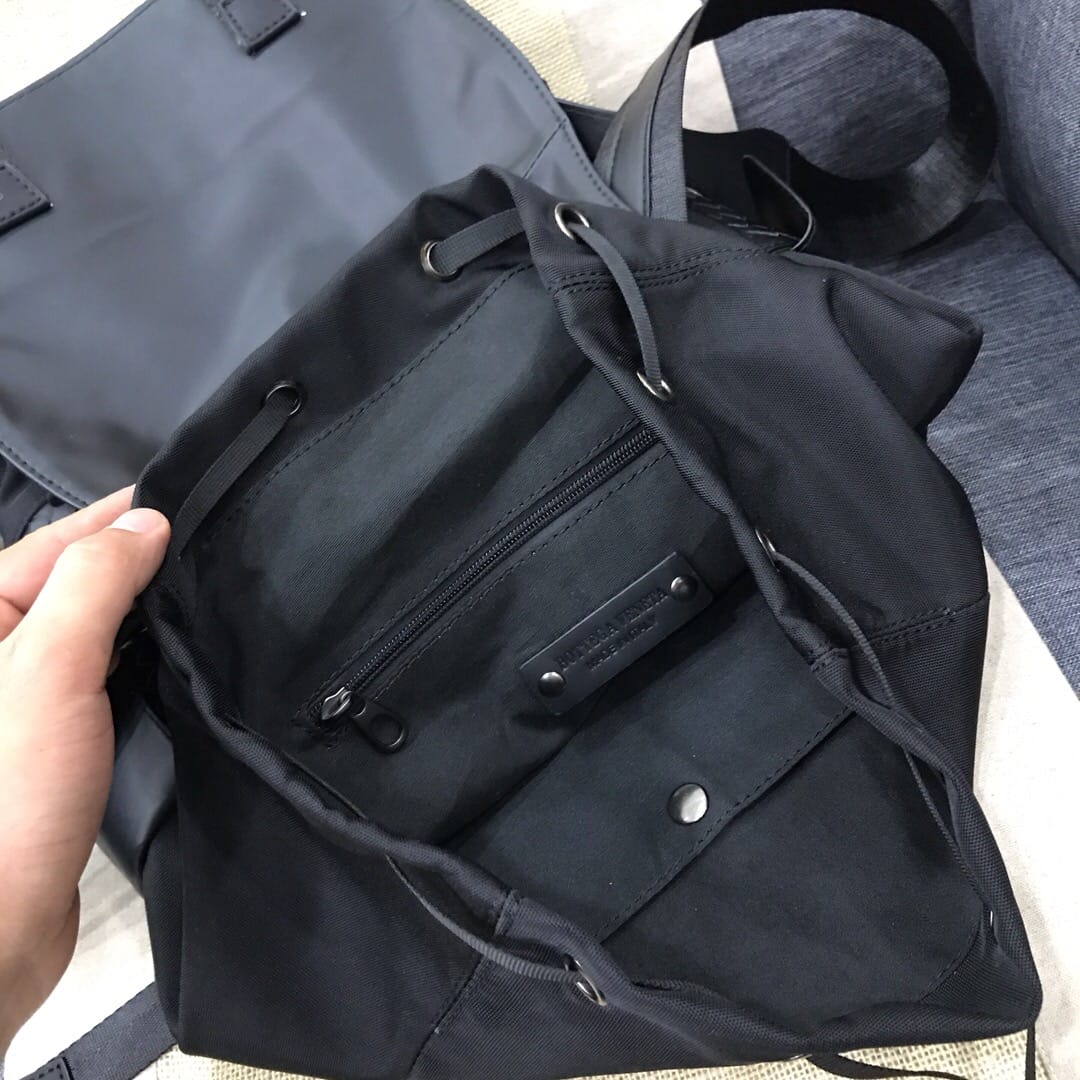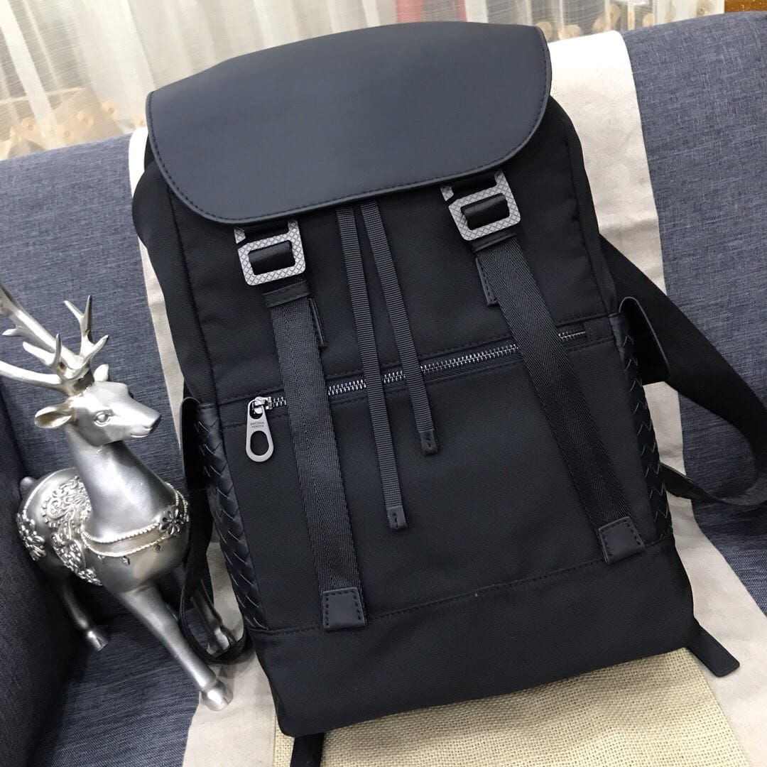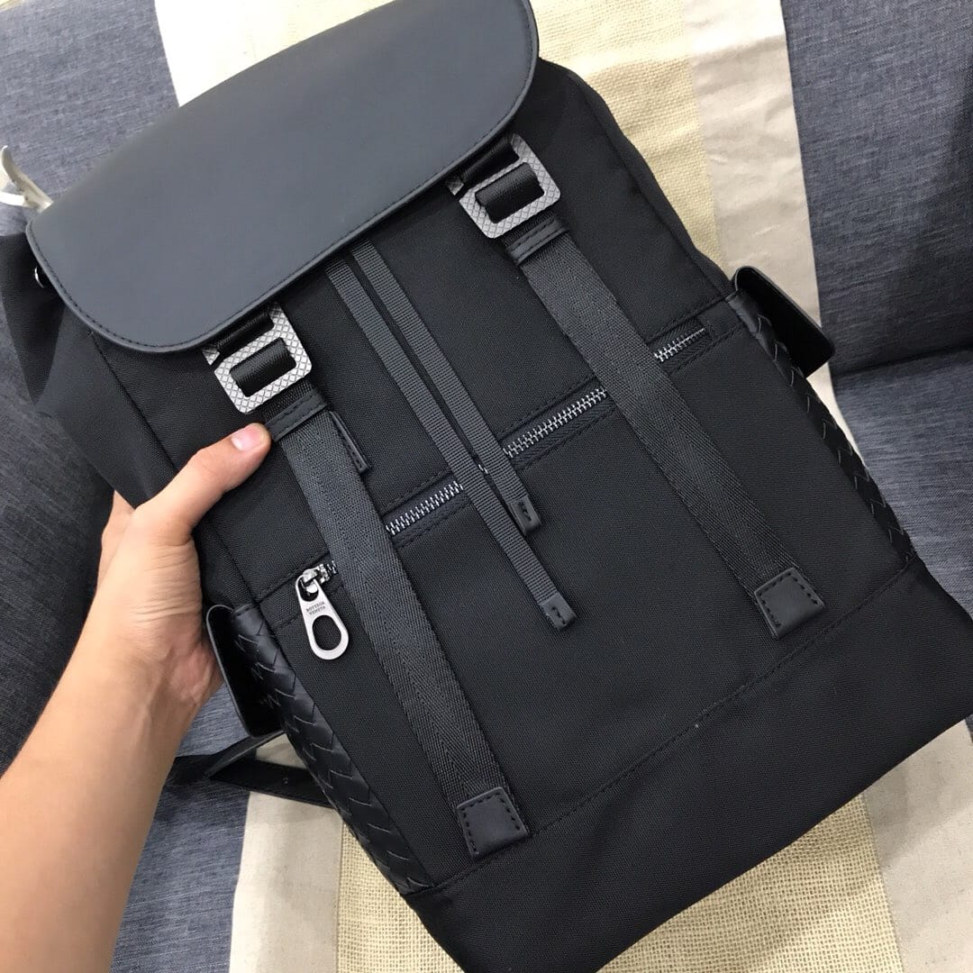 {BV}黑色帆布双肩包,官网新款,配打蜡皮手工编织,型号52