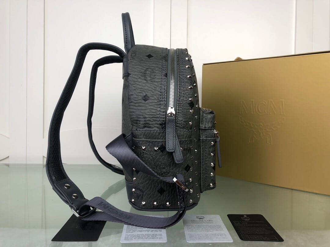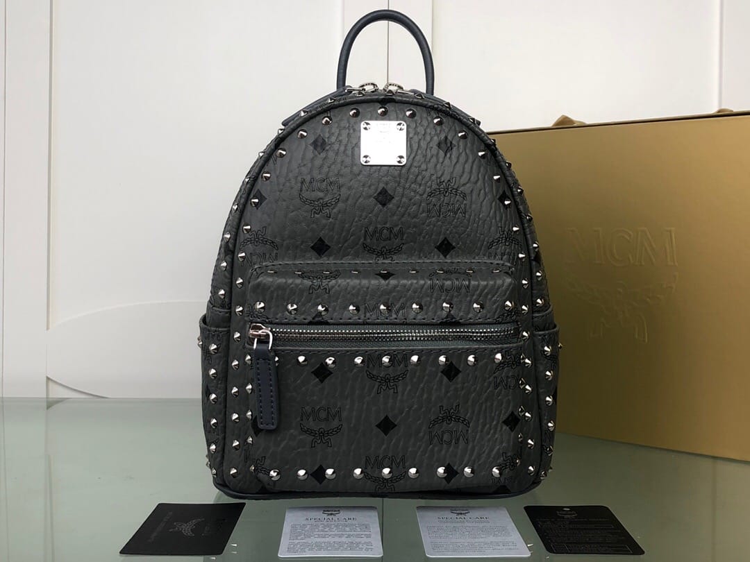 【配礼品包装】这款Stark双肩背包为耐久性而打造,堪称标志性单品的体现。四周配有铆钉轮廓和黄铜标志牌,采用皮革修饰。注重功能性:可调节背带和耐用的拉链、多个口袋和可以存放电子产品的夹棉填充内部隔层,令其成为一款让人梦寐以求的永恒的街头装扮。尺寸:超迷你宽17*高21*厚9cm,实拍迷你宽21*高29*厚11cm,小号宽26*高33*厚13cm