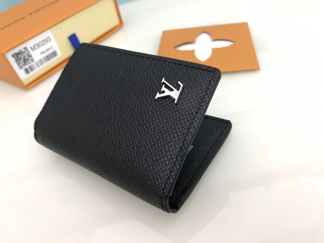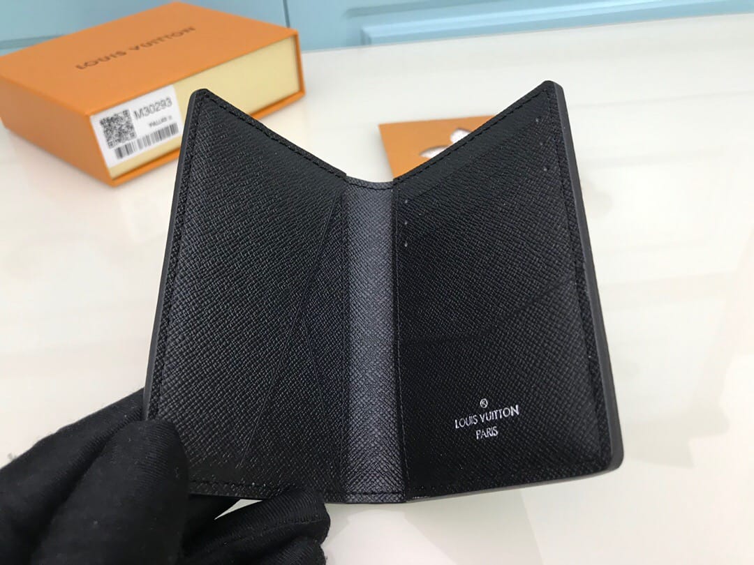 【顶级原单】M30293黑色??路易威登经典压纹 Ta?ga 皮革造就口袋钱夹:多合一紧凑设计内含六个袋位和三个卡位,双色材质既柔软又经久耐磨,一枚银色 LV 标识精巧点缀其上,讲述优雅构型与齐备功能的结合。尺寸: 8.0 x 11.0 x 1.0 cm ,