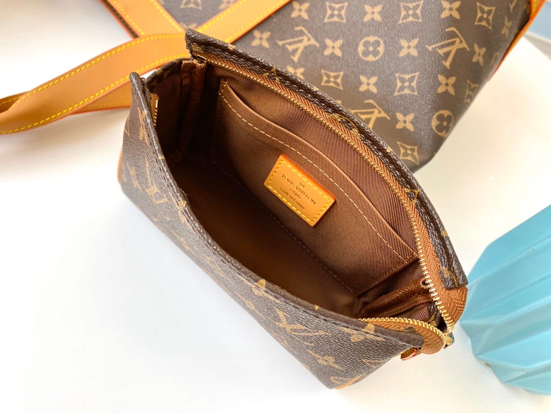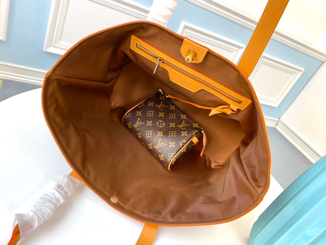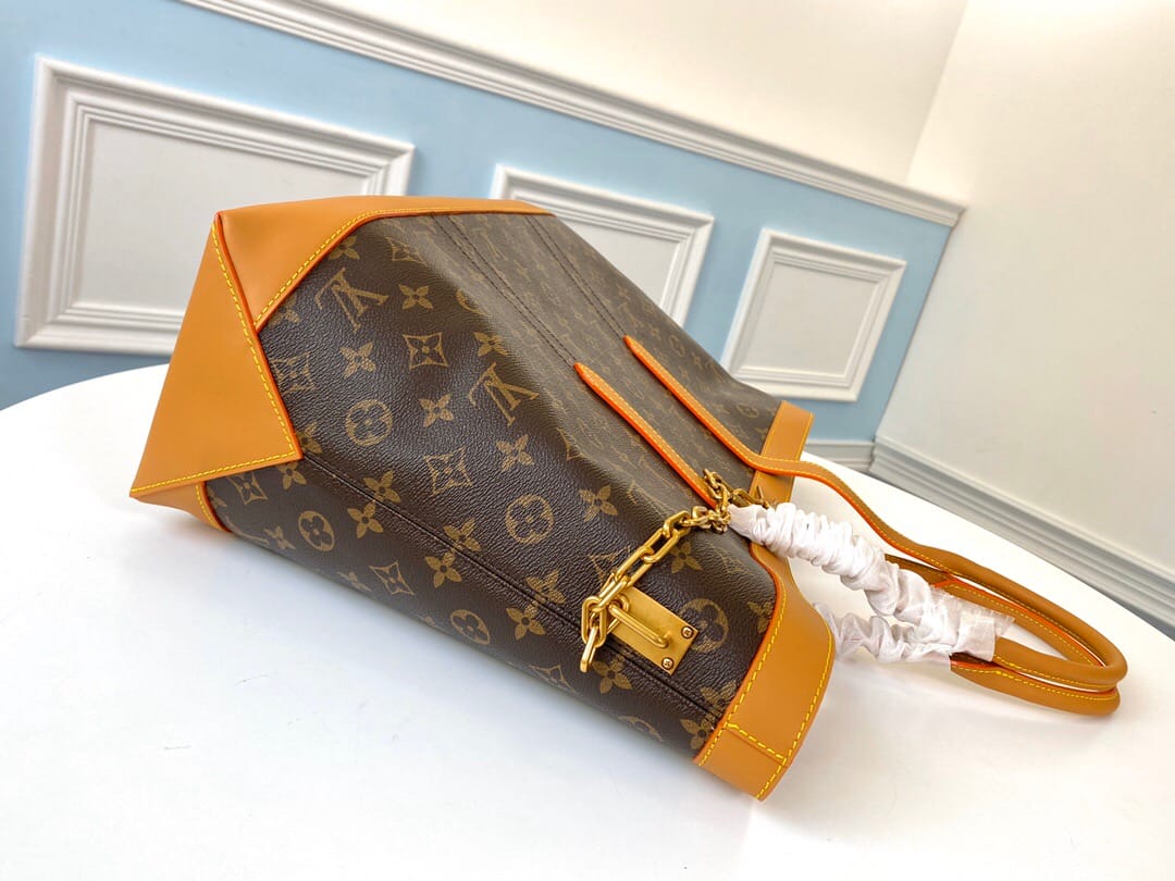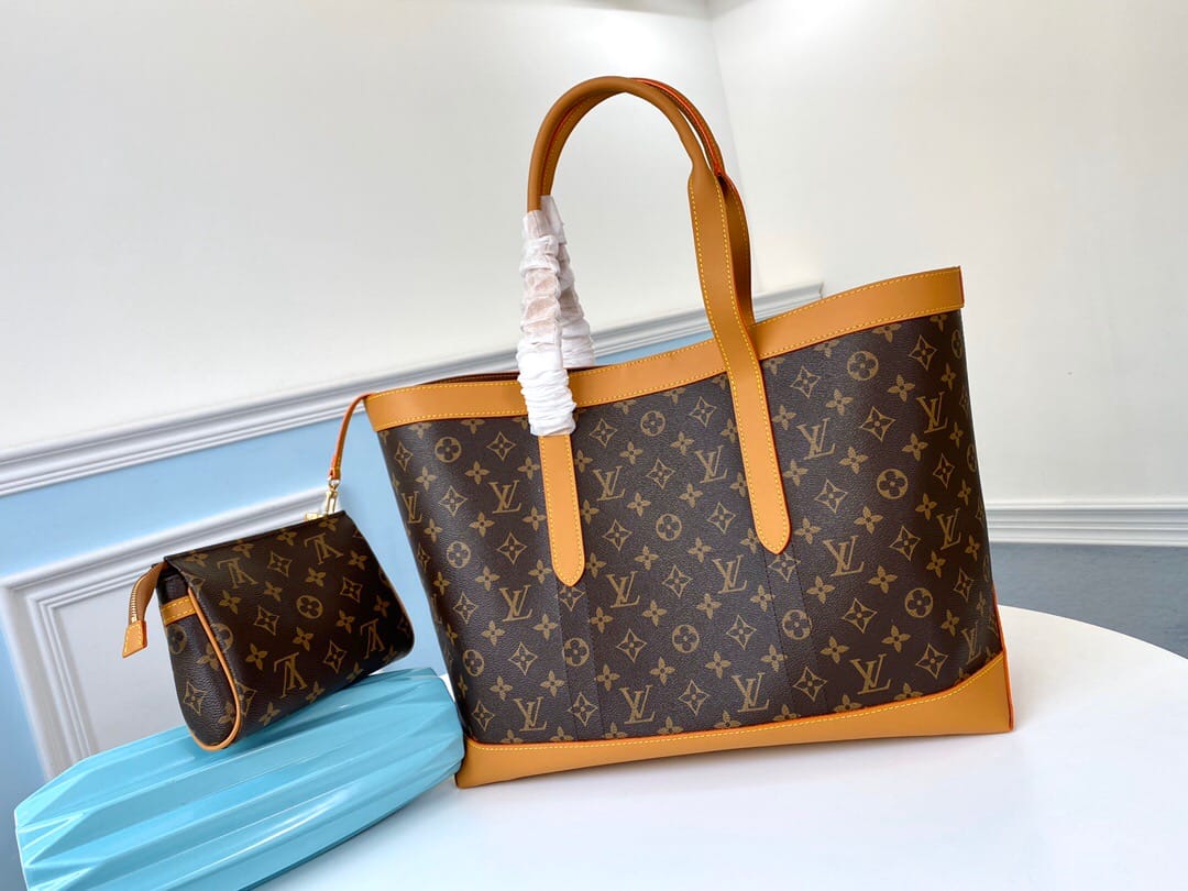 M44657 Tote手袋 选用经典Monogram 面料,老花黄皮链条二件套双子二件套购物袋 天然牛皮饰边对比感十足,配有古铜色饰件。质感柔软,容量充盈 可做宠物包也可做购物袋,时尚不失经典。尺寸:41x31.5x15