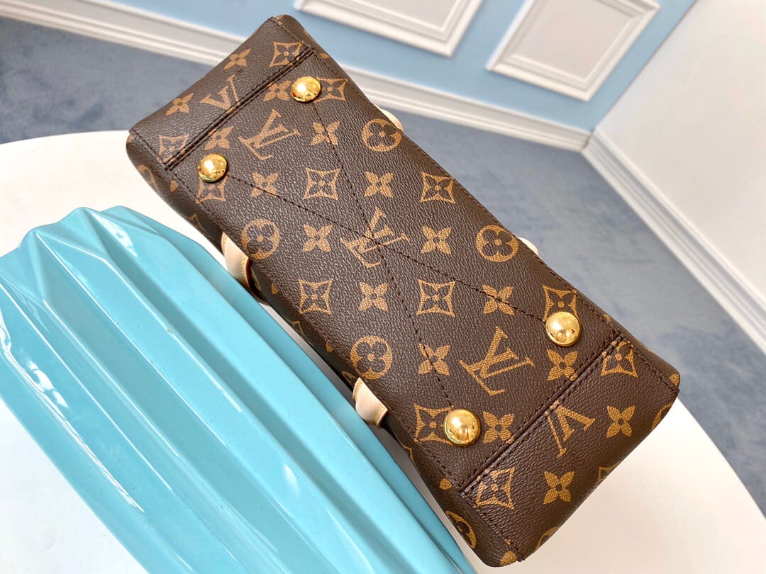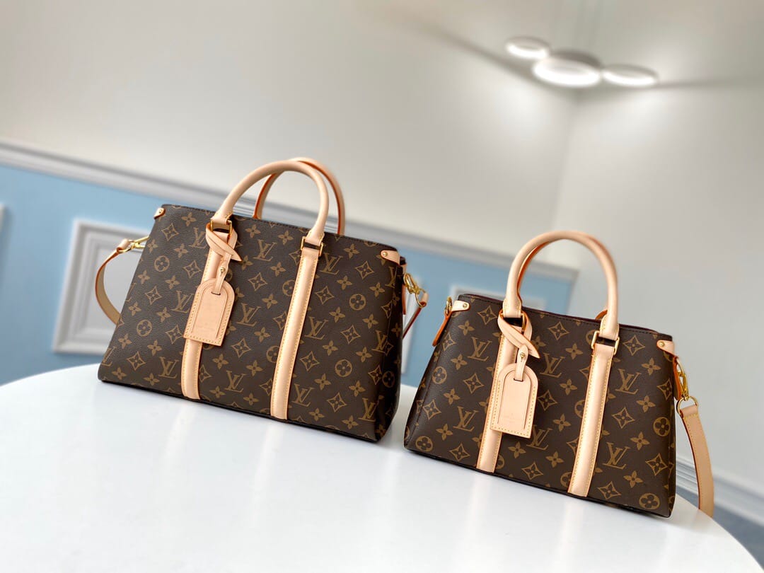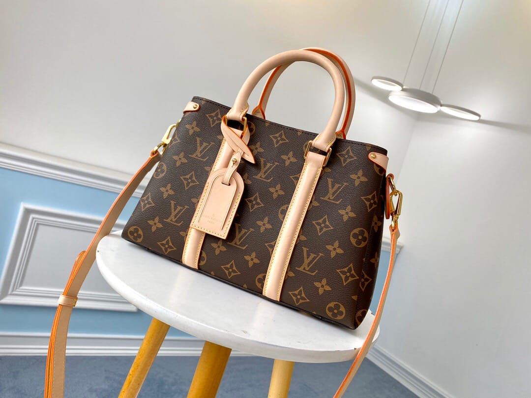 M44815 Open Handbag 选用Monogram帆布制作,缀有经典细节,包括侧面两条滑面皮革镶边、金色铆钉和经典皮革行李吊牌,设有顶端手柄和可拆式及可调节长度肩带,老花黄皮吊牌蒙田形状女士手提包可作手提、肩背或斜背携带。小号29.0 x 19.0 x 10.0 cm (长度 x 高度 x 阔度) 大号 35-24-15Monogram涂层帆布滑面牛皮饰边微纤维衬里金色金属件两个滑面牛皮手柄可作手提或臂挽携带可调节长度可作肩背或斜背携带牛皮行李吊牌3个独立隔层内贴袋