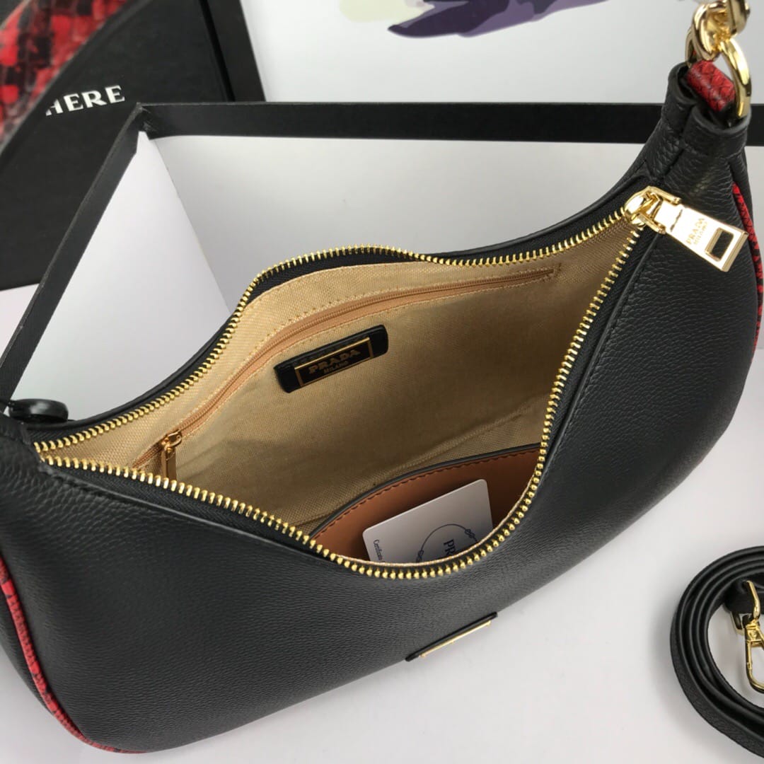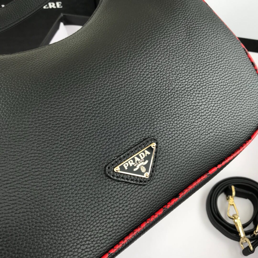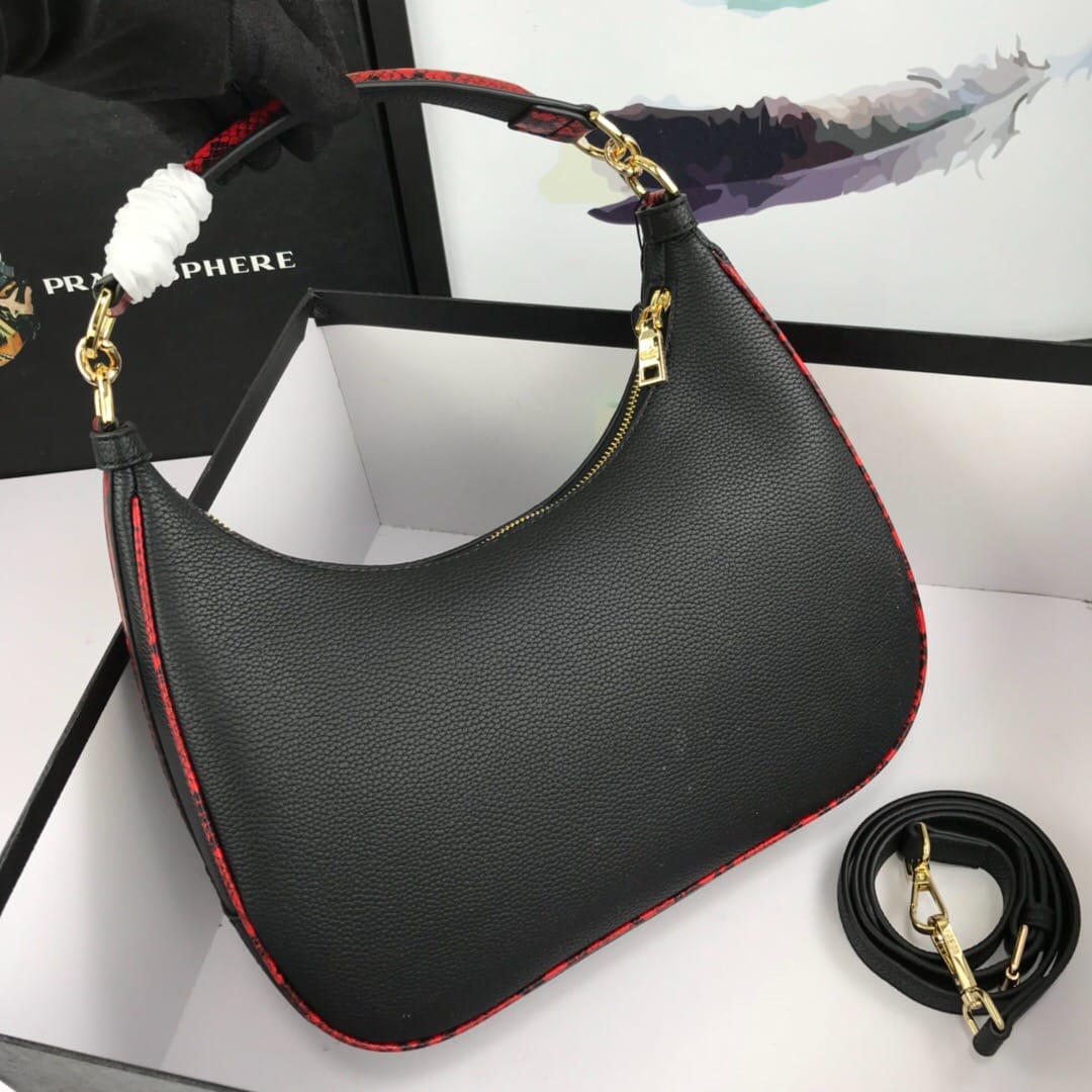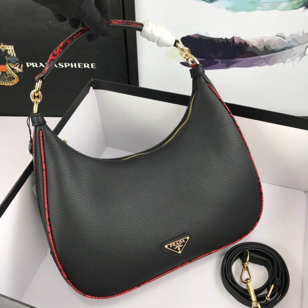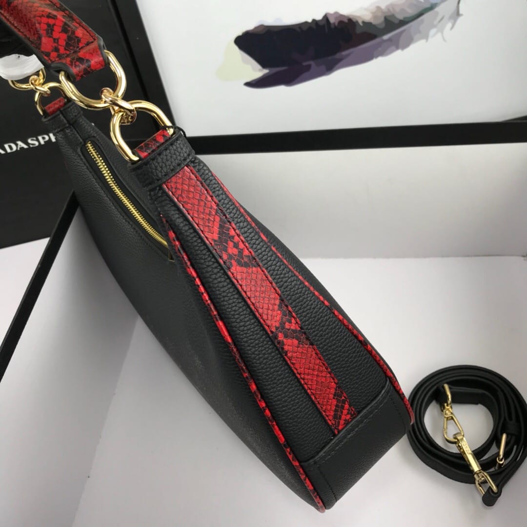 新款手提包Prada 牛皮配蟒蛇纹,款号21101#。采用进