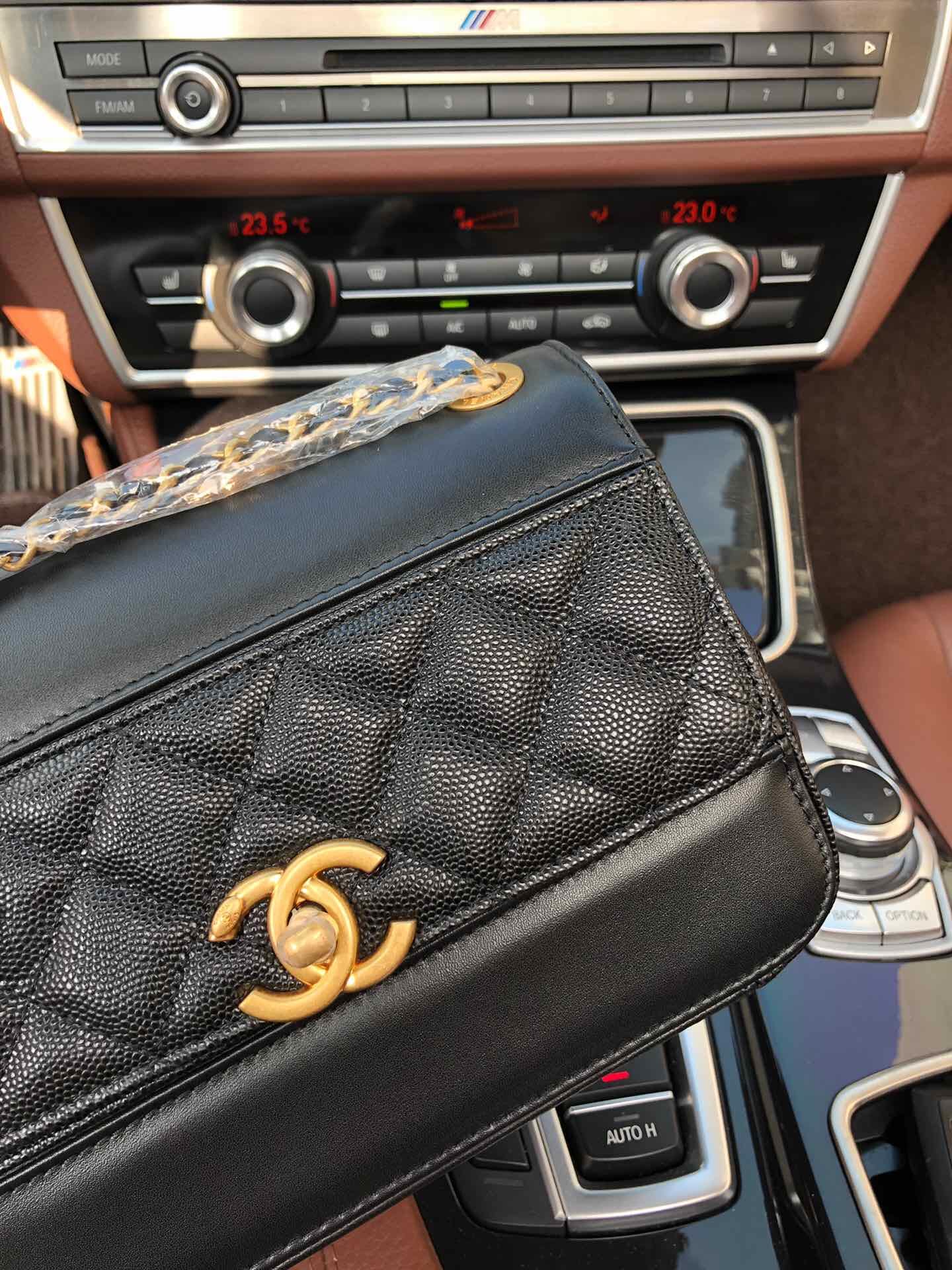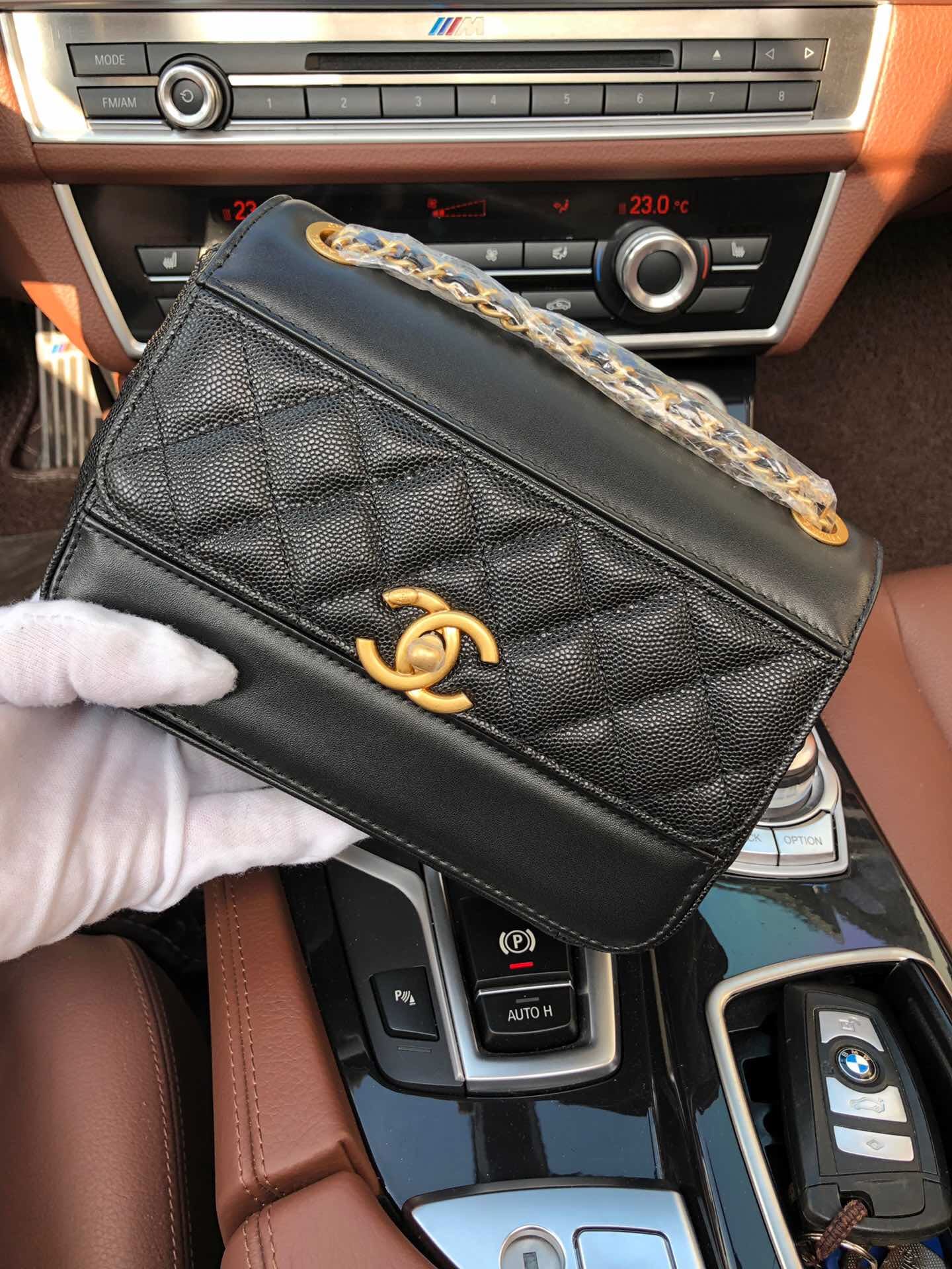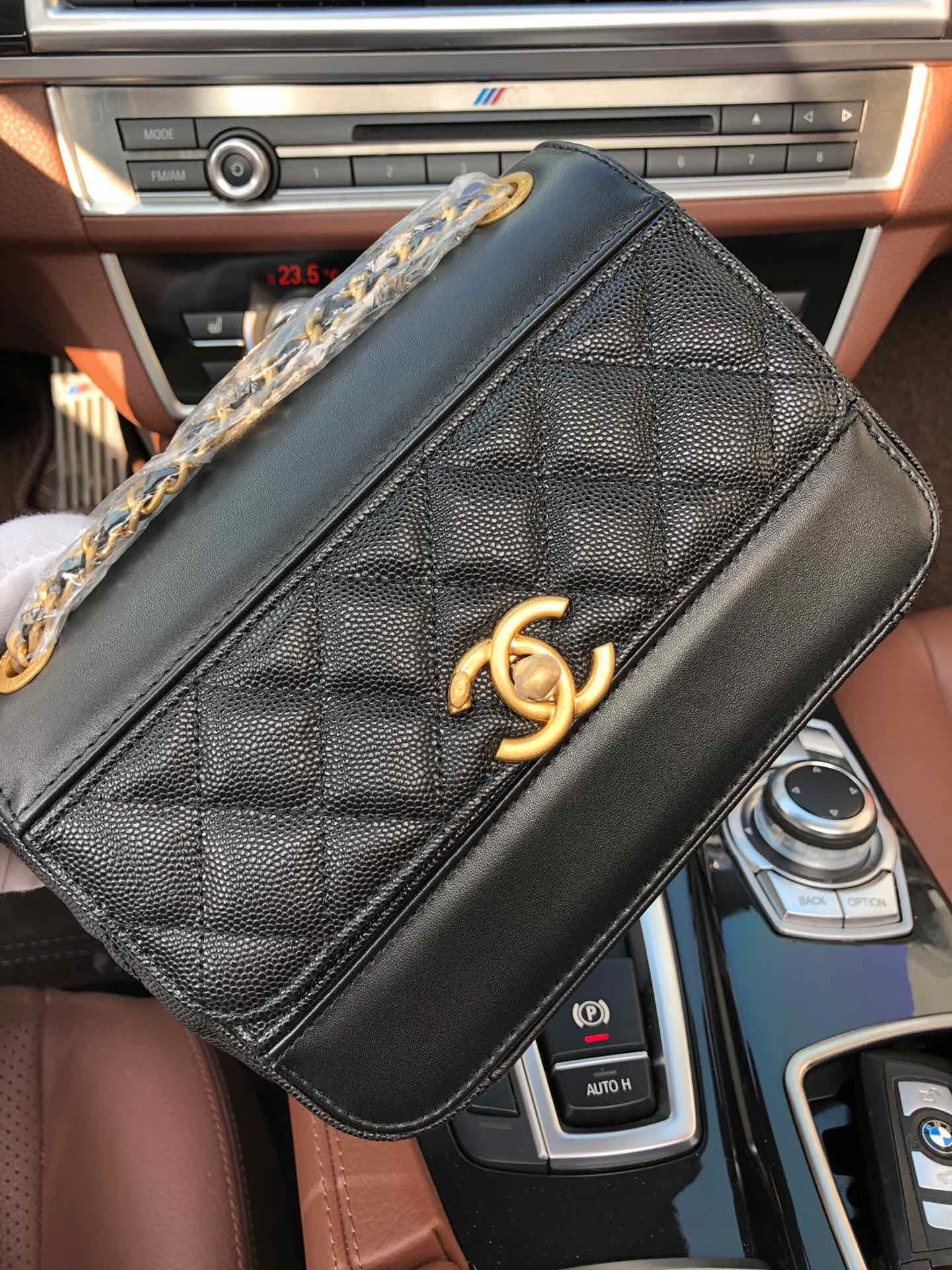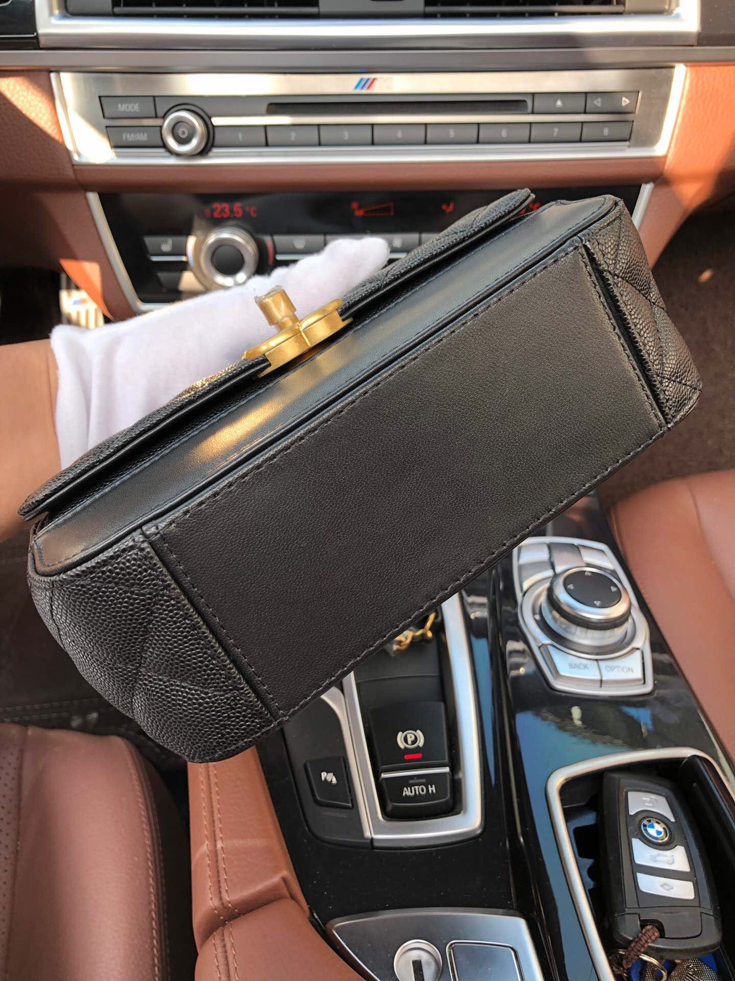 AS0948最新棱格细颗粒压花小牛皮配与小牛皮 ,金色金属 ,尺寸:19cm