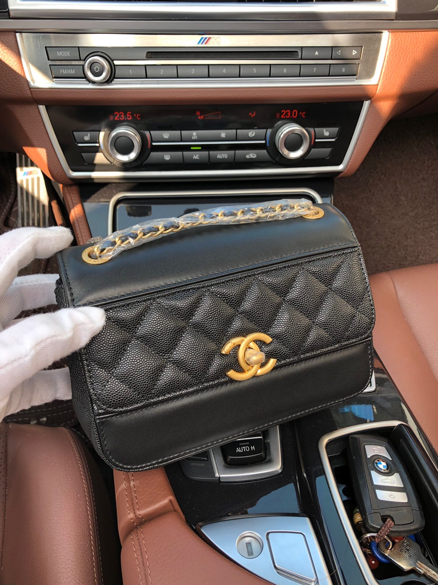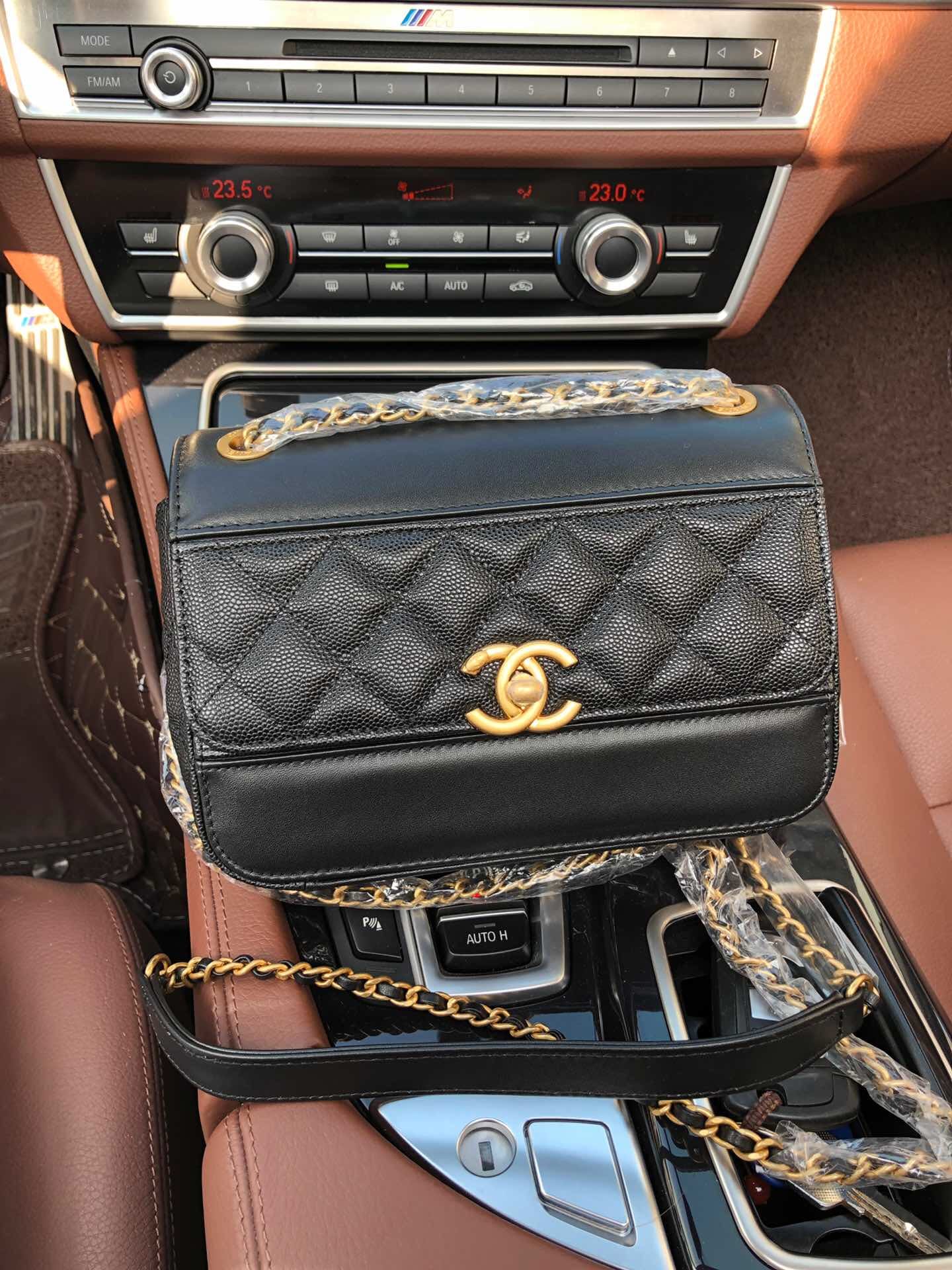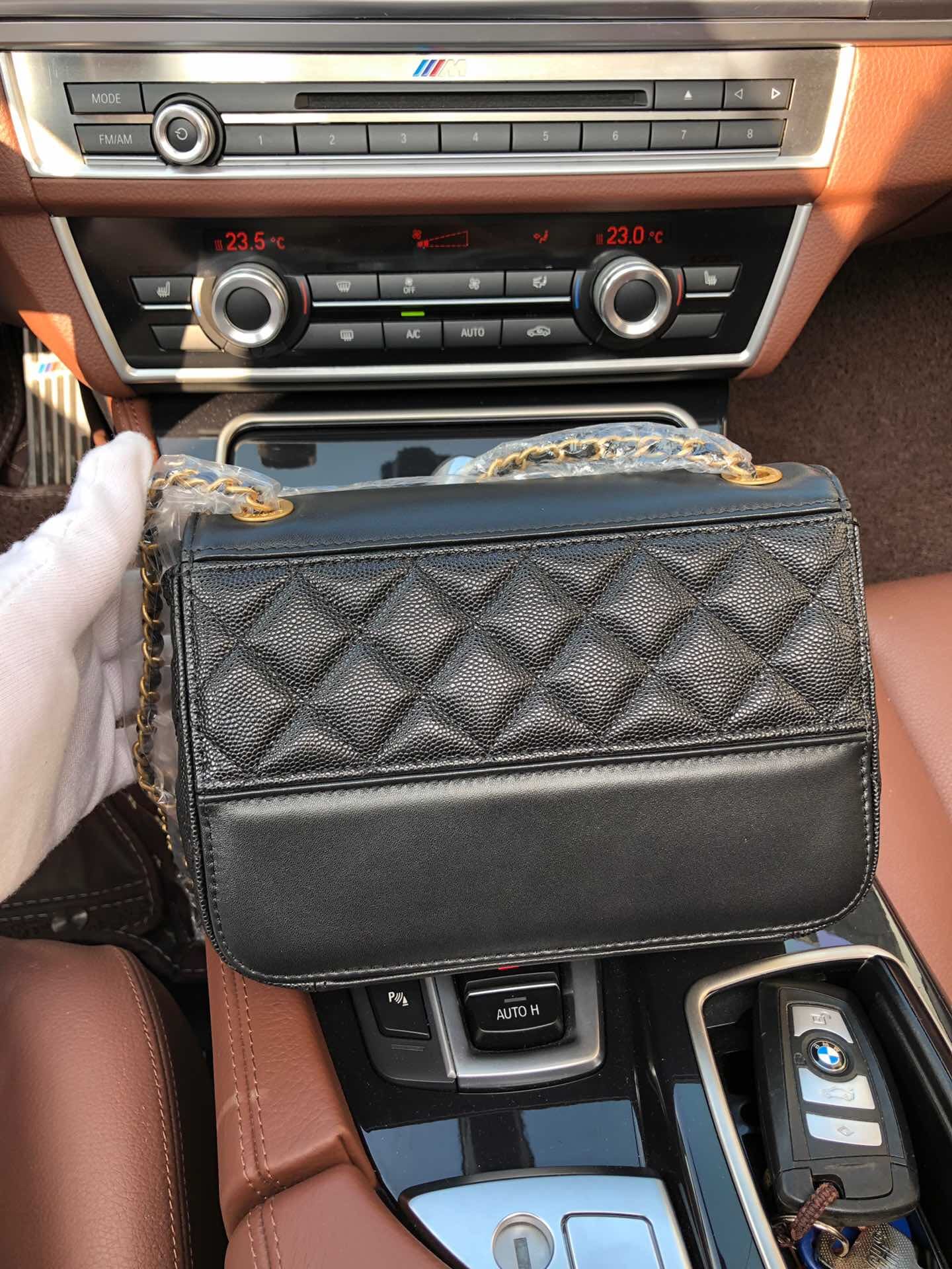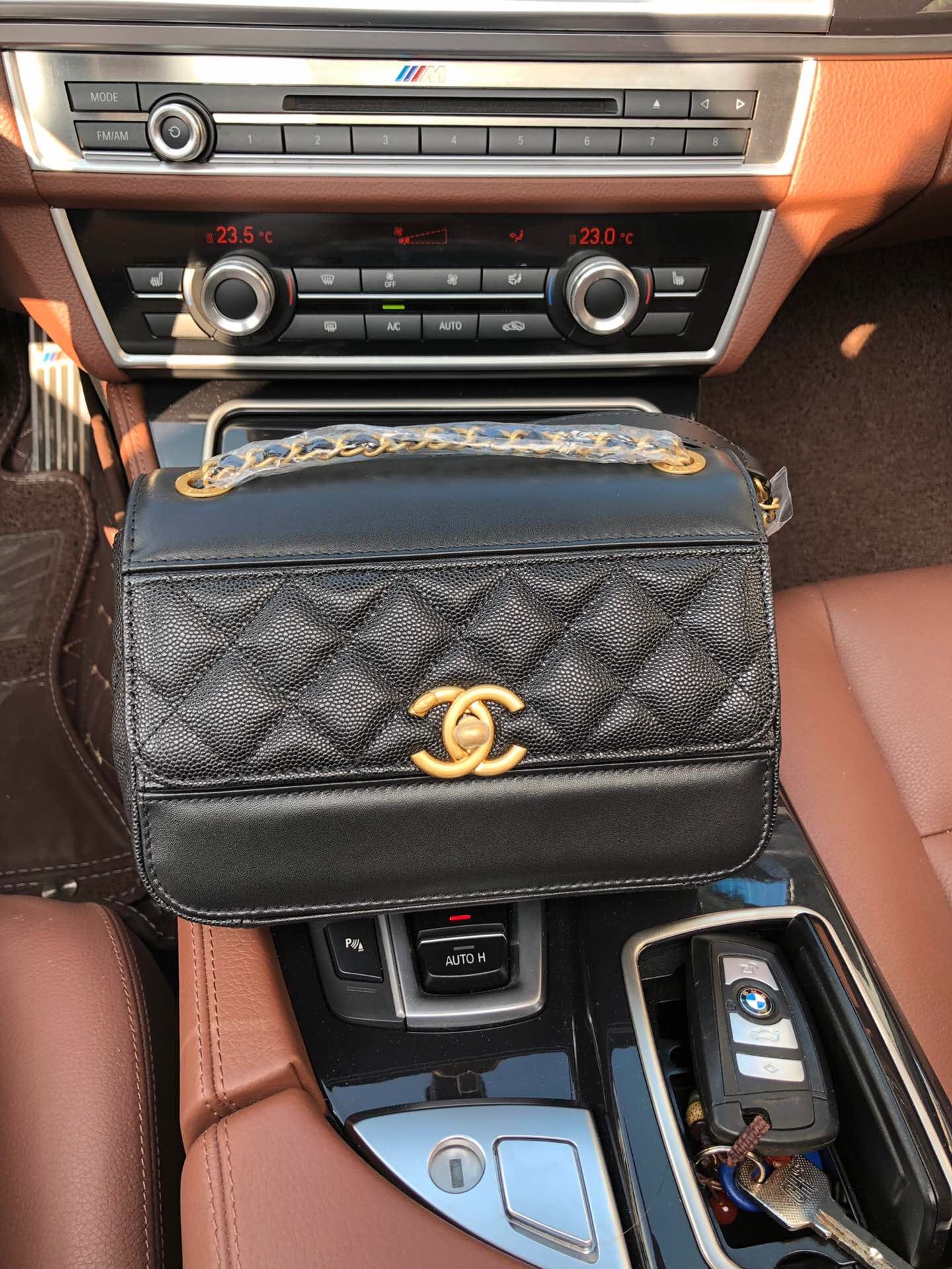 AS0948最新棱格细颗粒压花小牛皮配与小牛皮 ,金色金属 ,尺寸:19cm