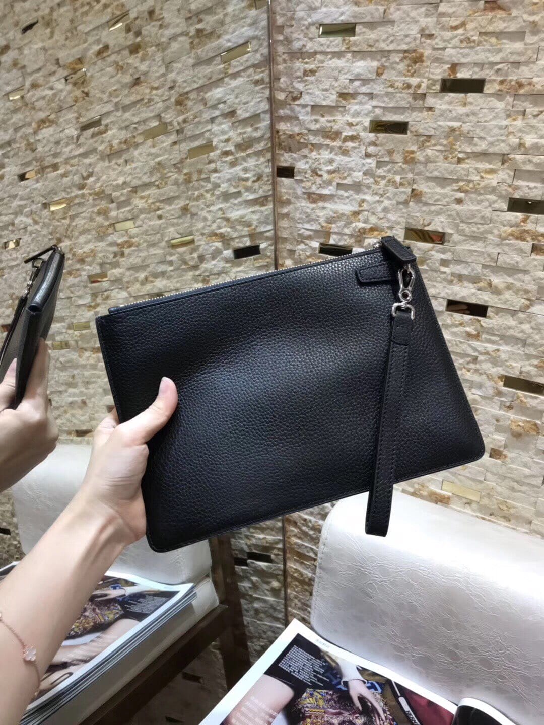 原单货???B家 新款男士手包、面料采用进口牛皮 皮纹清