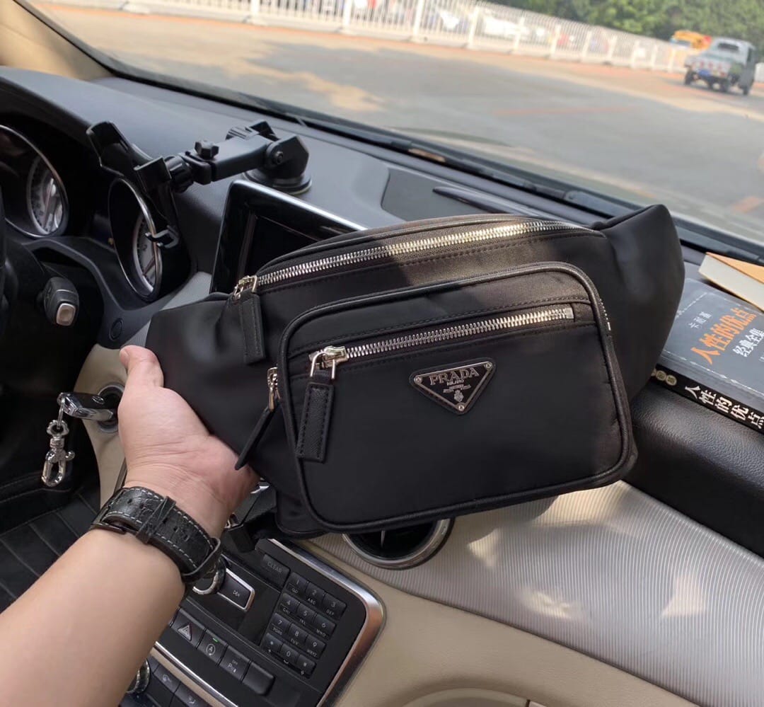 PRADA普拉达? 新款腰包!此款腰包采用进口尼龙材质 配拉