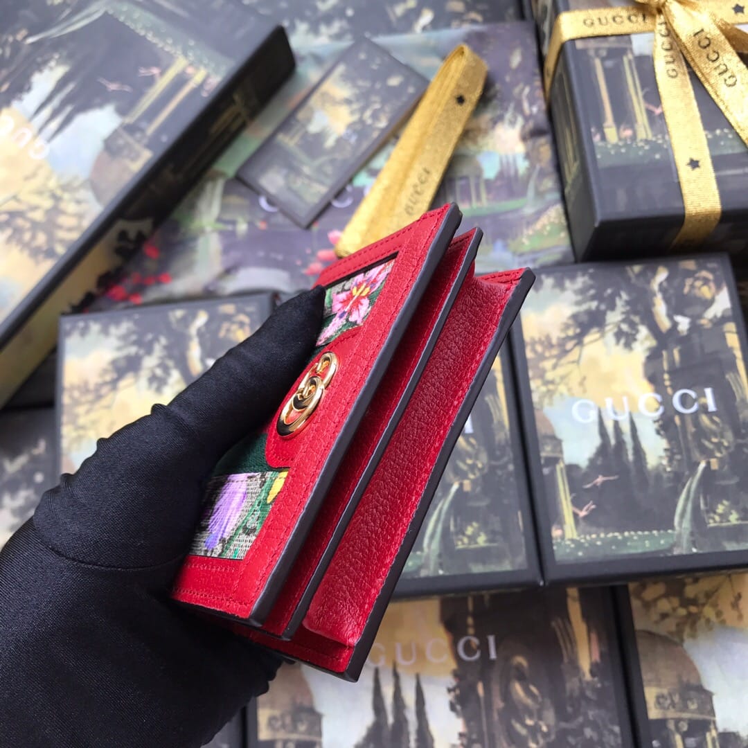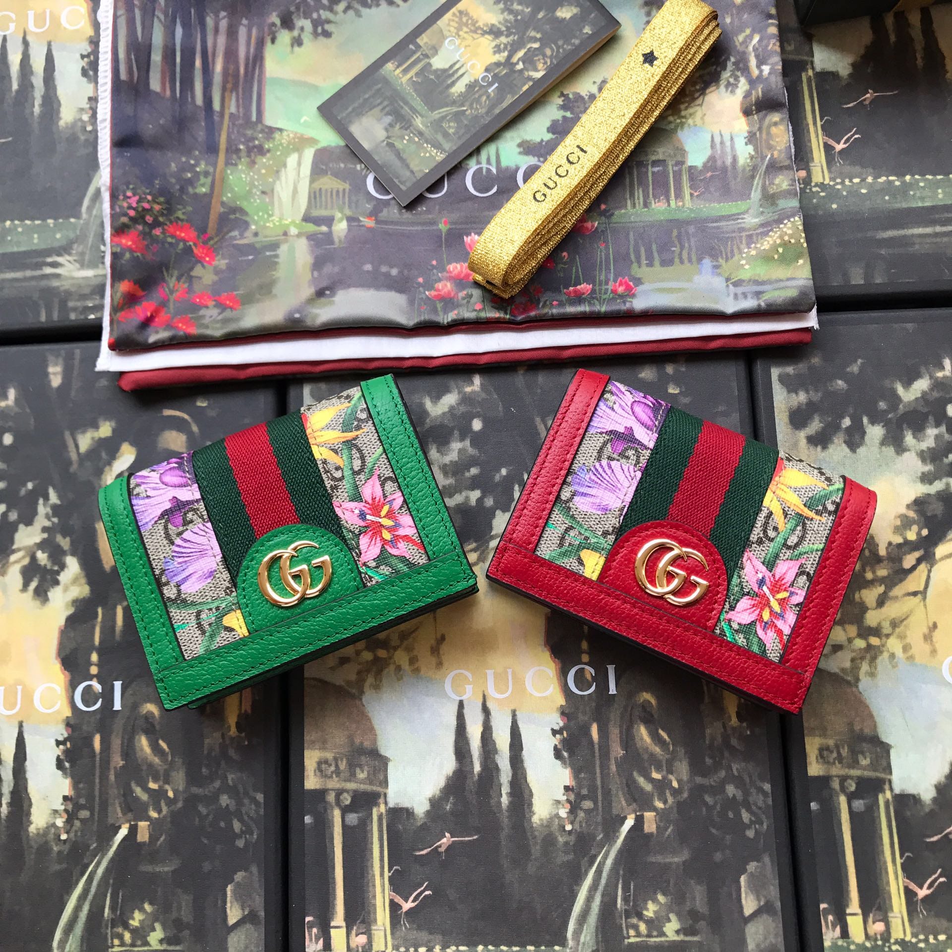 高端品质?Ophidia系列花卉小卡包?采用GG Supreme高级花卉印花人造帆布[玫瑰]配以标志性图案与条纹织带[太阳]海外顶级五金?精制而成!型号523155红花/红皮。尺寸: W11xH8.5xD3cm
