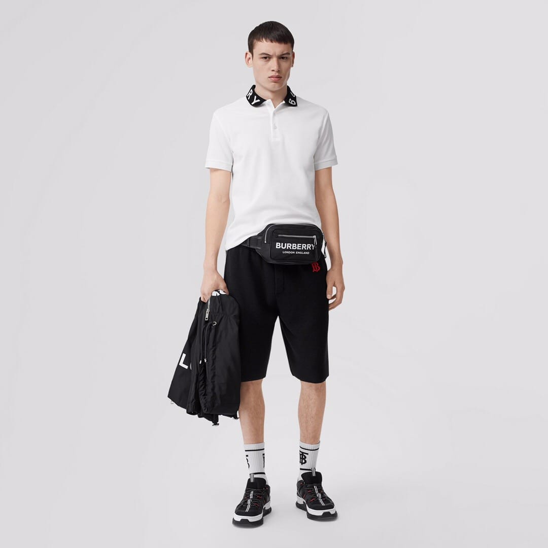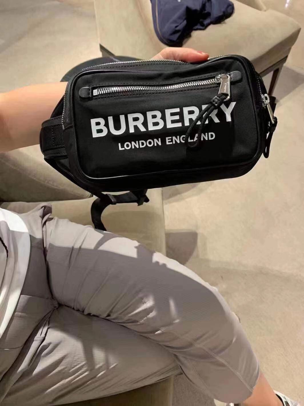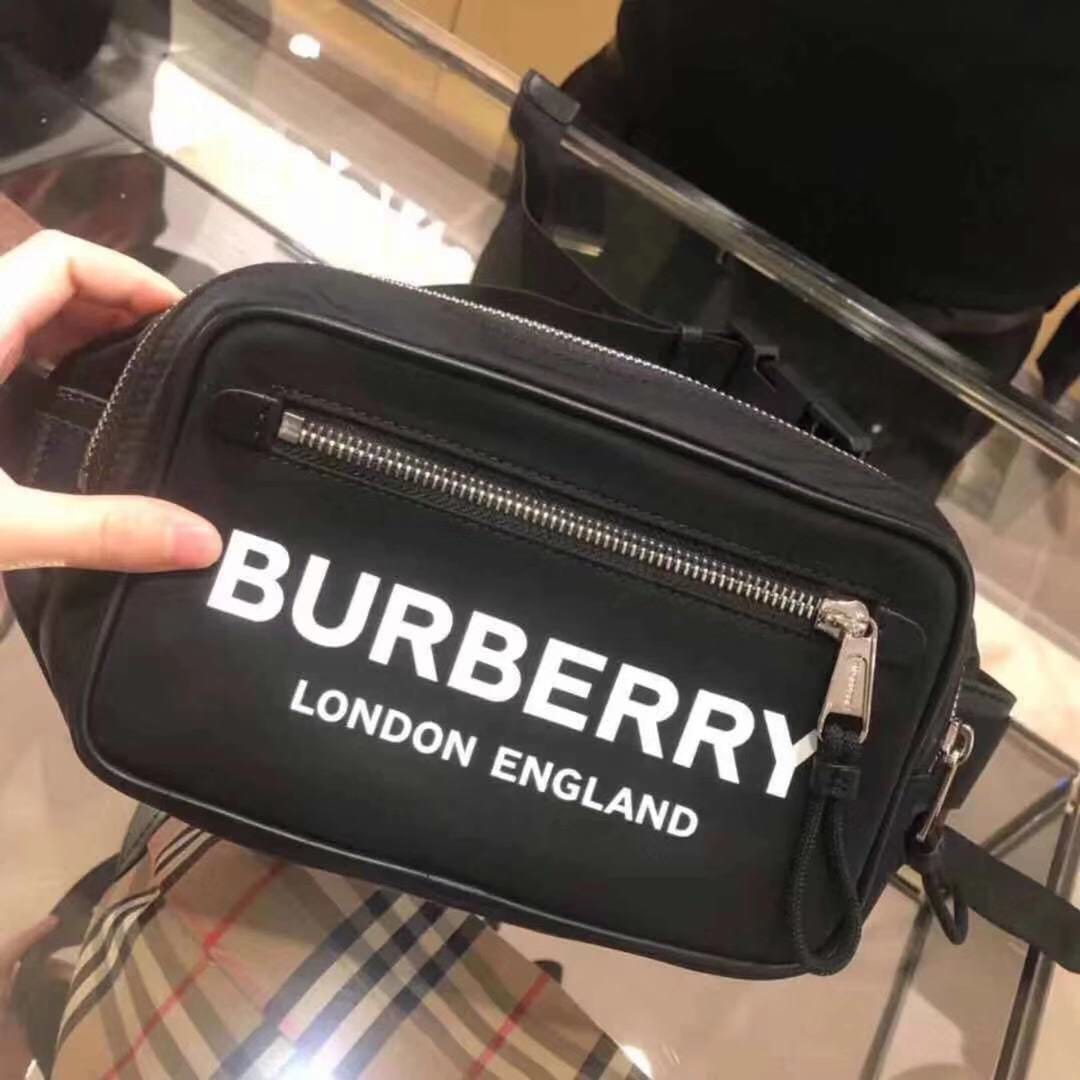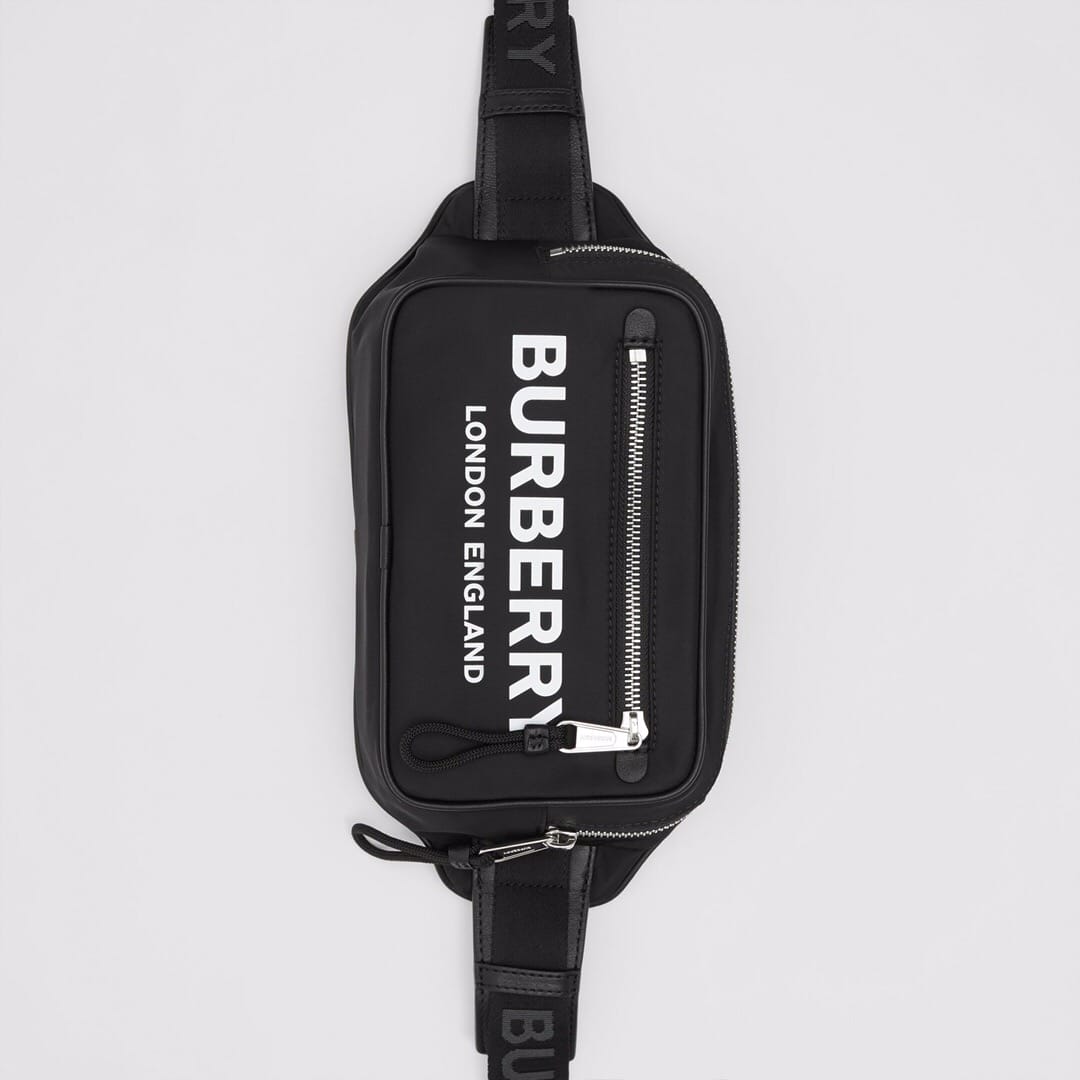 巴宝莉腰包借鉴九十年代街头风格,选用装饰微标印花的尼龙材质,