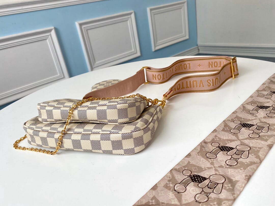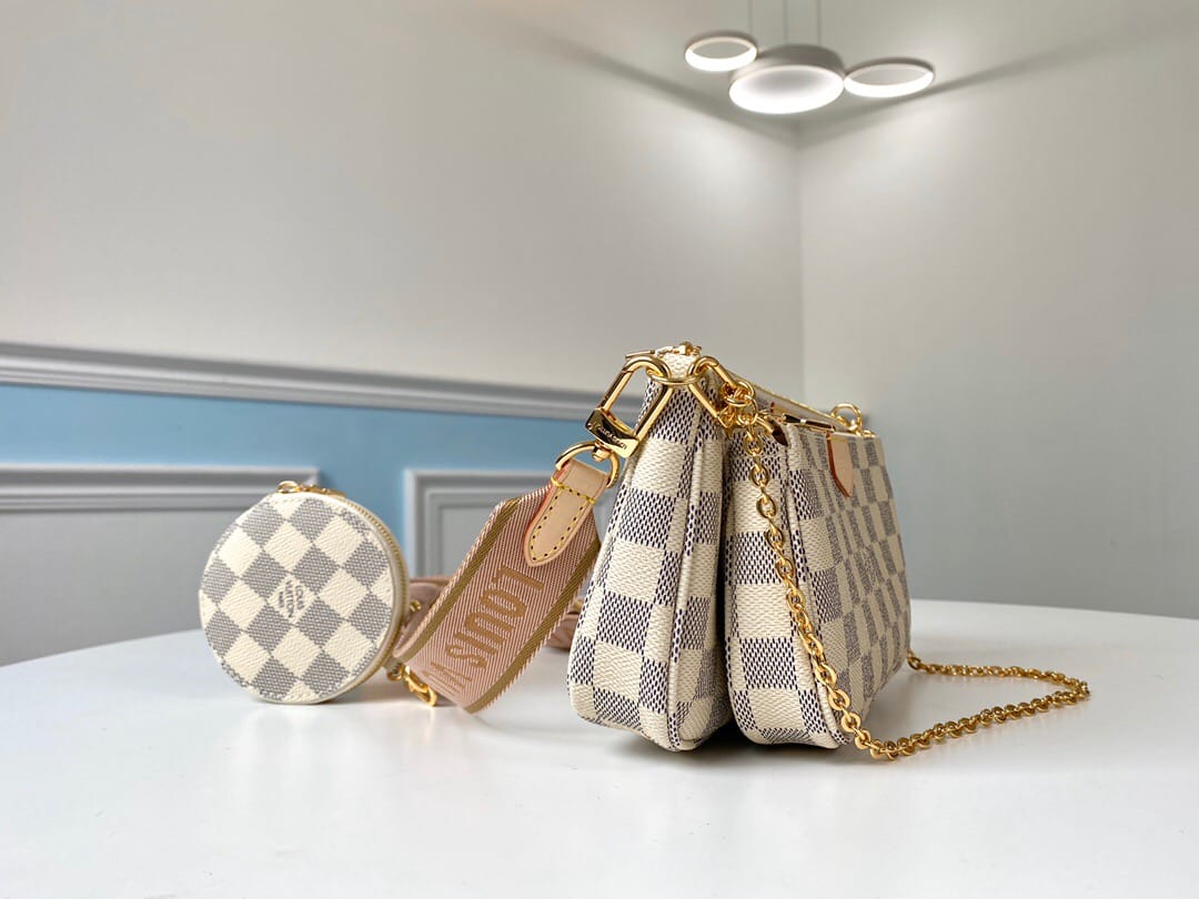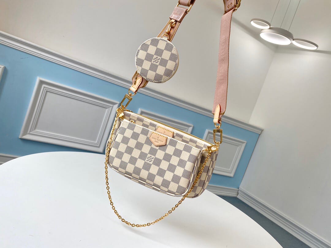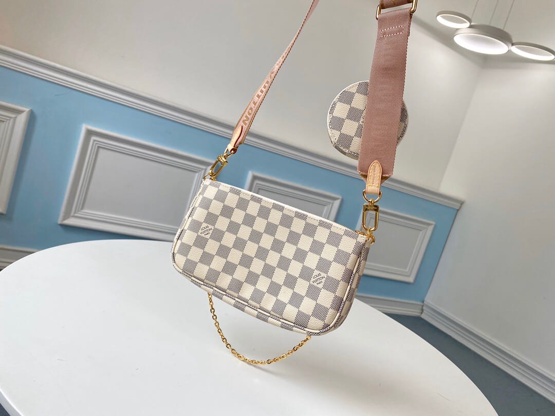 顶级原单 44823粉色 白格帆布制成的一款小巧轻便的三件套