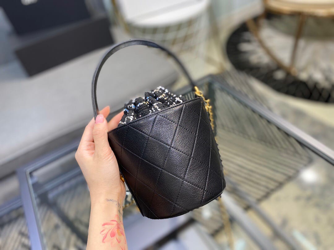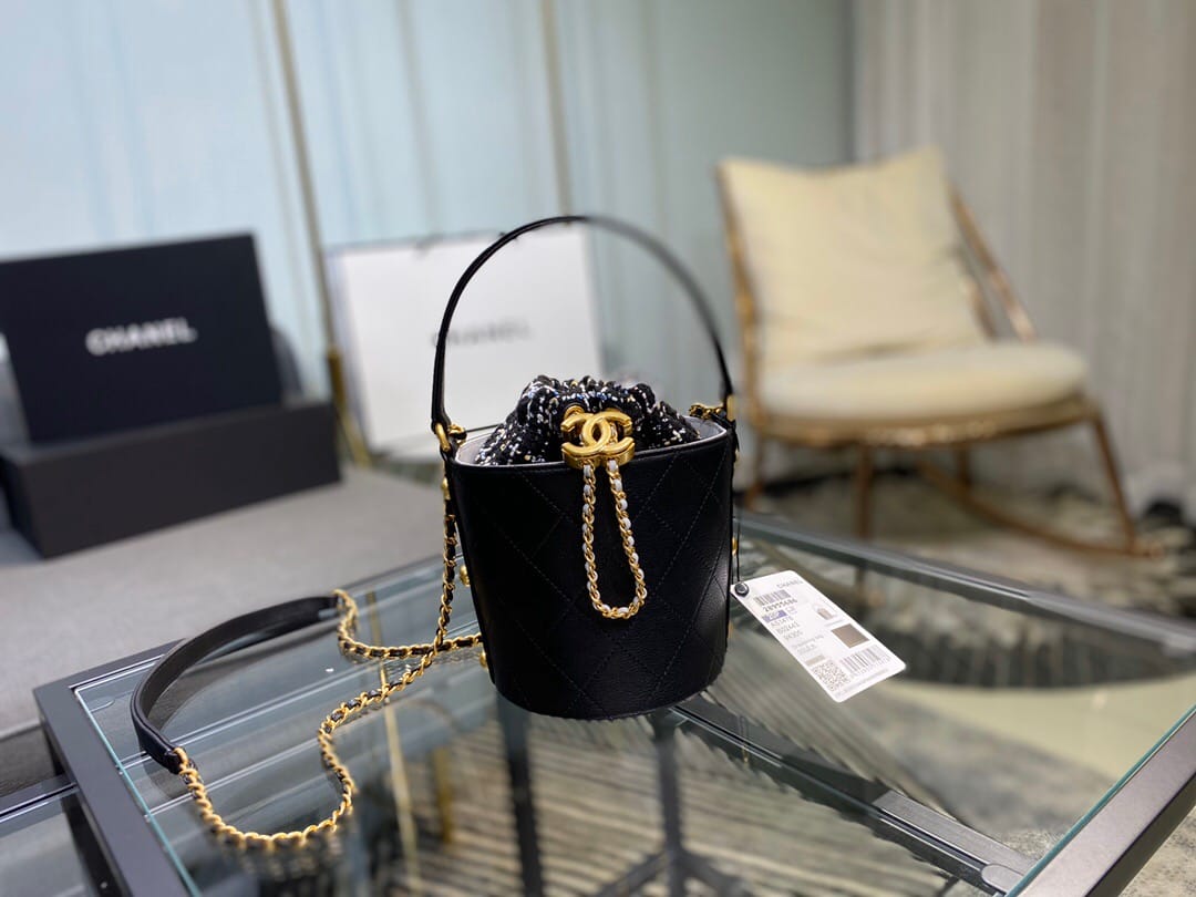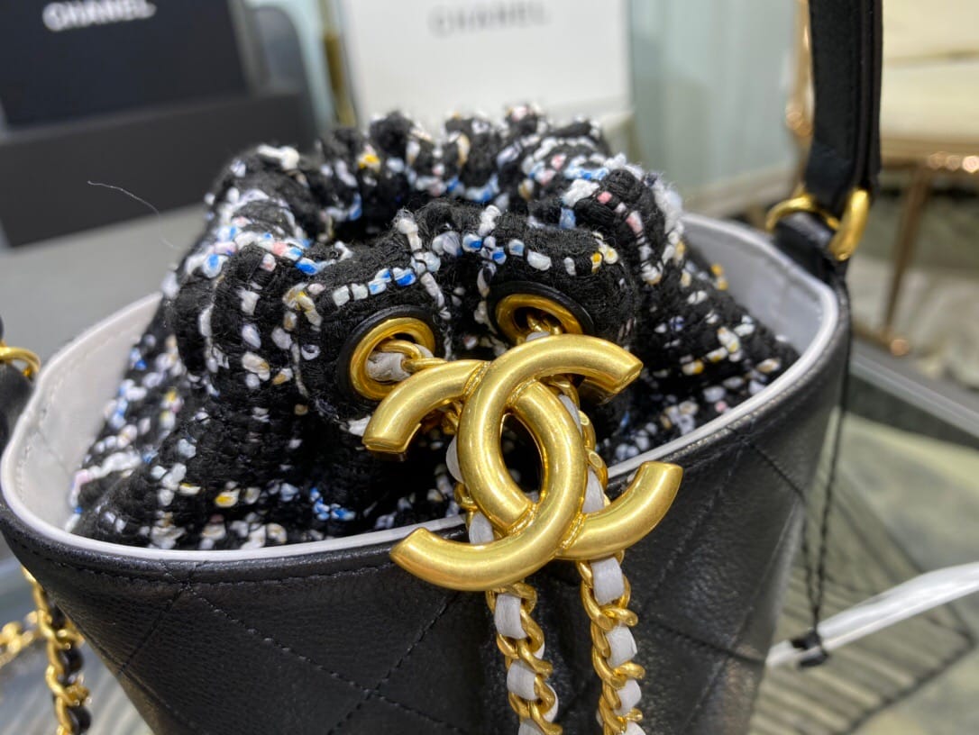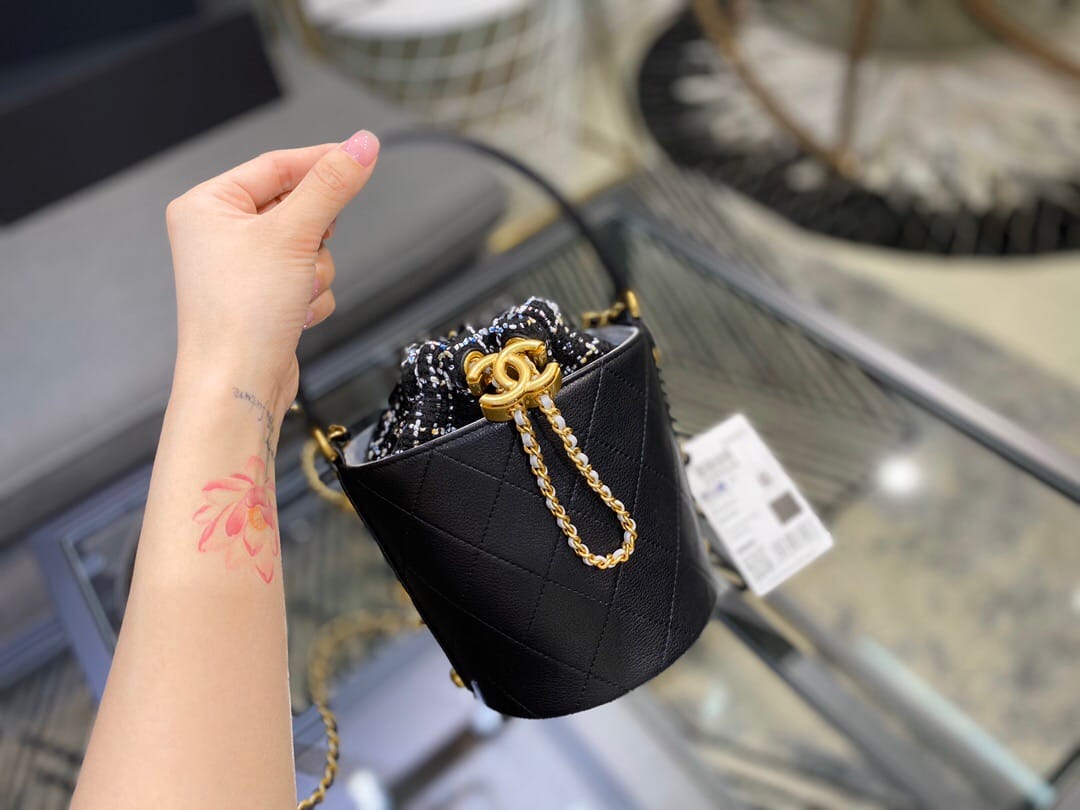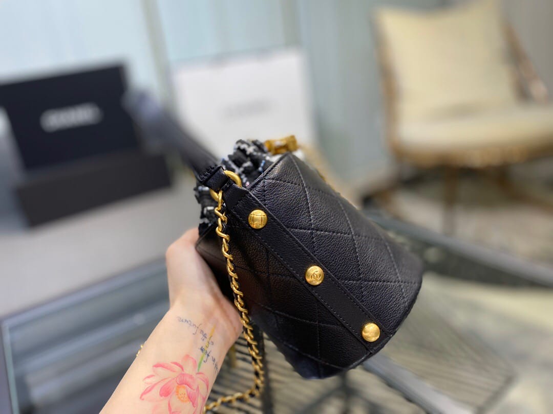 Chanel/香奈儿 菱形衍缝金属链条 女士抽绳水桶包